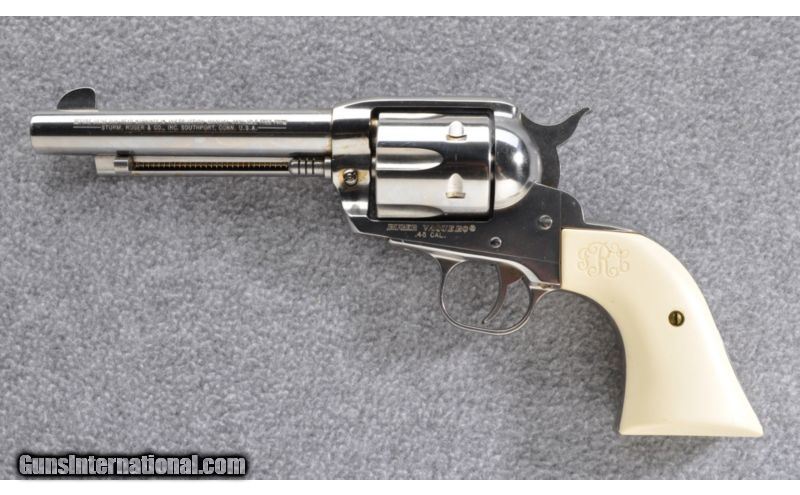 Description: In September of 1998 Hurricane Georges tore through the Caribbean leaving in its wake more than 600 dead and billions of dollars in damage.The previous owner of this revolver had it inscribed in commemoration of the event. It is a one of a kind as far as we know. SOLD Manufacturer: 1998 Caliber Info: .45 Colt Chambers: 6 round cylinder Metal Condition: Showing a few light scratches Wood Condition: Grips are inscribed with former owners initials Bore Condition: Bright and sharp Barrels: 5 1/2 Triggers: Single Action Stock: Ajax Ivorex smooth with inscribed initials Weight: 42 oz Sights: Fixed blade front, Notch rear Item Location: Grand Junction, CO |