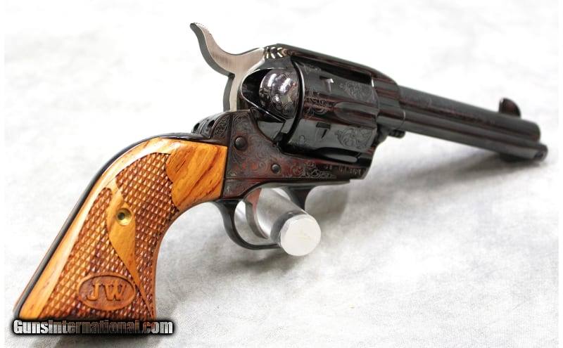 Description: This is a NEW IN BOX "USED" limited edition Ruger Vaquero revolver in chambered in .45 Long Colt. This limited run Vaquero was produced in 2007 to celebrate the 100th year of John Wayne's birth. It is extensively engraved in an authentic Old West motif and there is a gold John Wayne signature on the top of the barrel. This gun is brand new and has not been fired other than the factory test firing. It comes in the original factory hard case with special logo and even has the original paper outer sleeve.The serial number shows the Date of Manufactured is 2007. Be sure you don't miss out on this amazing collectible. Call us directly at the Las Vegas, NV Bass Pro Shops store today! 702-730-5200 .45 Long Colt SOLD Chambers: 6-shot Metal Condition: Excellent - NEW IN BOX Wood Condition: Excellent - NEW IN BOX Bore Condition: Excellent - NEW IN BOX Barrels: 4.5 Weight: 3 lbs Sights: "Fixed front blade, Grooved rear. Item Location: Las Vegas, NV |