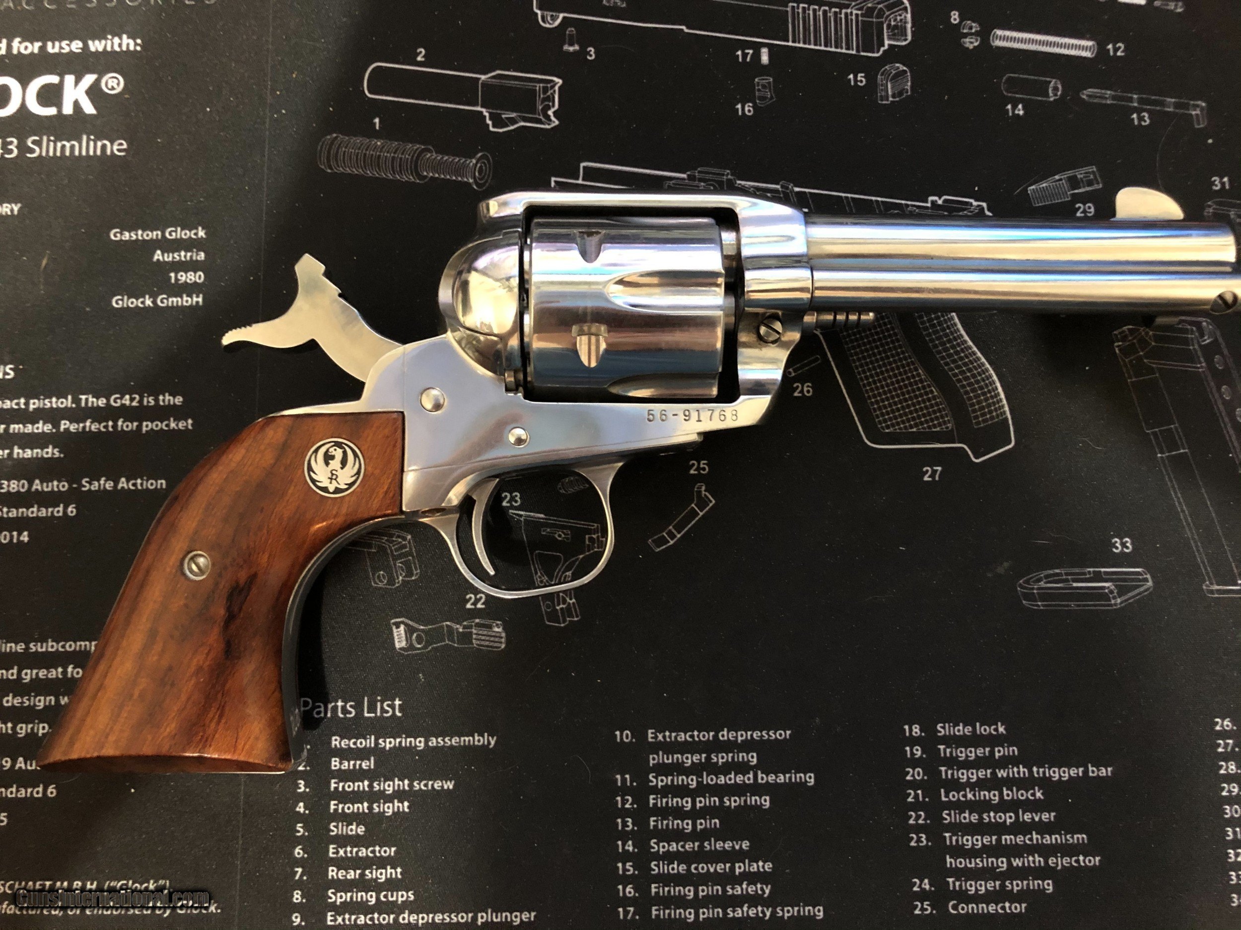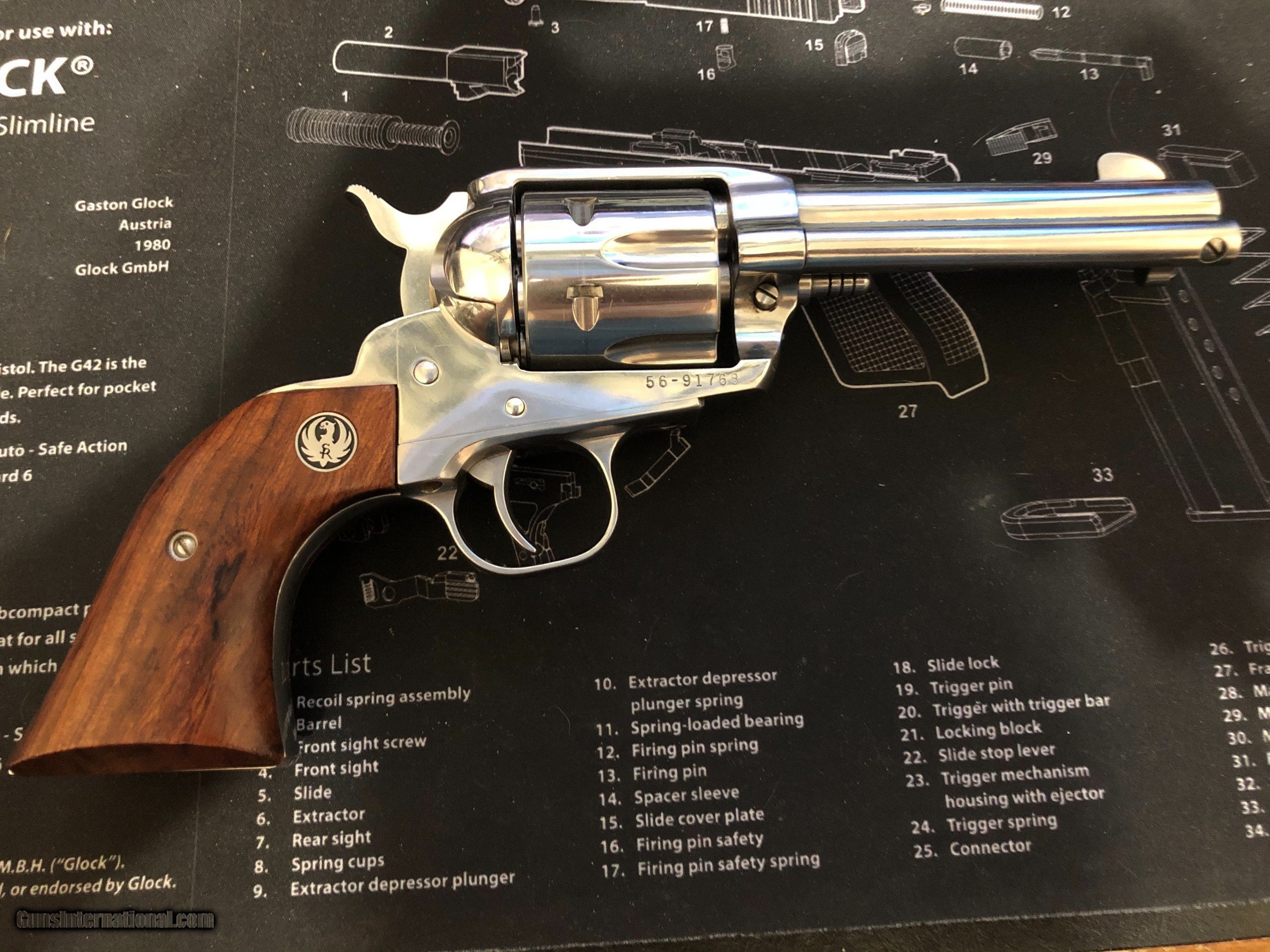 Description: Ruger Vaquero in 357/38 special in exellant condition. The Vaquero is a single action revolver, holds 6 rounds of either 357 magnum or 38 special ammunition and comes with a 4.62" barrel. I do not have the original box and it will come in a plastic pistol case. $ 825.00 pius $ 40.00 shipping to your designated FFL SOLD Handgun Caliber: .357 Magnum Manufacturer: Ruger Model: Vaquero Serial Number: 56-91768 Barrel Length: 4.62 Bore: Very Good + Chambers: Very Good + Condition: Very Good + Metal Condition: Very Good + Wood Condition: Exellent Bore Condition: Very Good + Action: Single Action |