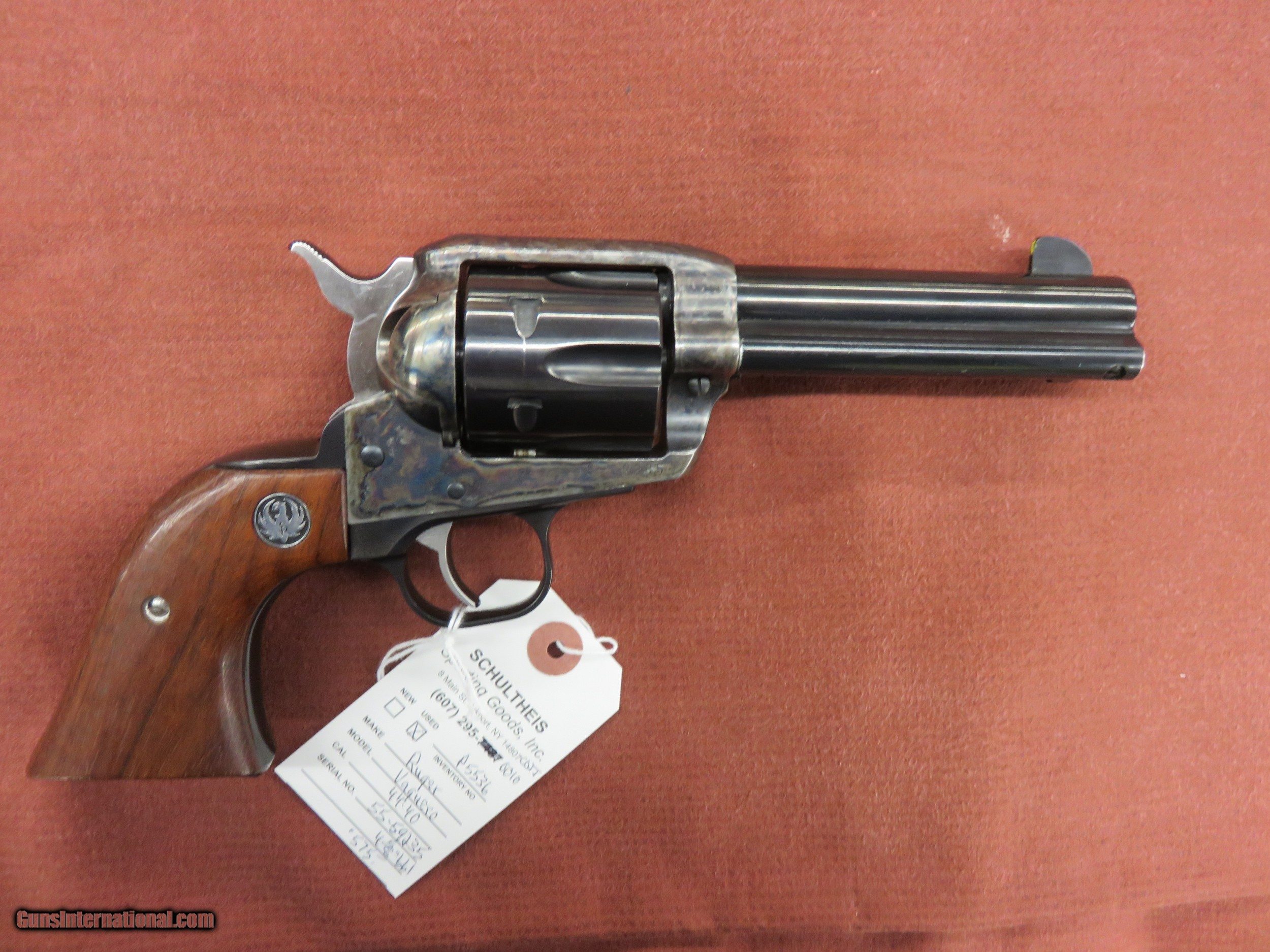 Description: Ruger Vaquero 44-40win, 4 5/8" barrel, 355-59XXX, 97% blue, 93% case color, slight edge wear on the extractor shroud, all original, excellent action. SOLD |