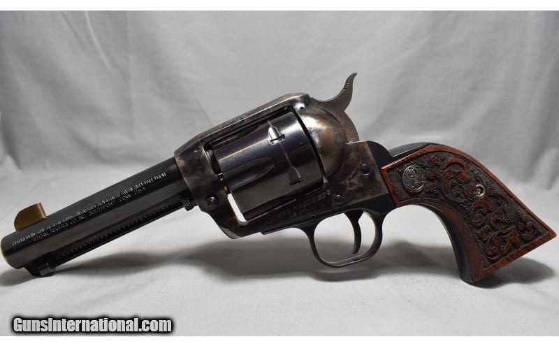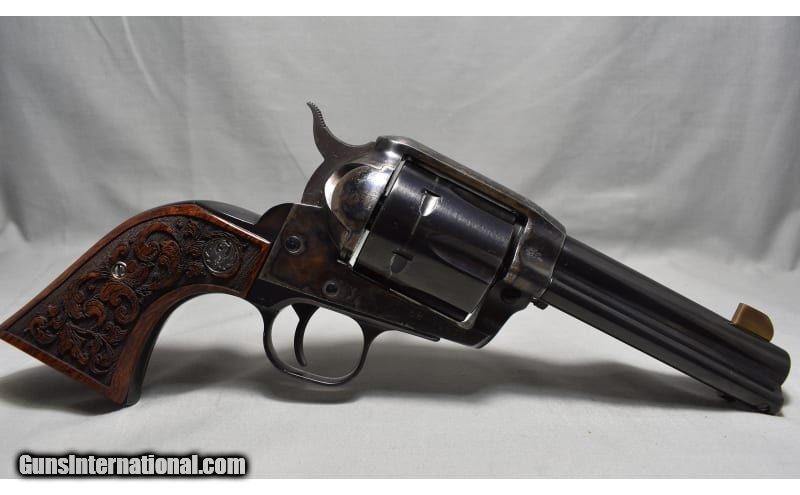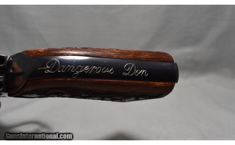 Description: This Sturm Ruger Vaquero Single Action .45 is in outstanding condition. Customized Grips and engraved "Dangerous Don" on the frame. The barrel has three or four small scratches. Very nice looking gun at a good price. .45 SOLD Chambers: .45 with 6 round cylinder Metal Condition: Very Good Wood Condition: Very Good Bore Condition: Very Good Barrels: 4 3/4 Weight: 3 Sights: Fixed Item Location: Kansas City, KS |