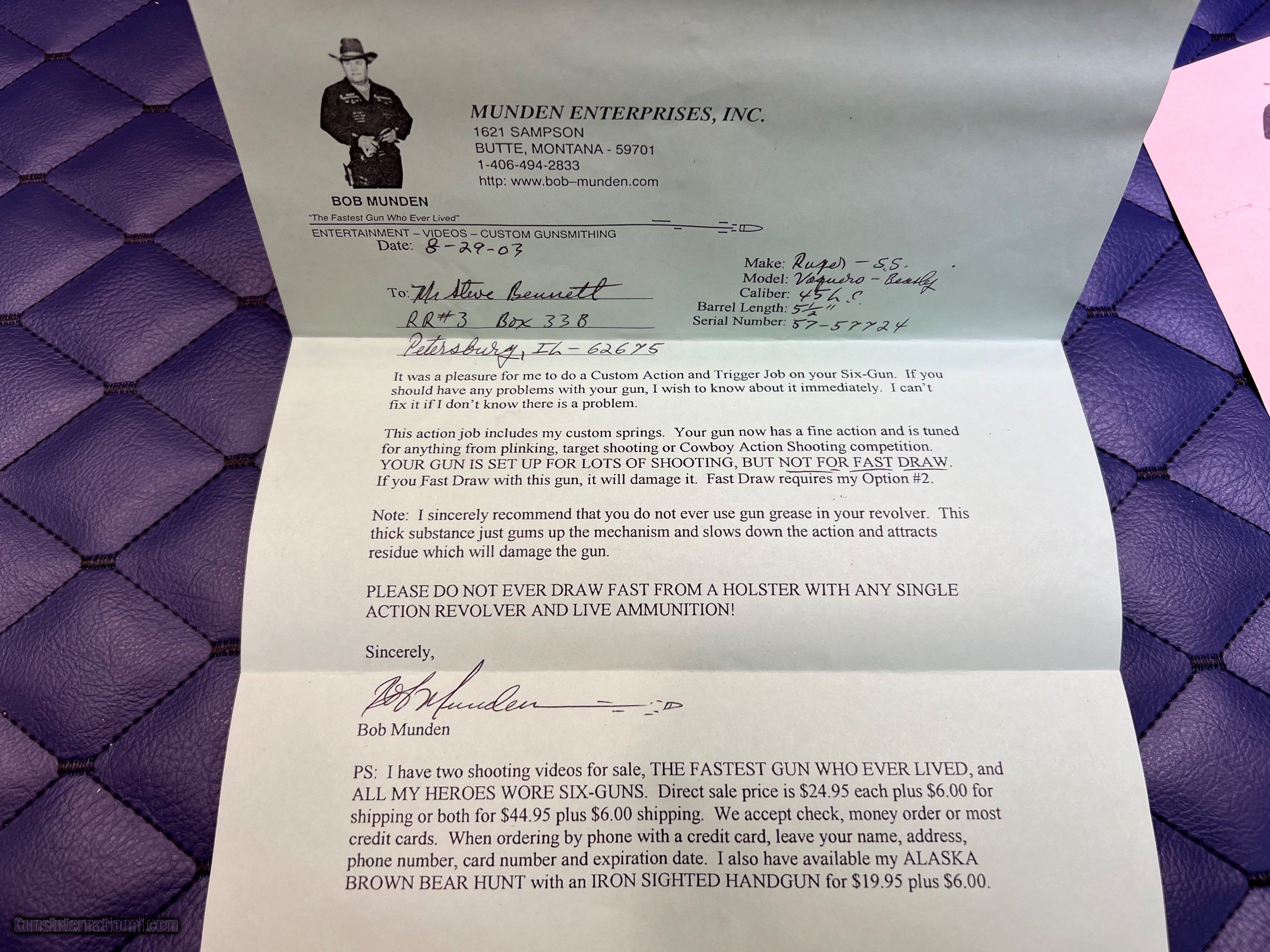 Used Good Condition Ruger Bob Munden Custom Vaquero .45LC, 5.5" Barrel