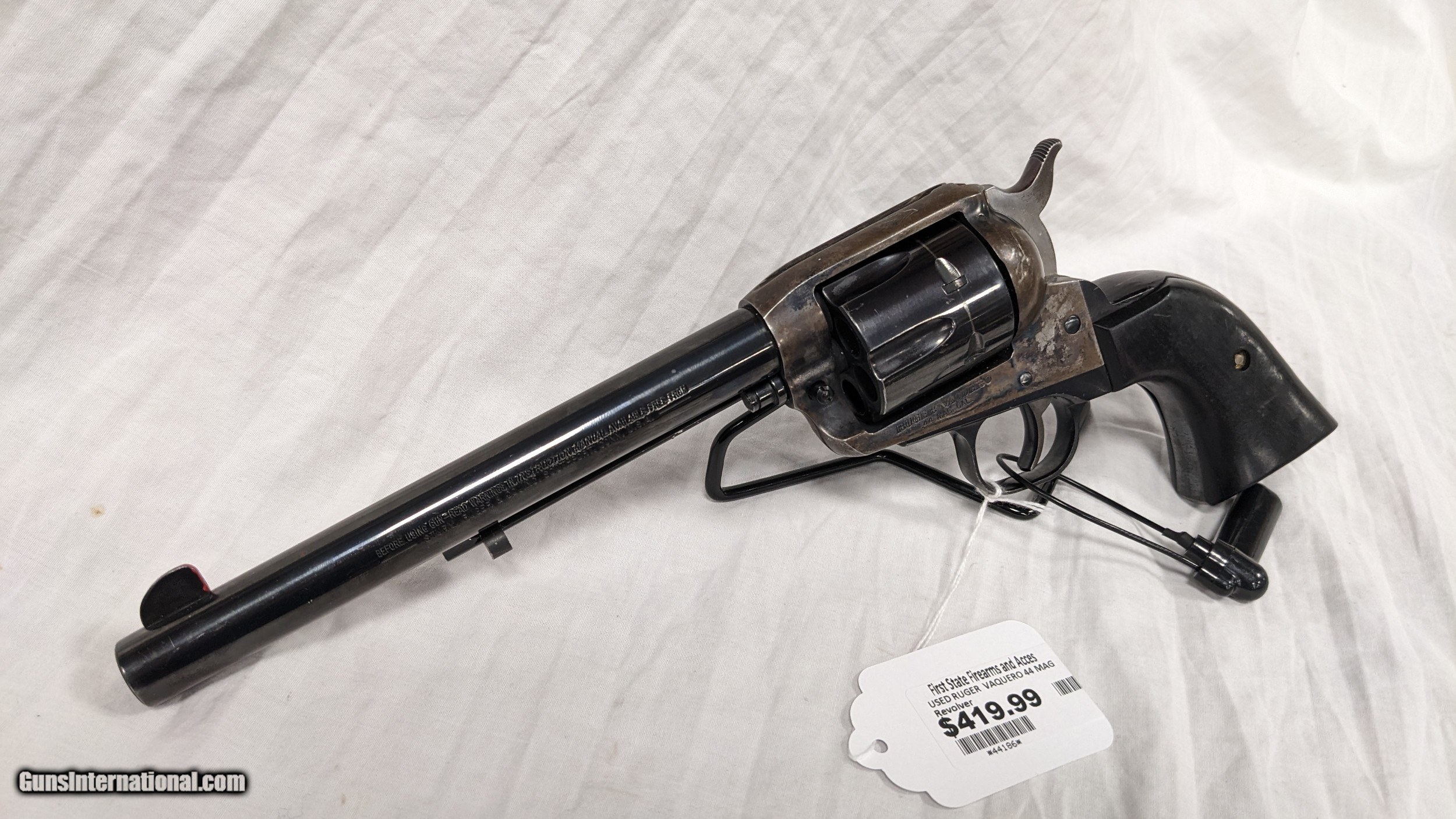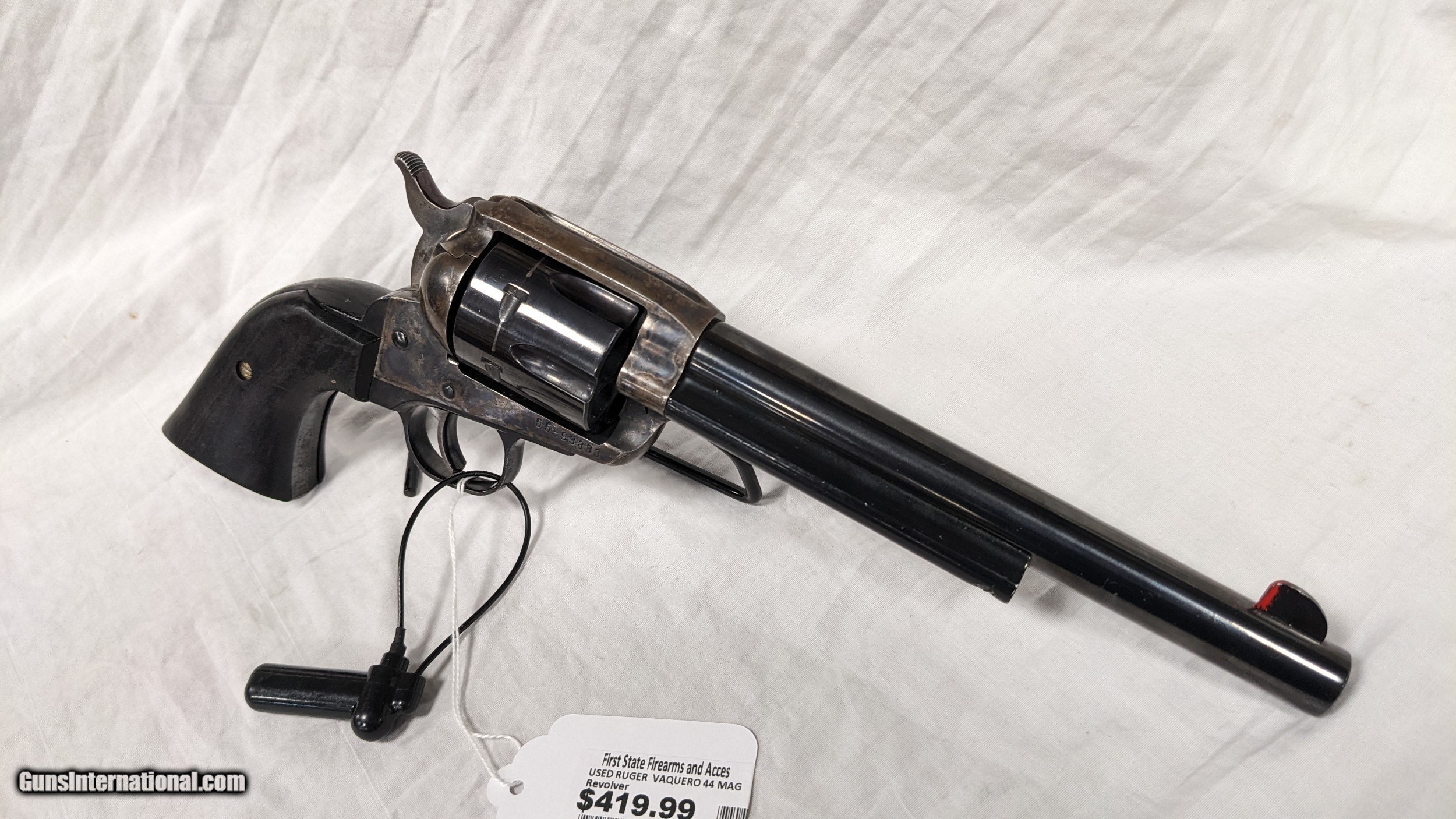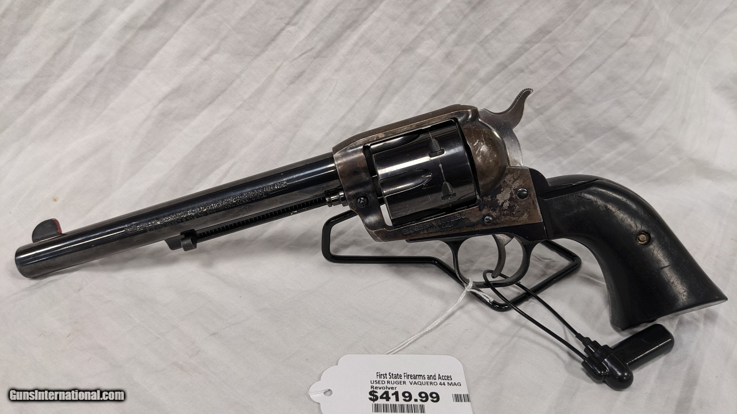 Description: This is a used item. While we do not test fire our used firearms, we perform an inspection and function check to determine the firearm is fully functional to the best of our ability. Please call with any questions. If you are interested in purchasing this item, please give us a call. Please have the "Seller #" and/or "Guns International #" ready along with the contact information for the FFL you'd like the item shipped to. For Sale from First State Firearms & Accessories AKA The Gun Shop in New Castle, DE. Shipping is $25.00. Includes $100.00 in shipping insurance. Additional insurance available at buyer's expense and request. SOLD Handgun Caliber: .44 Remington Magnum Manufacturer: RUGER Model: VAQUERO Serial Number: 55-93833 Condition: USED, GOOD Action: SINGLE ACTION REVOLVER Extras: NONE / GUN ONLY |