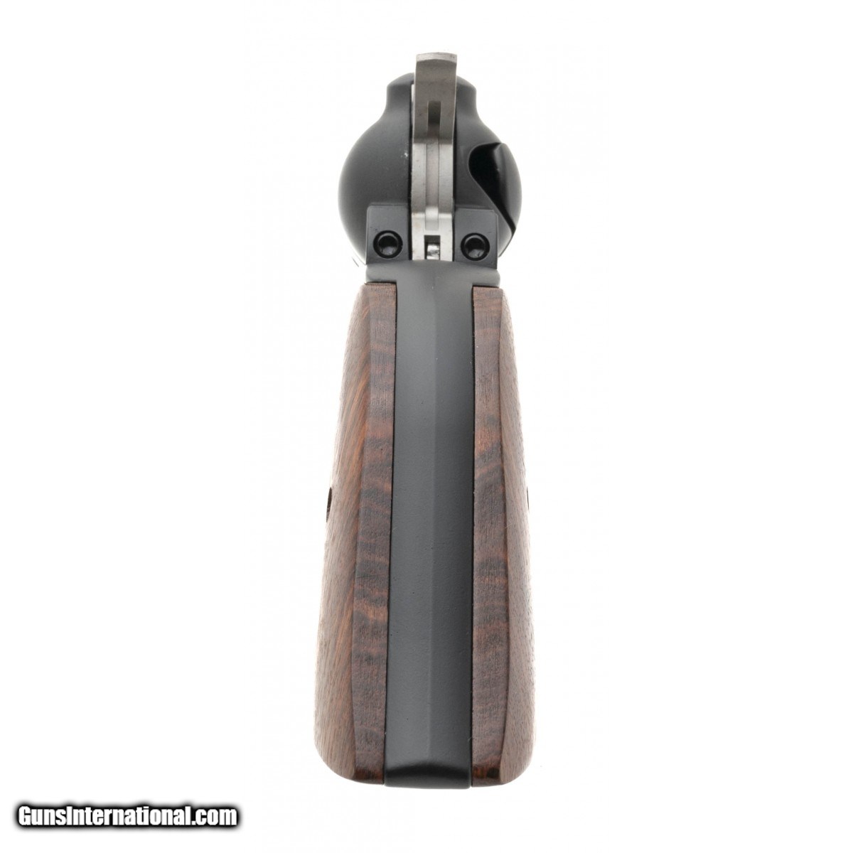 Description: " Single action revolver with a 4.62"" barrel and wood grips. Overall in excellent condition, with box and a holster. SOLD |