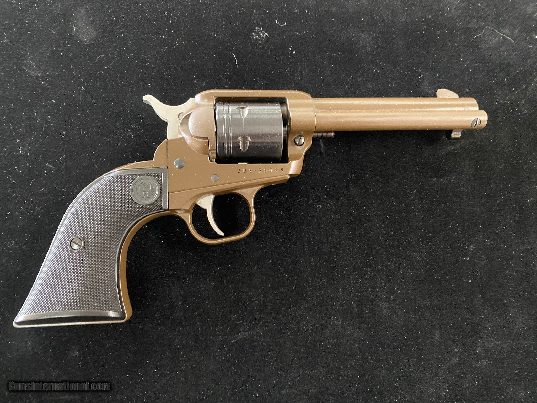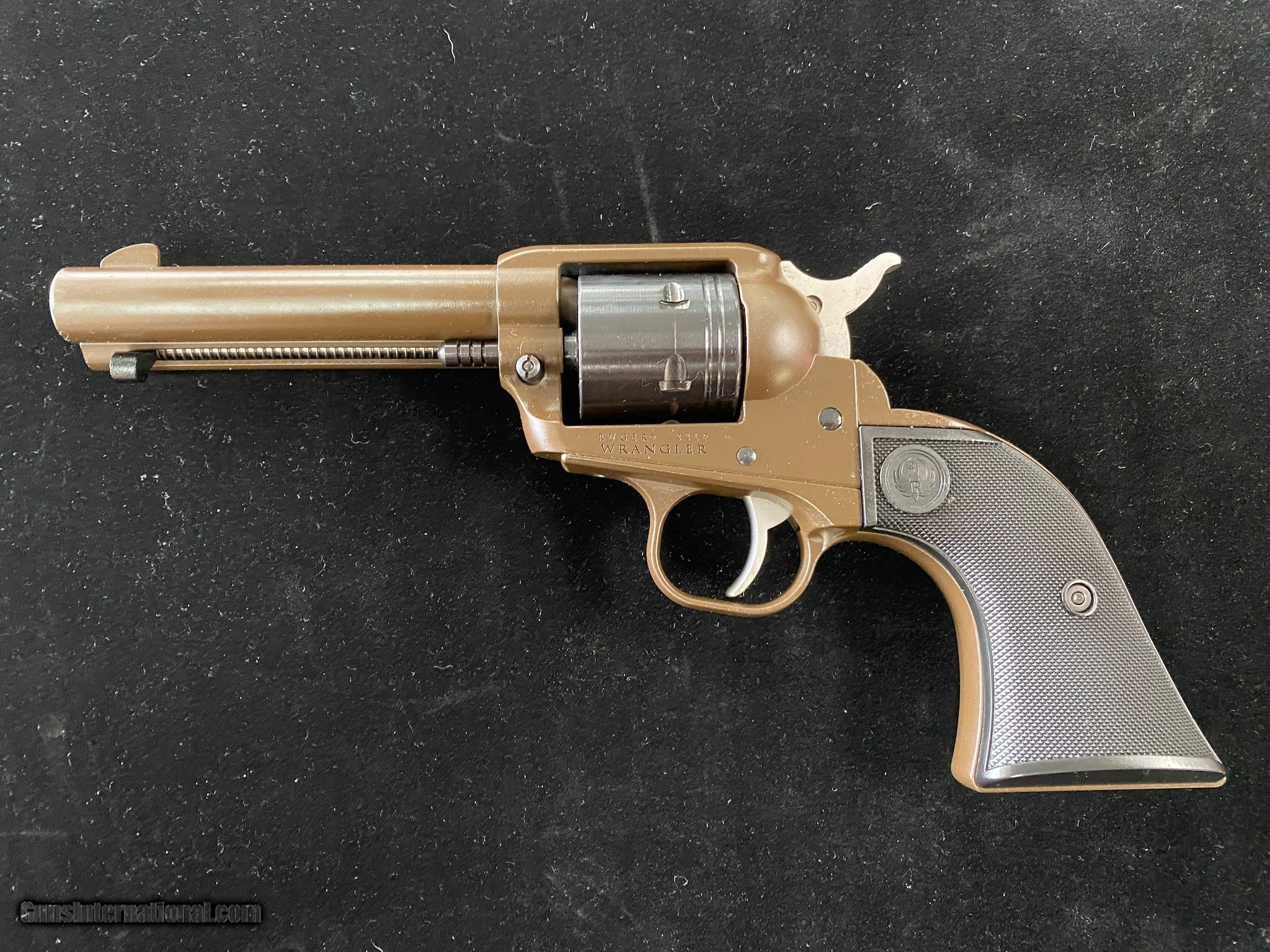 Description: Guns Listing ID: 984054 Comes with holster, please look at all photos to determine condition . Not only is it chambered for affordable .22 LR ammo, the Ruger® Wrangler Single-Action Rimfire Revolver with Bronze Cerakote® Finish is the perfect sidearm for life on the ranch or the farm. It‚‚s great for taking care of varmints and pests that complicate life in the country. The cold hammer-forged barrel with 1:14 rifling delivers superior accuracy, while the Bronze Cerakote finish offers superior corrosion resistance. Thanks to its aluminum alloy frame, this pistol offers a quick-drawing, lightweight feel, and the checkered synthetic grips provide a confident grip and improved shooting control. Its transfer bar and loading gate interlock to protect against accidental discharges SOLD Manufacturer: RUGER Model: WRANGLER Caliber Info: .22 LR Condition: Used - Non-Certified Barrels: 4.6 BARREL Finish: DARK EARTH |