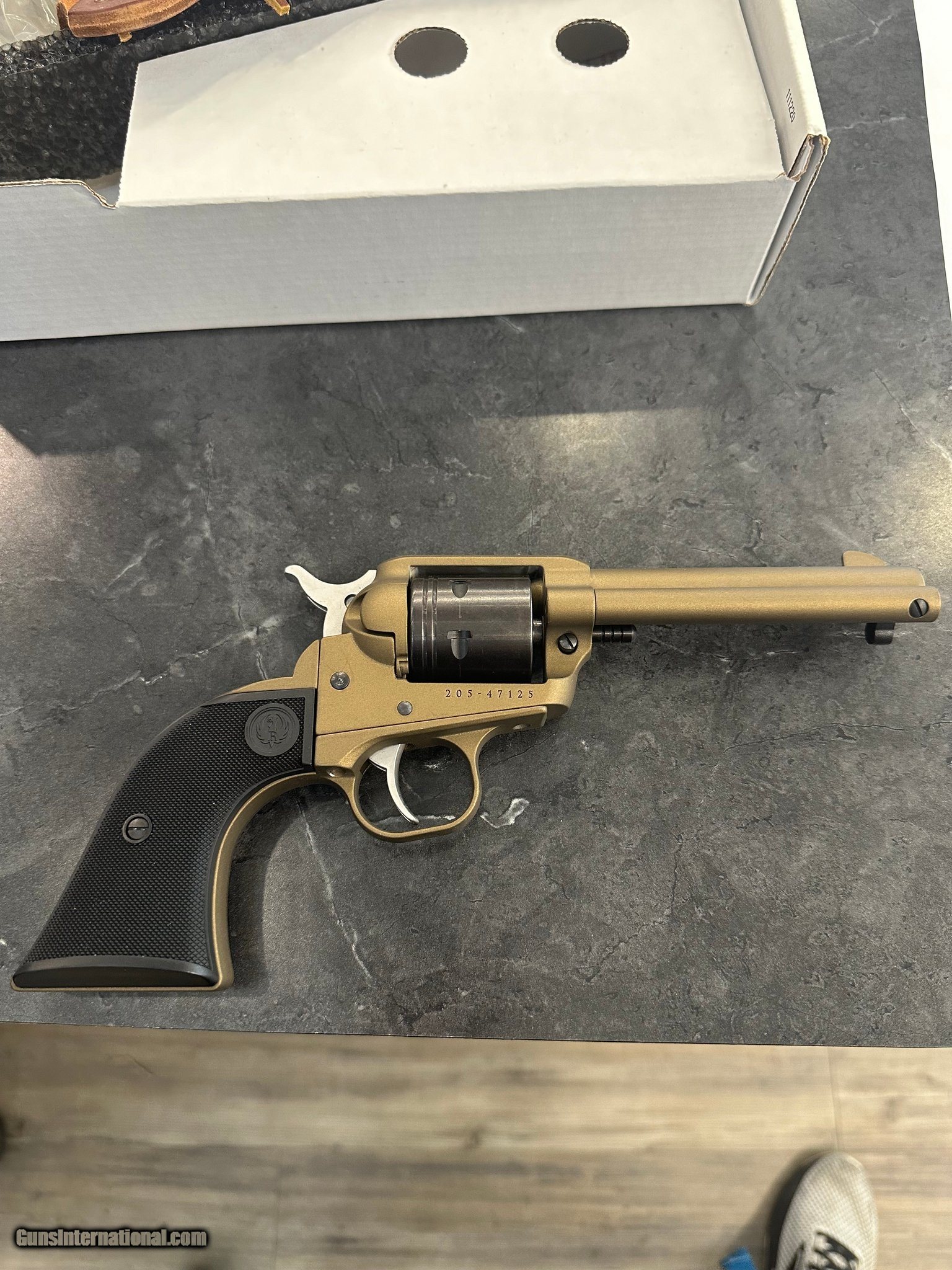 Description: Guns Listing ID: 405404 Comes with original box and leather holster SOLD Manufacturer: RUGER Model: WRANGLER Caliber Info: .22 LR Condition: Used - Non-Certified Barrels: 4.625 BARREL Action: REVOLVER Finish: BRONZE CERAKOTE Weight: not specified |
