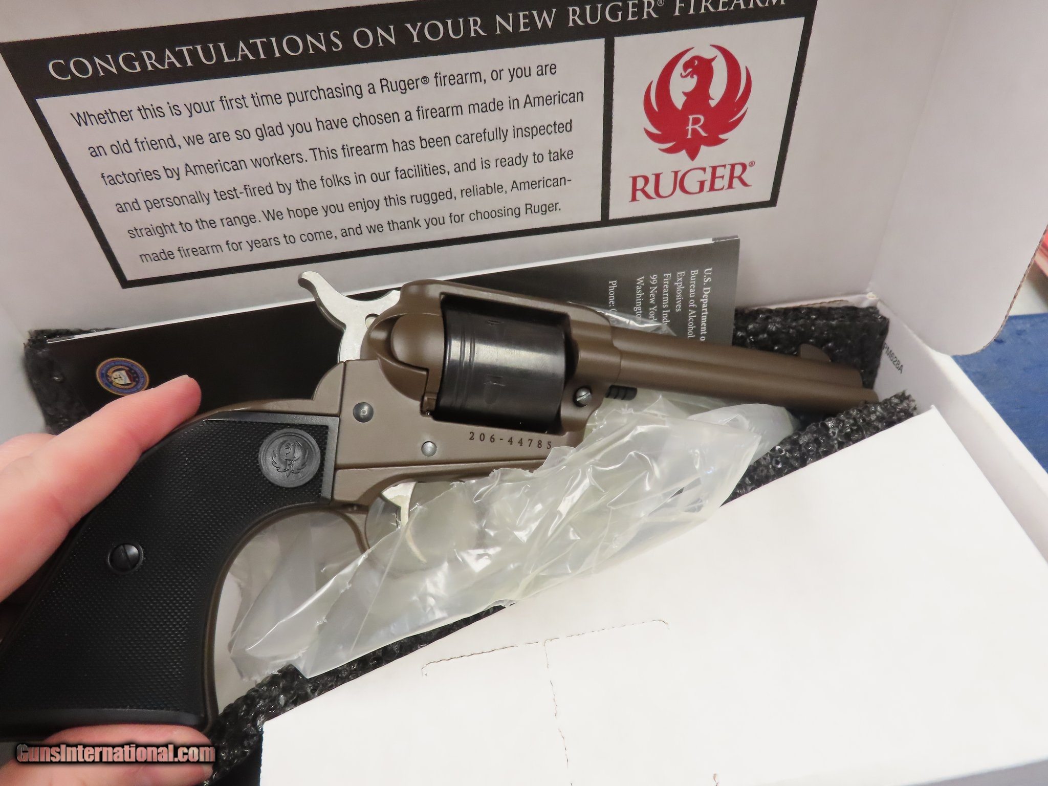 Description: Guns Listing ID: 495805 Ruger Wrangler .22lr Plum Brown. Gun comes with the original box. Likely unfired in great shape. SOLD Manufacturer: RUGER Model: WRANGLER Caliber Info: .22 LR Condition: Used - Non-Certified Barrels: 4.62 BARREL Action: REVOLVER Finish: PLUM BROWN Weight: 1.9 lbs. |