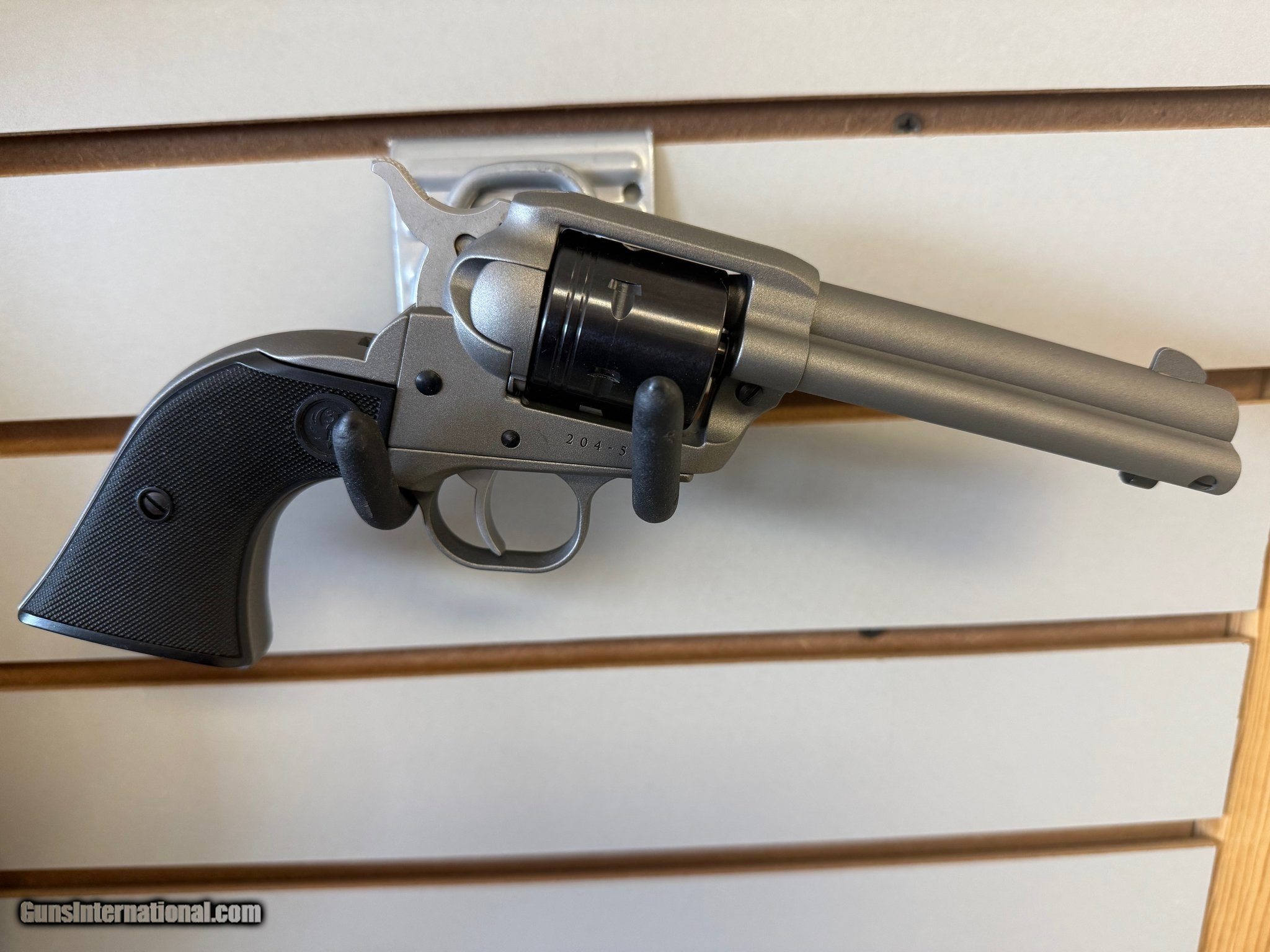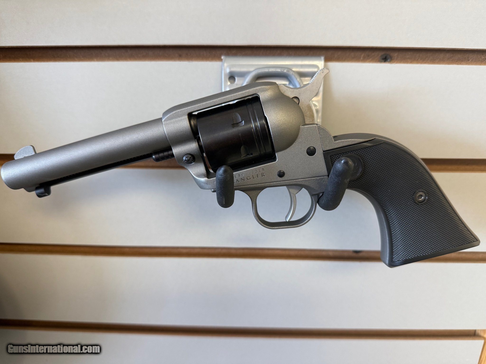 Description: Guns Listing ID: 468694 Not only is it chambered for affordable .22 LR ammo, the Ruger® Wrangler Single-Action Rimfire Revolver with Bronze Cerakote® Finish is the perfect sidearm for life on the ranch or the farm. It‚‚s great for taking care of varmints and pests that complicate life in the country. The cold hammer-forged barrel with 1:14 rifling delivers superior accuracy, while the Bronze Cerakote finish offers superior corrosion resistance. Thanks to its aluminum alloy frame, this pistol offers a quick-drawing, lightweight feel, and the checkered synthetic grips provide a confident grip and improved shooting control. Its transfer bar and loading gate interlock to protect against accidental discharges. Chambered for affordable .22 LR ammo Perfect sidearm for life on the ranch Takes care of varmints and pests Cold, hammer-forged barrel with 1:14 rifling Bronze Cerakote finish Aluminum alloy frame Checkered synthetic grips Transfer bar and loading gate interlock Blade front and integral notch rear sights ThIS REVOLVER IS LIKE NEW COMES WITH FACTORY BOX SOLD Manufacturer: RUGER Model: WRANGLER Condition: Used - Non-Certified Barrels: 7.5 Gauge Info: .22LR/.22MAG Finish: matte chrome |