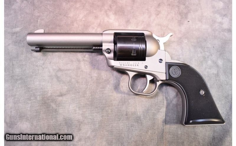 Description: Not only is it chambered for affordable .22 LR ammo, the Ruger® Wrangler® Single-Action Rimfire Revolver with Silver Finish is the perfect sidearm for life on the ranch or the farm. It's great for taking care of varmints and pests that complicate life in the country. Thanks to the cold, hammer-forged barrel with 1:14 rifling, it has the accuracy needed to hit scampering pests. When the weather turns bad, its silver finish keeps it looking good and free of rust. Thanks to its aluminum alloy frame, this pistol offers a quick-drawing, lightweight feel. Its checkered synthetic grips provide a confident grip and extra shooting control. Its transfer bar and loading gate interlock virtually eliminate accidental discharges. Line up the blade front and integral notch rear sights and experience the straight-shooting accuracy of the Ruger Wrangler Single-Action Rimfire Revolver with Silver. .22 Long Rifle SOLD Metal Condition: Very good Wood Condition: N/a Bore Condition: Very good Triggers: Factory Fore End: N/a Chokes: N/a Item Location: Rossford, OH |