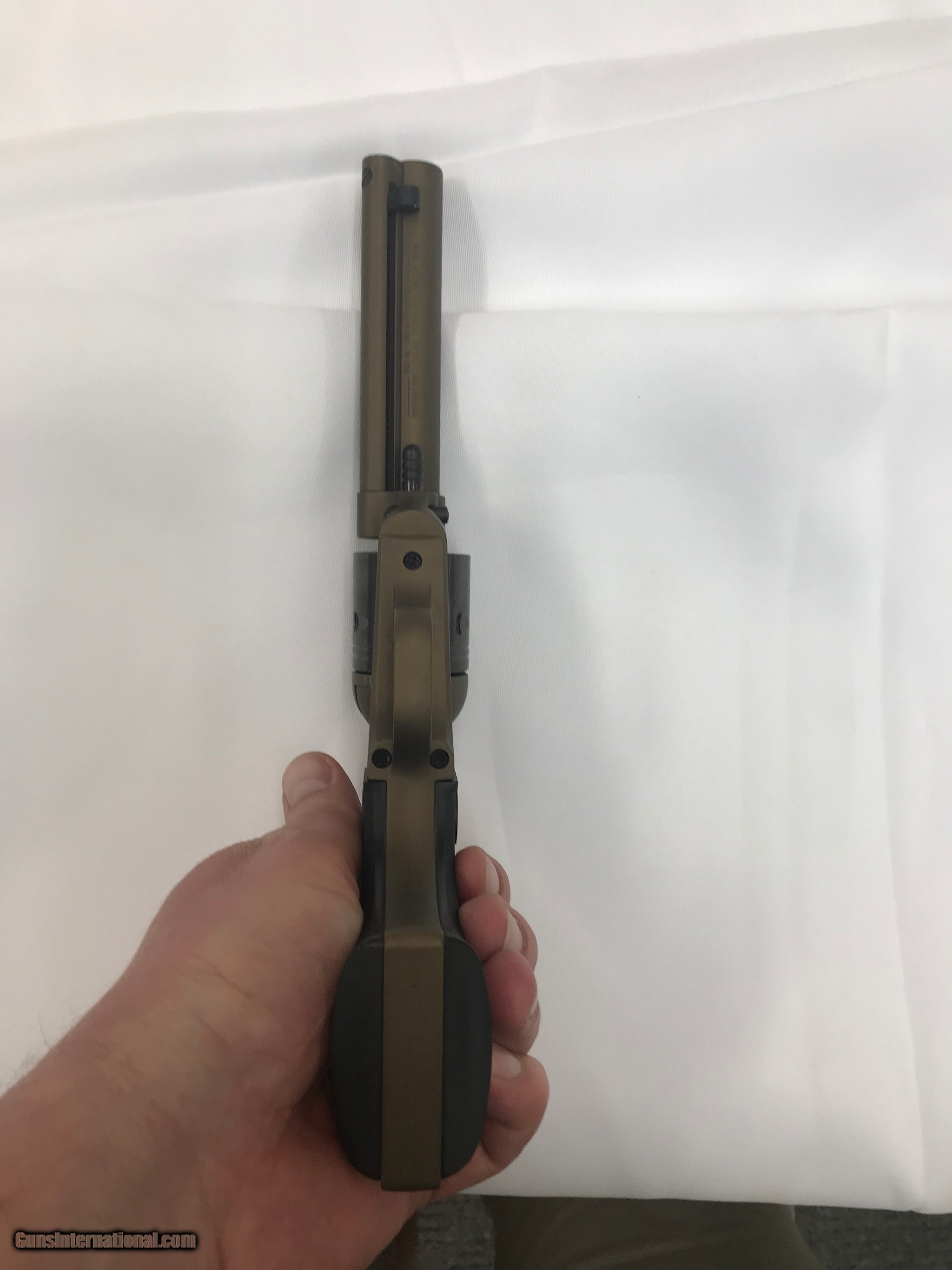 Description: Guns Listing ID: 21860 Whether it is your first or your next, this Ruger Wrangler is the perfect revolver. Made in America and built to Ruger’s quality manufacturing standards, this single-action revolver is affordable and chambered for the inexpensive 22 LR. The cold hammer-forged barrel results in ultra-precise rifling that provides exceptional accuracy and longevity, while this revolver employs the use of checkered synthetic grips on a Single-Six pattern grip frame. The Burnt Bronze cerakote finish provides visual appeal alongside rugged reliability in all environments. Blade front and integral notch rear sights aid in target acquisition, and the transfer bar mechanism and loading gate interlock provide an unparalleled measure of security against accidental discharge. SOLD Manufacturer: RUGER Model: WRANGLER Caliber Info: .22 LR Condition: new Barrels: 4.6" barrel |