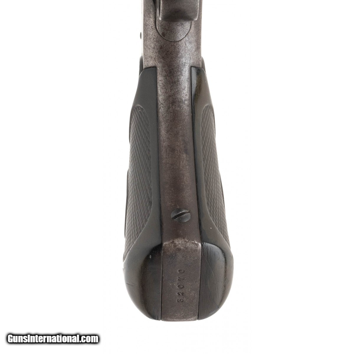 Description: "Serial number 32070. Made circa 1890s. 44-40 caliber with a 6 ½" barrel. This gun has a gray patina throughout. Grips are very good. Action works and locks up with some wiggle. SOLD Antique: Yes |