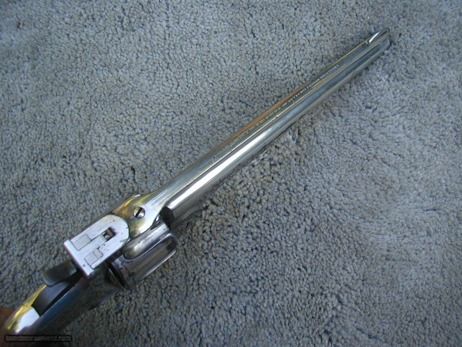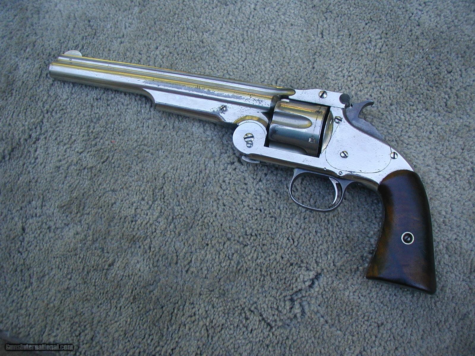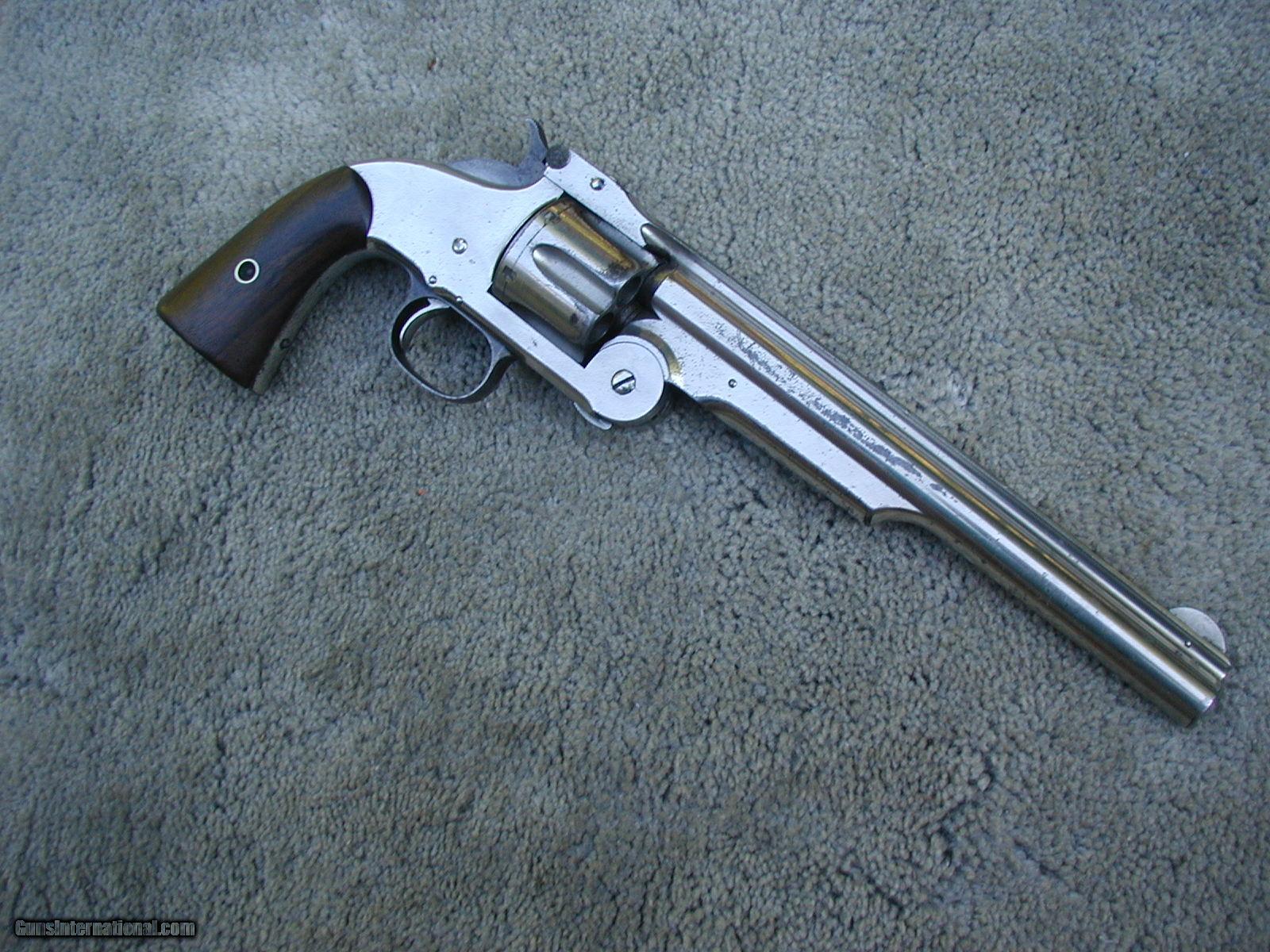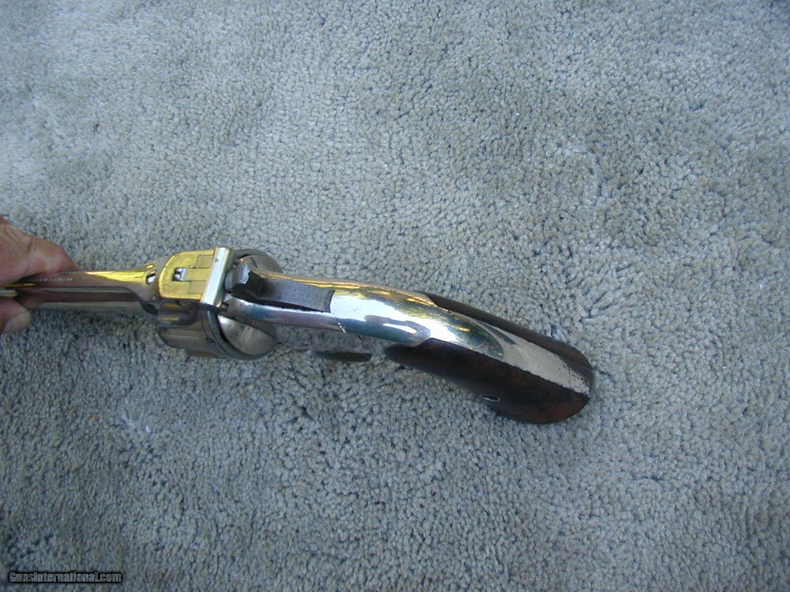 Description: THIS IS A BEAUTIFUL NICKEL 2ND MODEL AMERICAN, 8" BARREL WITH BURL GRIPS...RETAINS 96% ORIGINAL NICKEL FINSH, ACTION WORKS PERFECTLY IN TIMING , LOCK UP AND EJECTION...BEAUTIFUL BORE...SELDOM SEE THIS NICE..., ANTIQUE SOLD Antique: Yes |