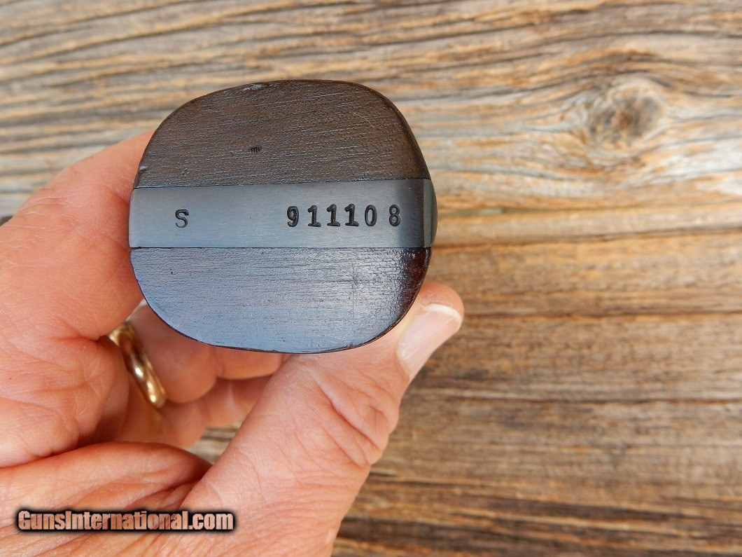 Description: C&R or FFL. No FTF sales. Payment by US Post Office money order. $45 for insured Priority shipping. No trades. A beautiful mint condition, early post war Smith & Wesson Military & Police (pre model 10) six inch 38 Special revolver. Shipped in June 1947, when guns were hand fitted. The quality, fit and finish on this gun is second to none. Bore is mint, lockup like new. No issues. SOLD Curio/Relic: Yes Handgun Caliber: .38 Special Manufacturer: Smith & Wesson Model: pre 10 Serial Number: S911108 Chambers: six mint Condition: excellent Metal Condition: excellent Wood Condition: excellent Bore Condition: mint |