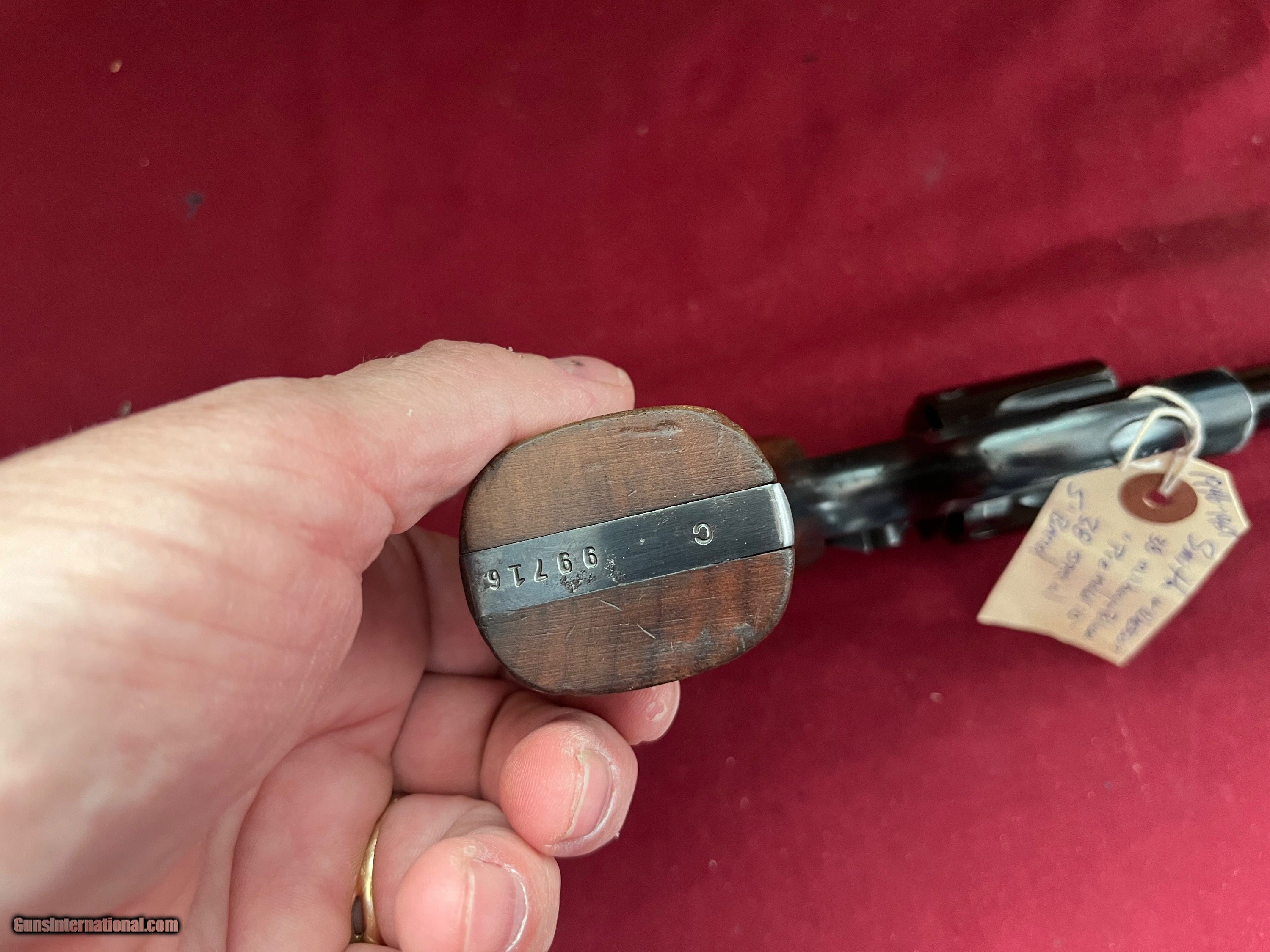 Description: SMITH & WESSON PRE MODEL 10 REVOLVER, SER# C99716. CALIBER 38 SPL. 5 INCH BARREL WITH A BRIGHT BORE. GOOD BLUE FINISH . TIGHT ACTION THAT FUNCTIONS FINE. GOOD SOLID EARLY DIAMOND CHECKERED GRIPS. EASTERN BRANCH FIREARMS ADD 50.00 SHIPPING – NEXT DAY AIR SHIPPING ADD 50.00 SHIPPING – LONG GUNS GROUND OPTIONAL INSURANCE IS AVAILABLE AT 1.25 PER 100.00 Questions e-mail or call Glen at Eastern Branch Firearms 207-215-5021 TERMS – PLEASE READ BEFORE I DO NOT HAVE A LAYAWAY OPTION ( WE ACCEPT CREDIT CARDS ) -- I GET ALOT OF REQUEST FOR TRADES, I WOULD PERFER NOT TO DO TRADES ON MY INTERNET LISTINGS PAYMENT OPTIONS- We accept money orders, cashier’s checks , bank checks. sorry no personal checks. We accept all major credit cards please add 3% to the ’s cash discount price.(Shipping within the state of Florida - Florida Residents must pay sales tax) .Handguns and long guns do need to be shipped separate. PLEASE do not send payment via FED EX . USPS & UPS are fine. Thank you. We include a signed copy of our FFL with each firearm shipped. SAFTY NOTICE- Buyer is solely responsible for determining that a used gun is safe to shoot. The firearms offered have not been test fired but have been given a visual inspection only for purposes. It is a requirement that every used firearm is inspected by a qualified gunsmith before firing. By , the buyer agrees to hold seller harmless against damages, injury, or death caused by defective merchandise. RETURN POLICY- All firearms come with a 3-day non firing , non messing with ( turning srews ,taking apart,removing parts, scoping. firing, cleaning or messing with in anyway) inspection/return privilege.Inspection is based on a visual review of the gun to confirm the gun is in the condition stated. In the case of a return, buyer pays all shipping charges & if paid for with a credit card buyer absorbs the 3% credit card charges . So please ask questions BEFORE you bid. Thanks for Looking and Good Luck!! U.S. sales only, no exports…this includes antiques. I will ship to third party for exporting SOLD Curio/Relic: Yes |