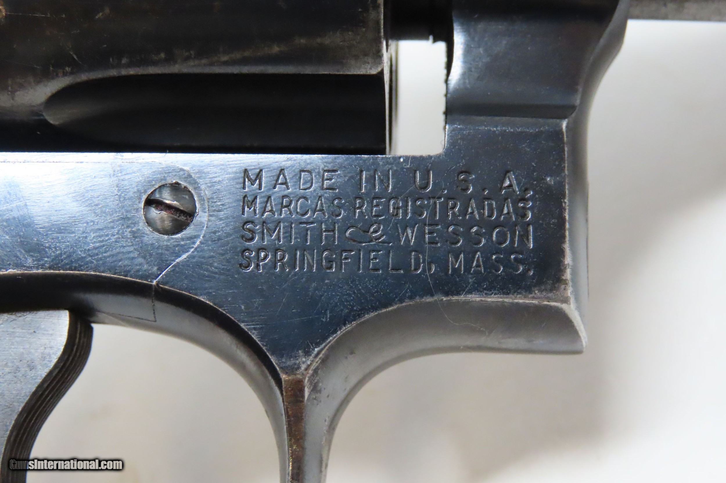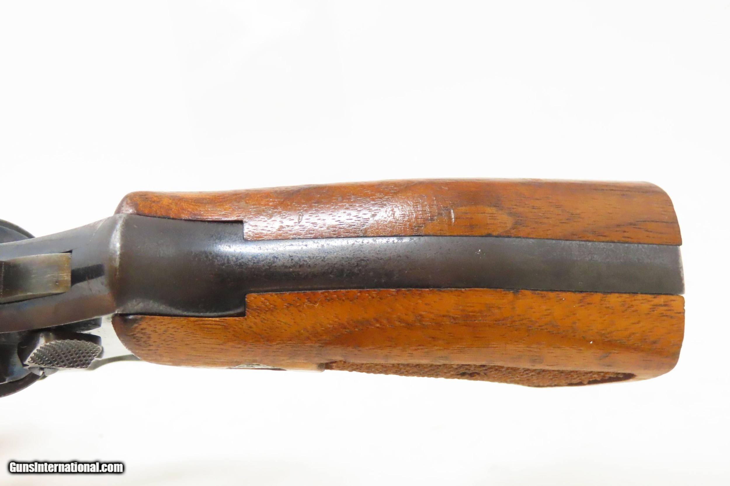 Description: SMITH & WESSON Model 10-6 Double Action .38 SPECIAL Caliber Modern Revolver Nice Blued Finish Revolver w/ WALNUT GRIP Here we present a Modern Smith & Wesson Model 10-6 Double Action Revolver manufactured circa 1972-73 in Springfield, Massachusetts, with a production run between 1899 to present day. The Smith & Wesson Model 10, previously known as the Smith & Wesson .38 Hand Ejector Model of 1899, the Smith & Wesson Military & Police, and the Smith & Wesson Victory Model, is a K-Frame revolver of worldwide popularity. In production since 1899, the Model 10 is a six-shot, .38 Special, double-action revolver with fixed sights. Over its long production run it has been available with barrel lengths of 2”, 2.5”, 3”, 4”, 5”, and 6”. Barrels of 2.5 inches are also known to have been made for special contracts. Some 6,000,000 of the type have been produced over the years, making it the most popular handgun of the 20th century. After World War II, Smith & Wesson returned to manufacturing the M&P series. Along with cosmetic changes and replacement of the frame fitting grip with the Magna stocks, the spring-loaded hammer block safety gave way to a cam-actuated hammer block that rode in a channel in the side plate (Smith 1968). In 1957, Smith & Wesson adopted the convention of using numeric designations to distinguish their various models of handguns, and the M&P was renamed the Model 10. The Model 10-6 was introduced in 1962. Used condition. Excellent action. Bright, rifled bore. Both grips are in fine shape. Sharp markings. This firearm is classified as Modern. Barrel is 4 inches. Caliber: .38 S&W Special Overall condition as seen in photos. Very Fast. Very Safe. FREE SHIPPING. Will need to be sent to your local FFL or C&R licensee. This firearm is classified as a Modern. Guaranteed AUTHENTIC & Includes CERTIFICATE OF AUTHENTICITY. ancestryguns $1200 #226375 SOLD Curio/Relic: Yes |