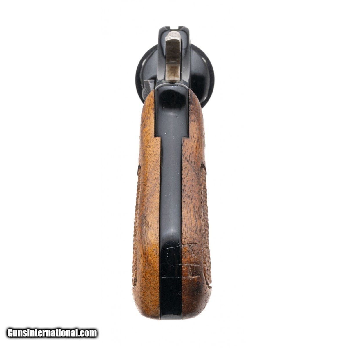 Description: " SN: D417363. Made in 1972. .38 Special with a 4"" pinned barrel. Bore is in near excellent condition. S&W double action revolver. Finish is in very good condition with minor wear on frame. Checkered wood grips are in very good condition with strong wood checkering. Overall condition is very good. Comes with box. (Consignment) SOLD |