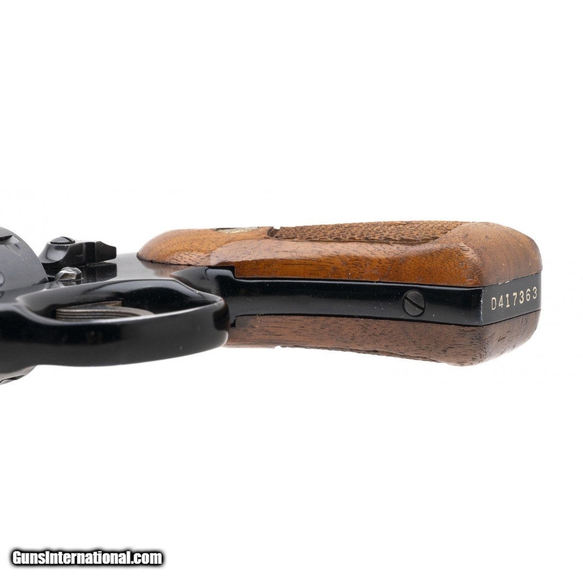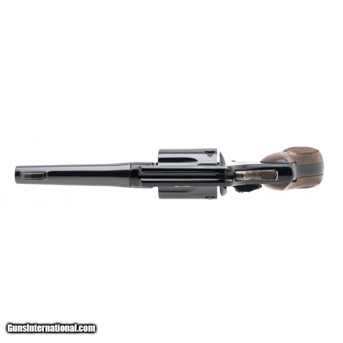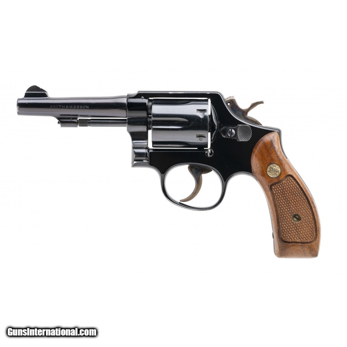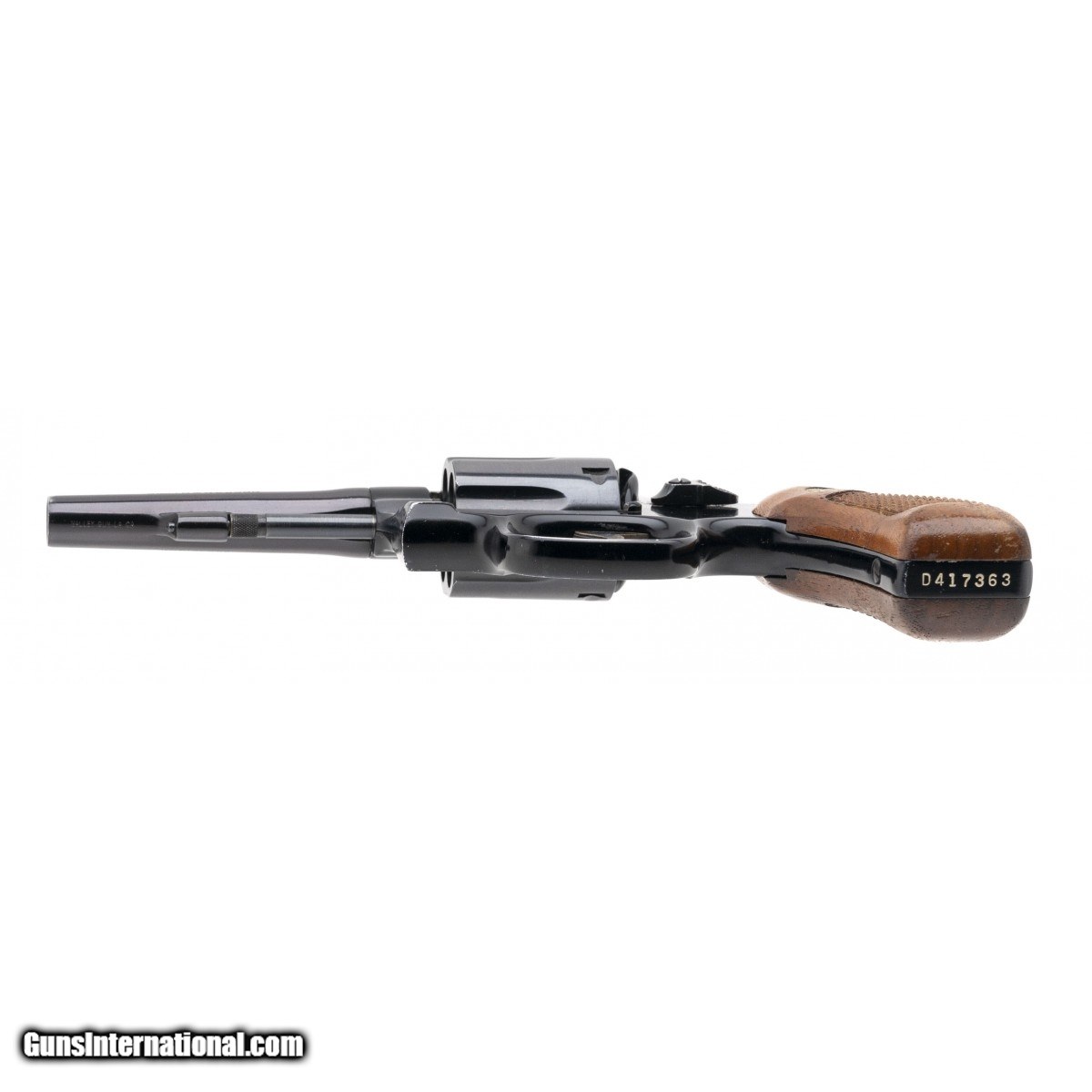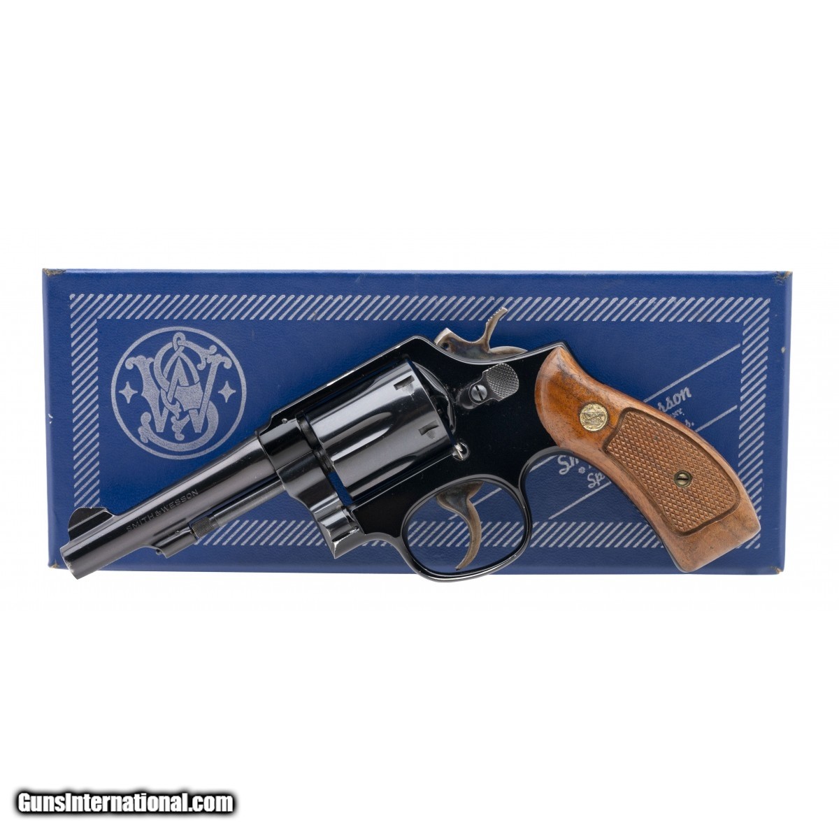 SN: D417363. Made in 1972. .38 Special with a 4"" pinned barrel. Bore is in near excellent condition. S&W double action revolver. Finish is in very good condition with minor wear on frame. Checkered wood grips are in very good condition with strong wood checkering. Overall condition is very good. Comes with box. (Consignment)