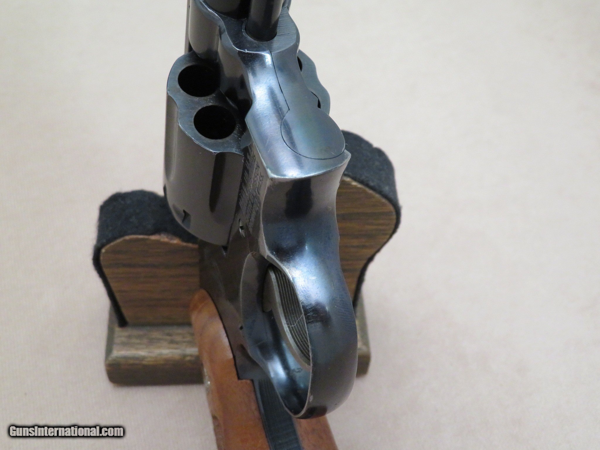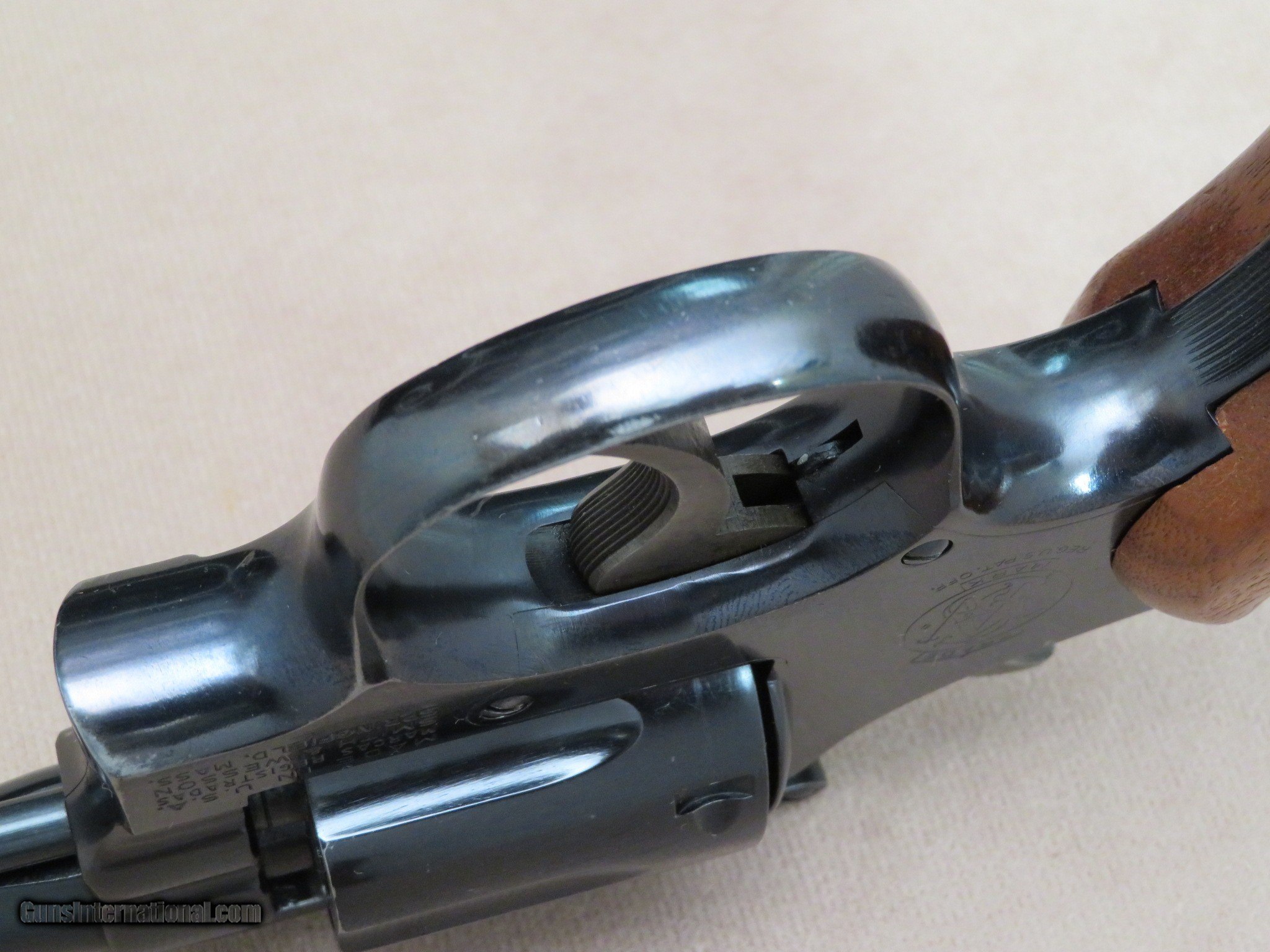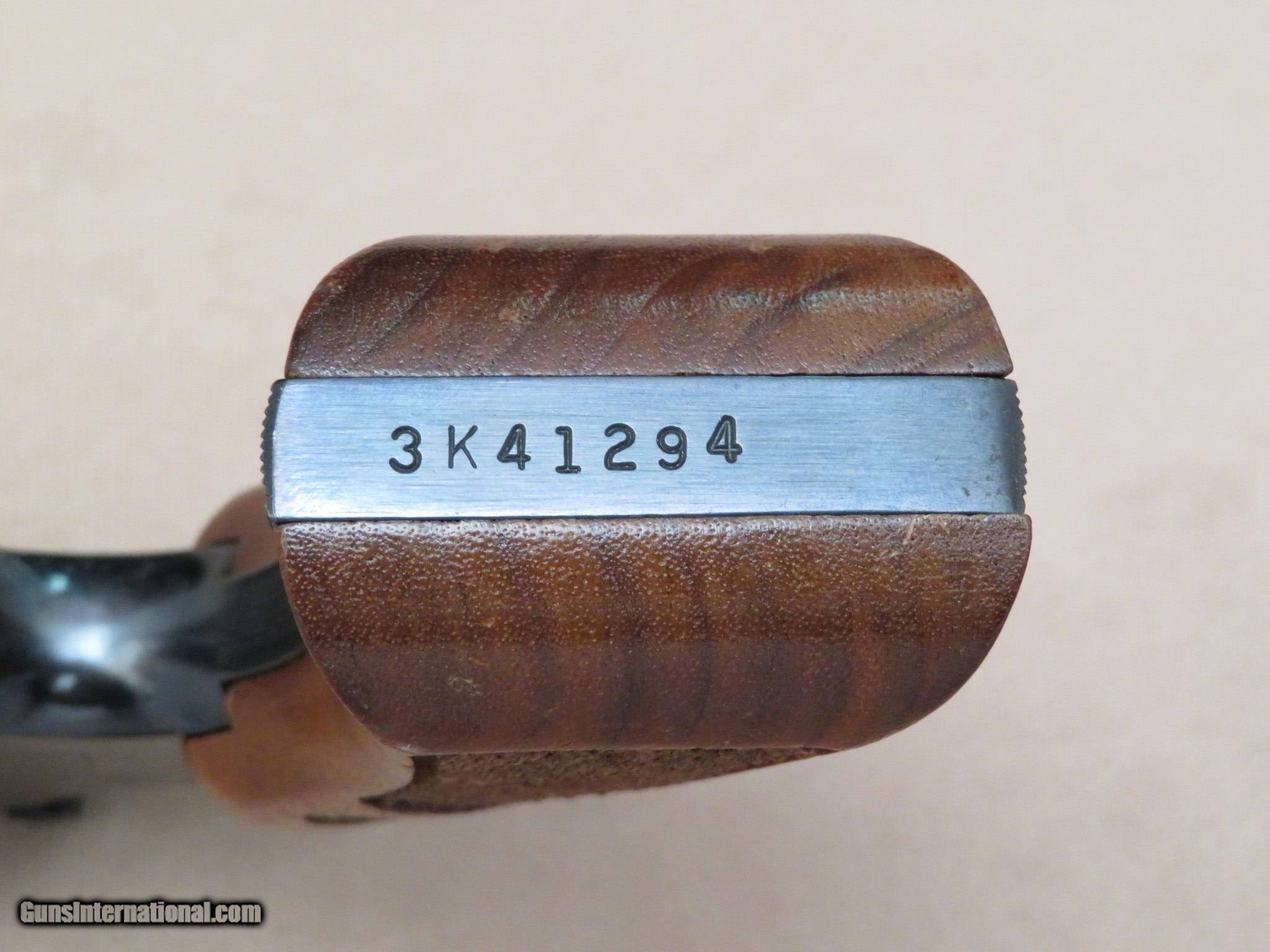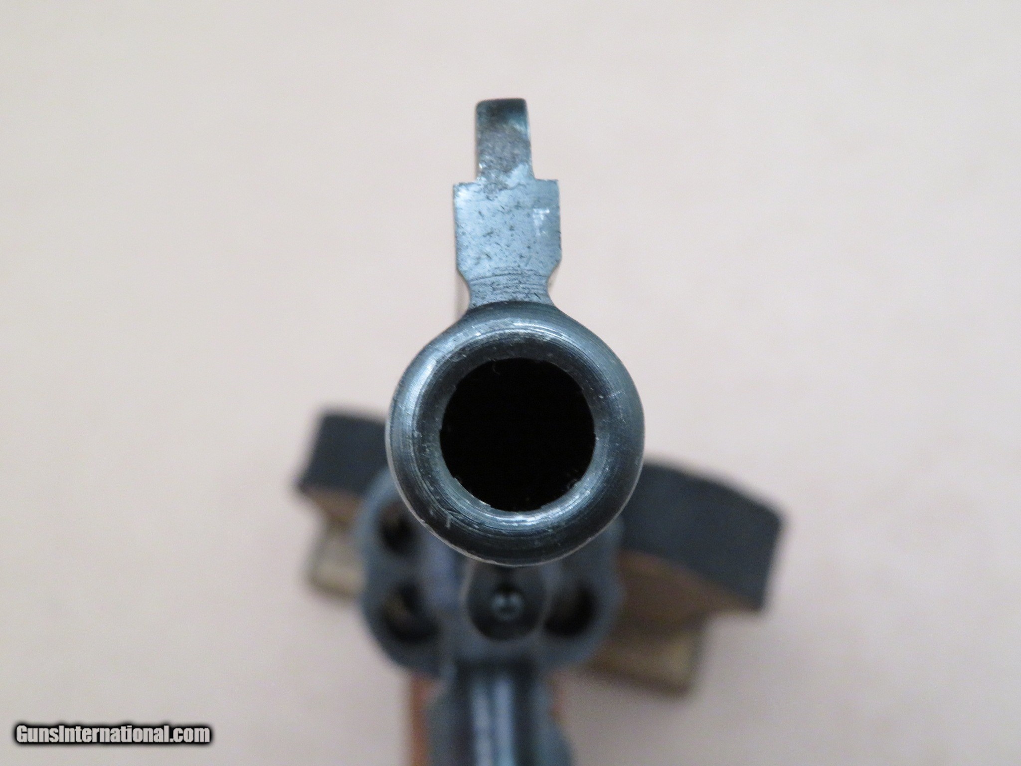 Description: This Smith & Wesson Model 15-3 was manufactured in 1971. It has a 4" inch barrel with factory adjustable target-style sights and is chambered in .38 Special. It is all-original except for the grips, which are factory replacements. This Smith has an excellent bore and clean cylinder bores. The rifling still looks new with sharp lands and grooves, and there is no visible pitting, erosion, or imperfections of any kind. The action is smooth and perfectly "in time", locking up perfectly. The trigger is good whether it is worked single or double-action. These early 1970's vintage guns were very well made and hand-fit by excellent gunsmiths that S&W employed at the time. The new-production guns just dont have the same feel despite all the modern equipment and super-tight tolerances in machining. If you have been looking for a good .38 Special target or plinking revolver this S&W Model 15-3 would be an excellent choice. SOLD Manufacturer: Smith & Wesson Model: Model 15-3 Serial Number: 3K41294 Caliber Info: .38 Special Bore: Excellent Condition: Very Good Manufacture Date: 1971 |