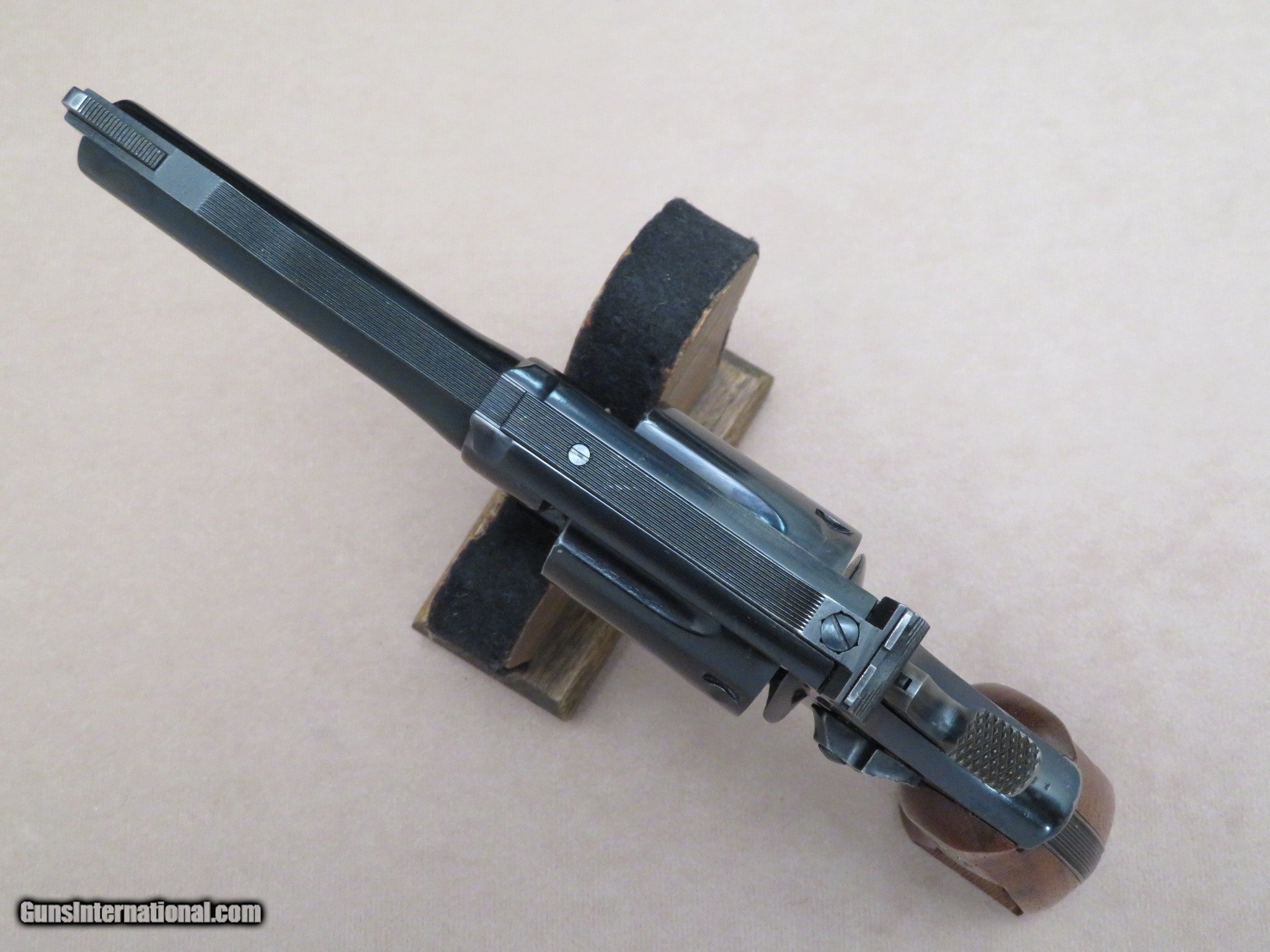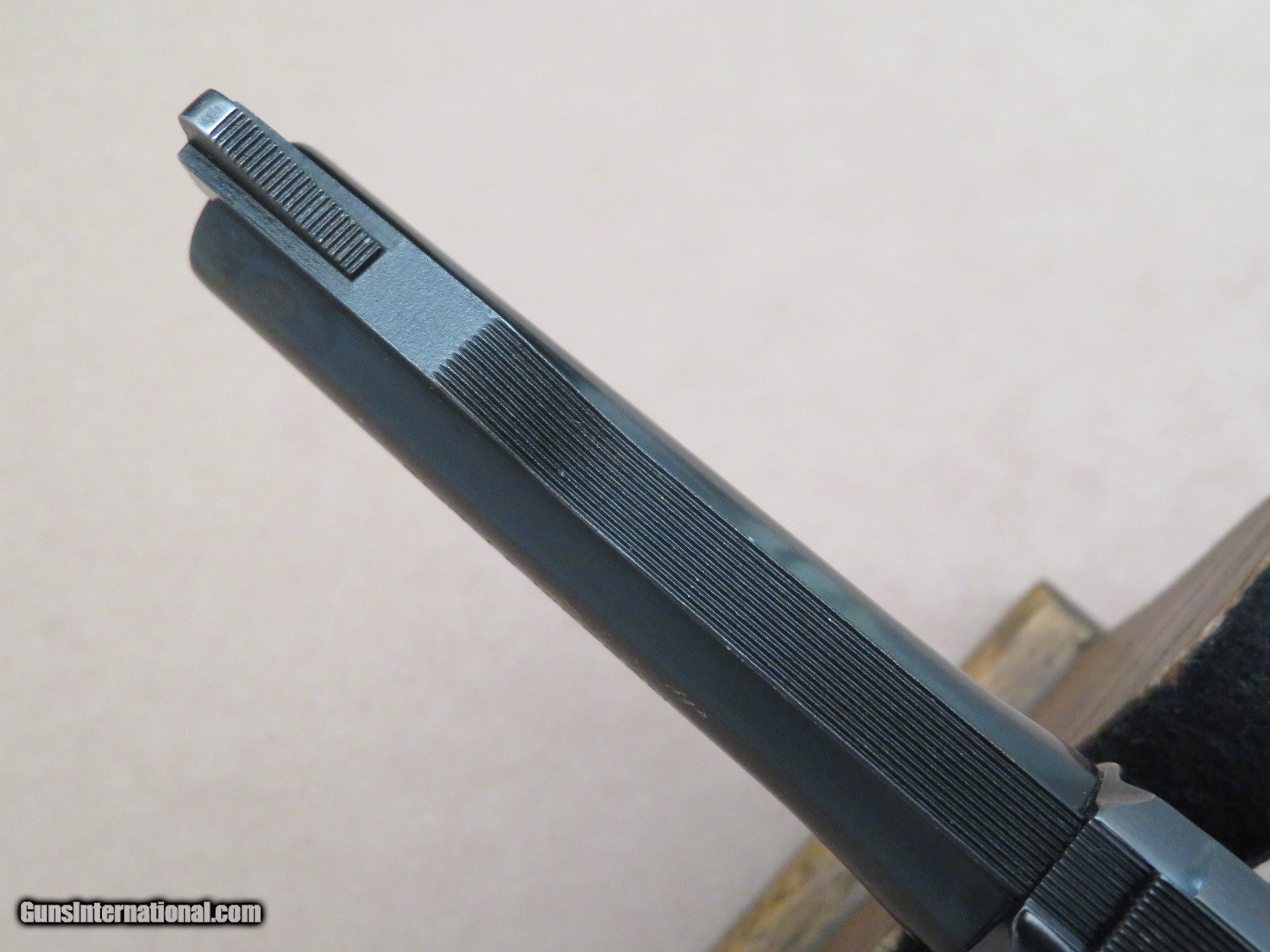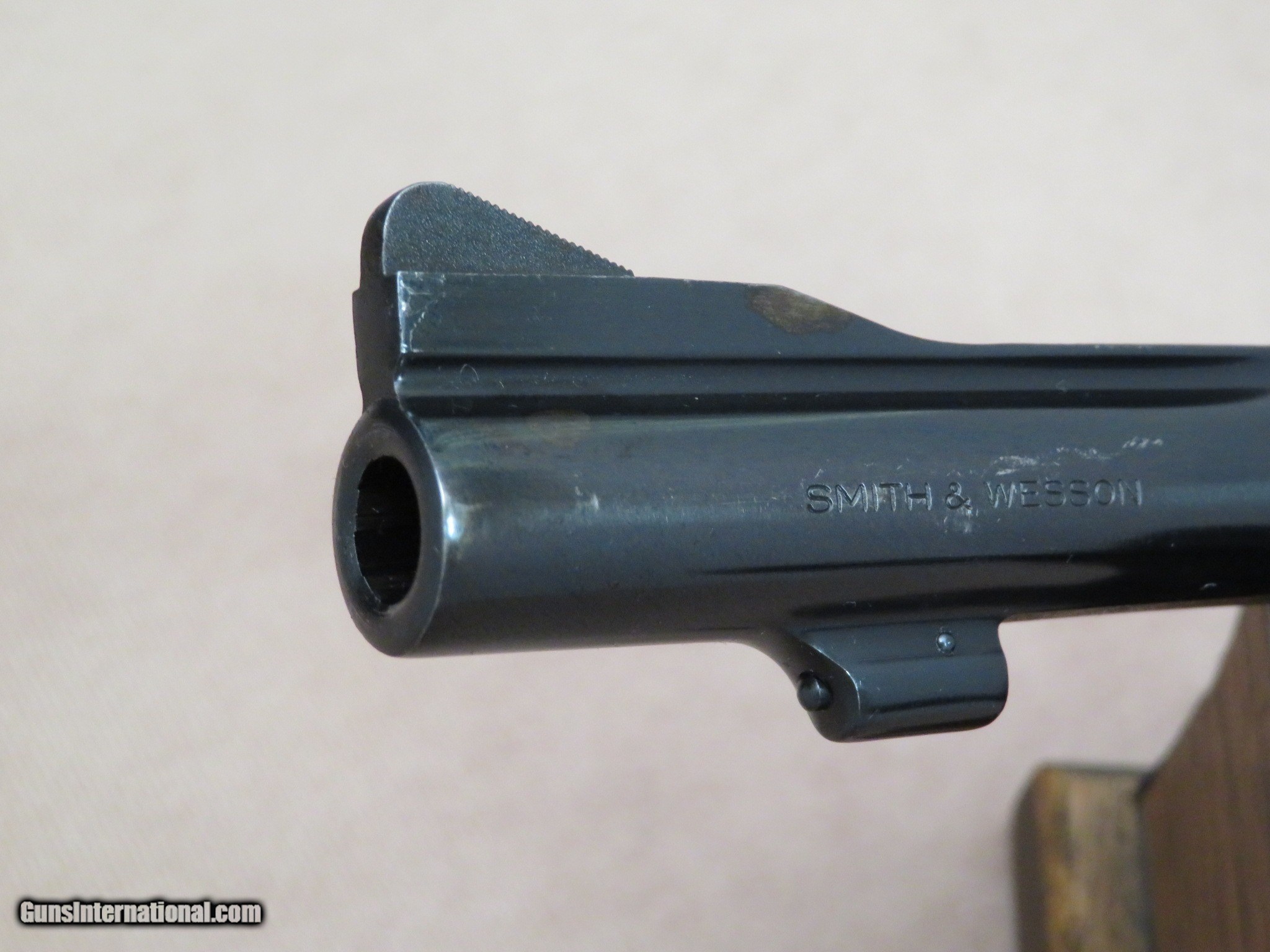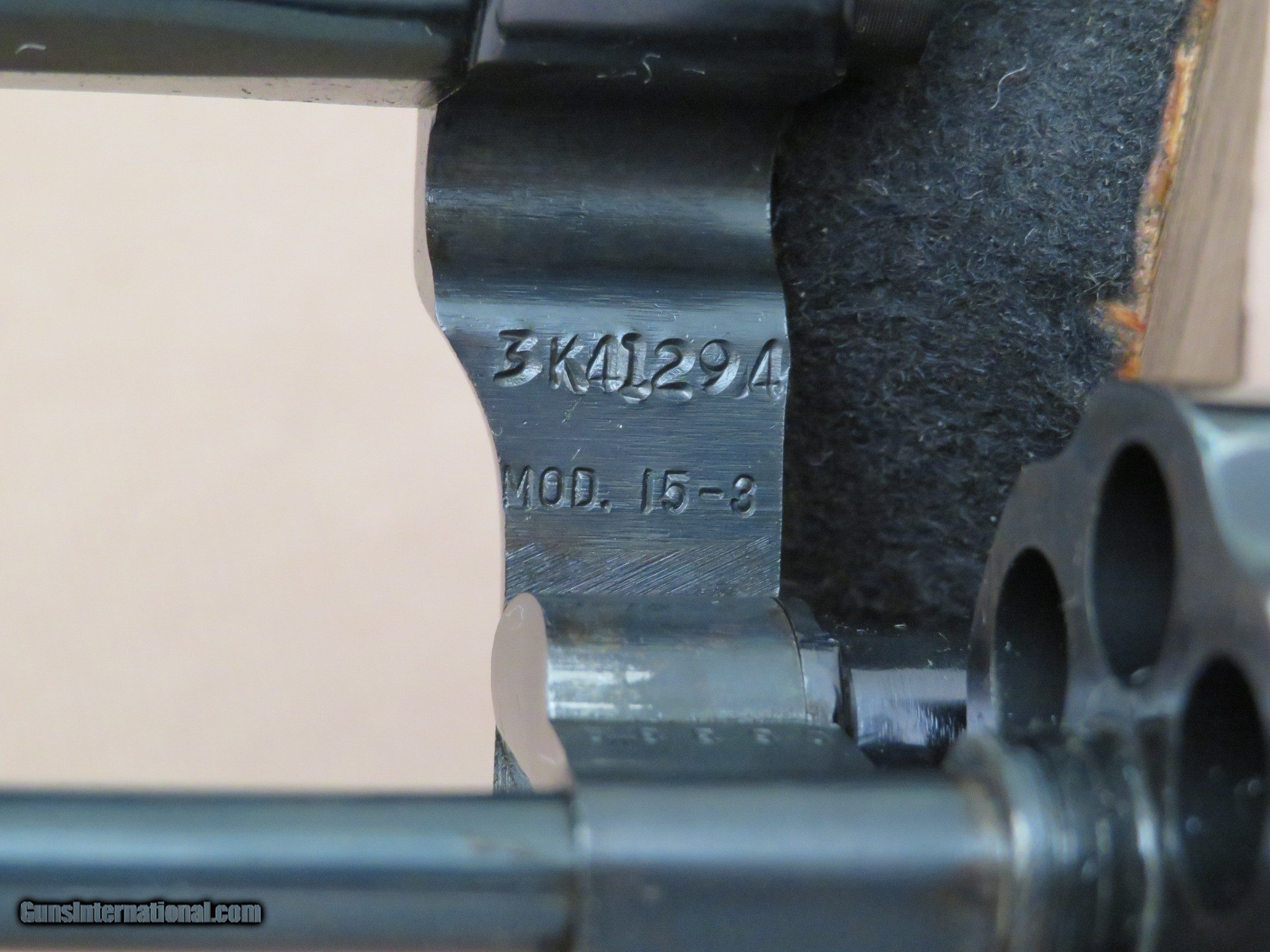 Description: This Smith & Wesson Model 15-3 was manufactured in 1971. It has a 4" inch barrel with factory adjustable target-style sights and is chambered in .38 Special. It is all-original except for the grips, which are factory replacements. This Smith has an excellent bore and clean cylinder bores. The rifling still looks new with sharp lands and grooves, and there is no visible pitting, erosion, or imperfections of any kind. The action is smooth and perfectly "in time", locking up perfectly. The trigger is good whether it is worked single or double-action. These early 1970's vintage guns were very well made and hand-fit by excellent gunsmiths that S&W employed at the time. The new-production guns just dont have the same feel despite all the modern equipment and super-tight tolerances in machining. If you have been looking for a good .38 Special target or plinking revolver this S&W Model 15-3 would be an excellent choice. SOLD Manufacturer: Smith & Wesson Model: Model 15-3 Serial Number: 3K41294 Caliber Info: .38 Special Bore: Excellent Condition: Very Good Manufacture Date: 1971 |