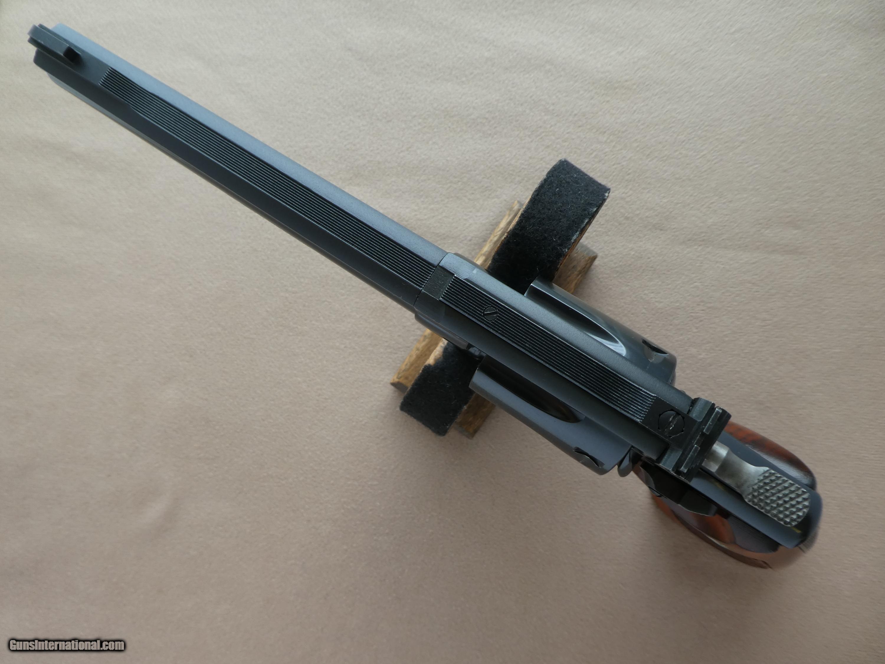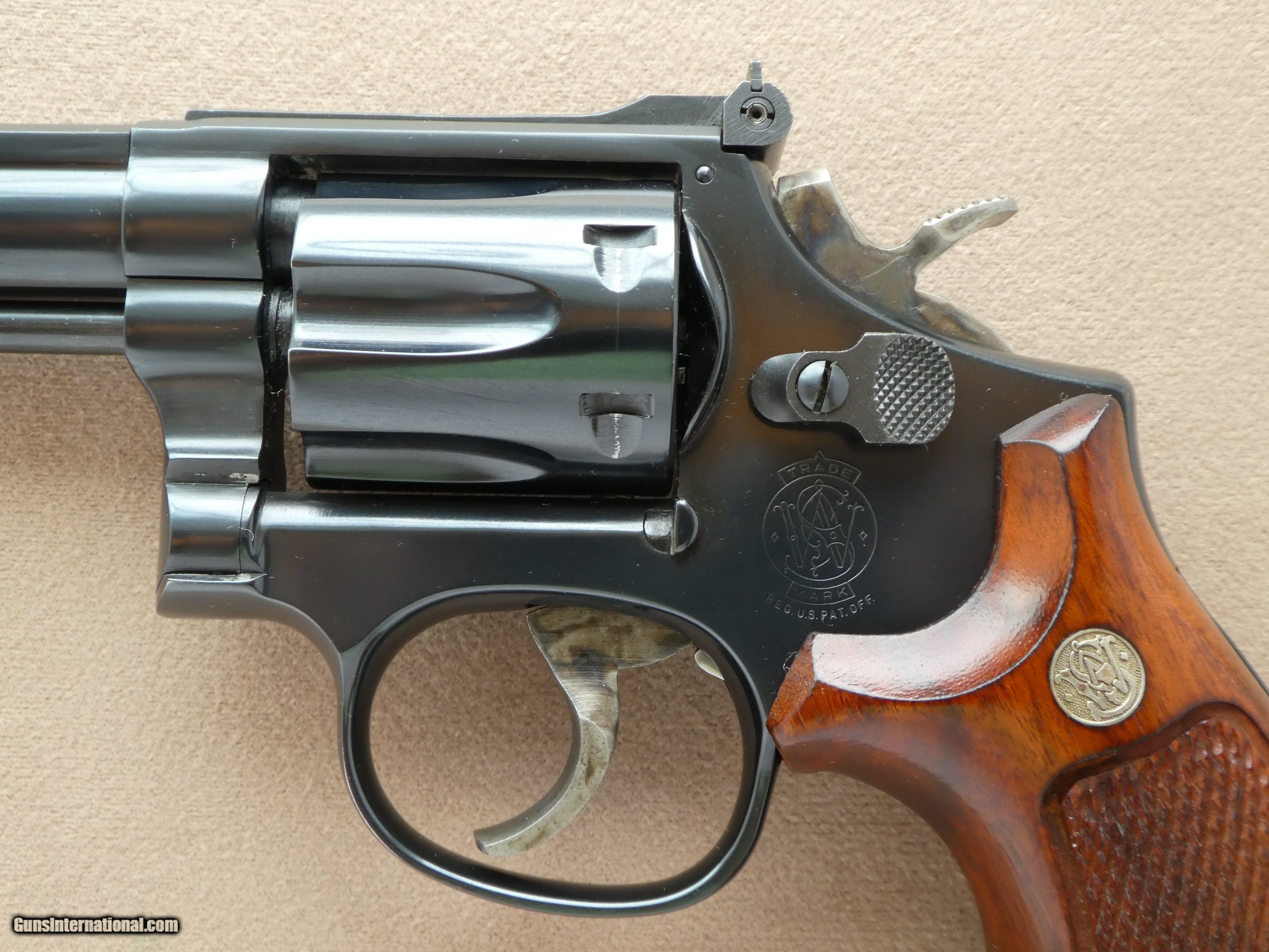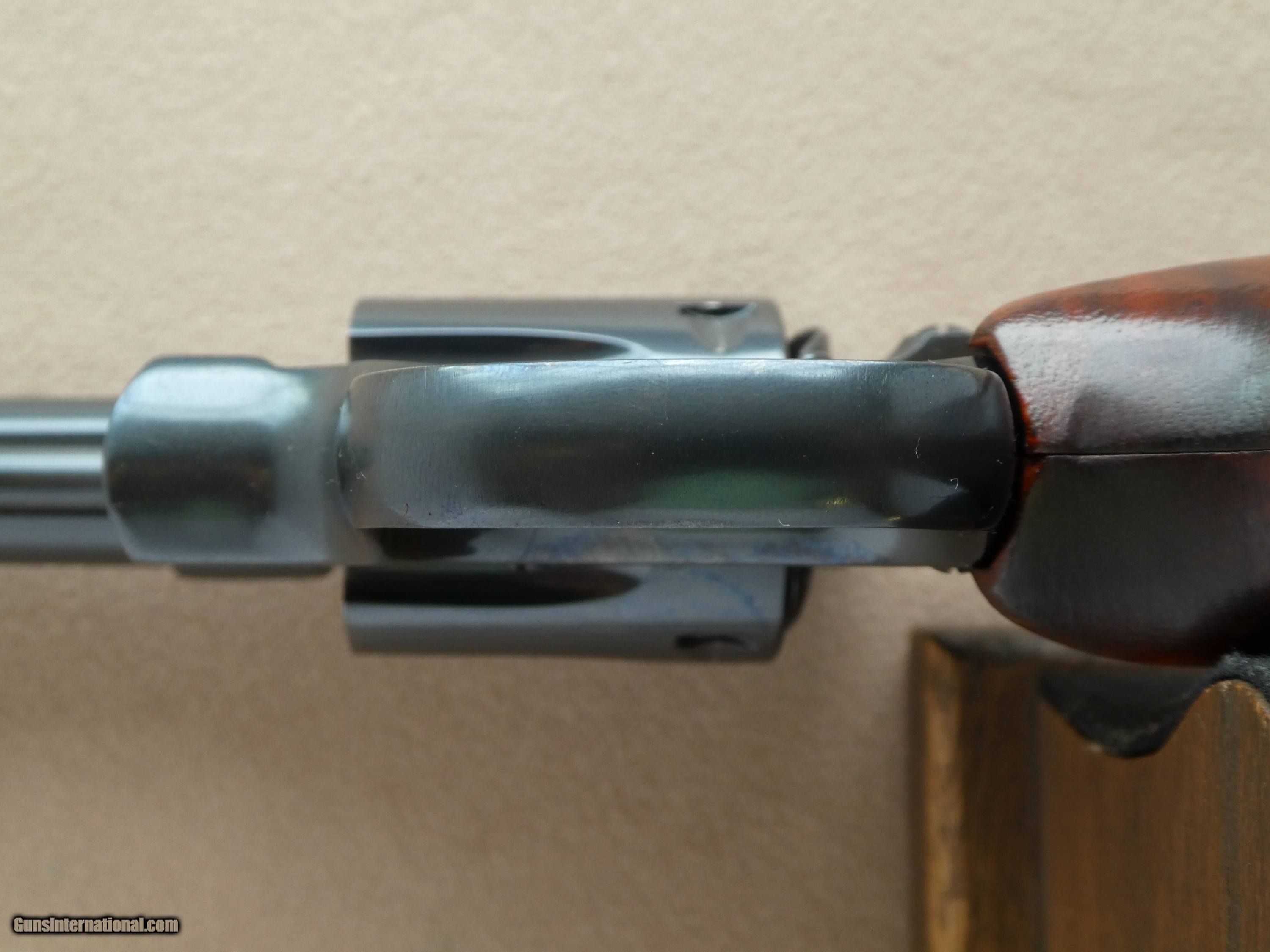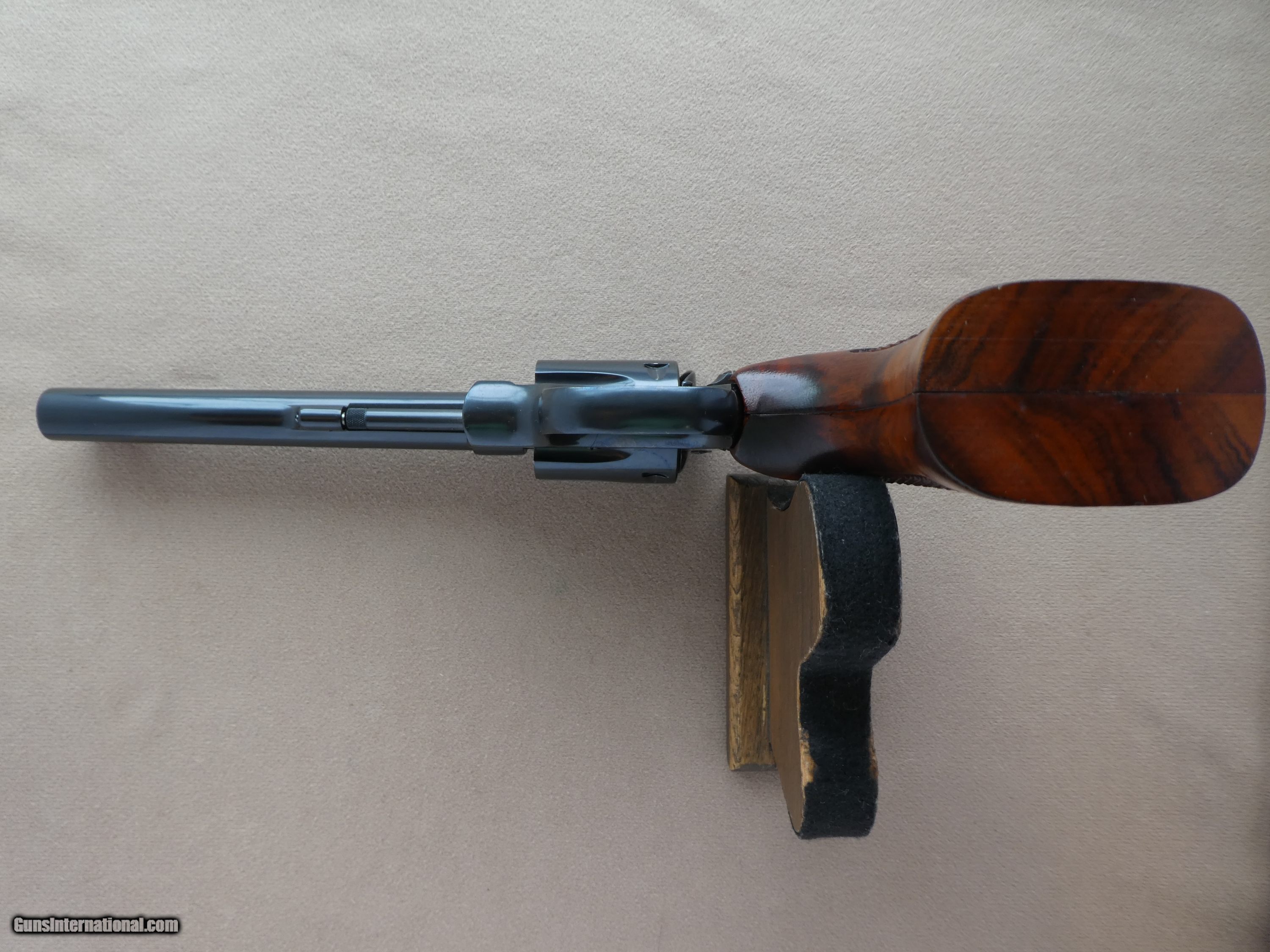 Description: This is a beautiful all-original Smith & Wesson Model 17-5 "K22 Masterpiece" revolver with a 6" inch barrel made in the late 1980's. The original factory blue finish rates 97% or better with only some tiny handling marks visible under close inspection and one small dark blue spot on the right side above the trigger (close up picture provided). The overall appearance of this S&W is excellent as you can see from the pictures. The bore is minty and bright in this S&W. The rifling still shows sharp lands and grooves and there is no pitting or erosion visible whatsoever. The cylinder bores are equally as clean and pristine. The factory iron sights are in excellent condition. Both the windage and elevation adjustments on the target-style rear sight work perfectly. This K22 Masterpiece has particularly attractive factory Cocobola target grips that are in excellent shape. They show lots of nice contrasting figure and grain, and are free from cracks, chips, or repairs. The original checkering is still clean and the grips are nicely fit to the gun and tight to the metal. The action on this Model 17-5 is smooth and crisp. It is perfectly "in time" and locks up tight. The trigger is exceptional in single or double action modes of operation. All of the controls on this Smith work 100% like the day it left the factory. These K22 Masterpieces are very collectible and nice examples seldom last long on the market. If you have been looking for a collector quality Model 17 for your collection, this 17-5 model would be a perfect choice. SOLD Manufacturer: Smith & Wesson Model: 17-5 Serial Number: AYU7865 Caliber Info: .22 Rimfire Bore: Minty Condition: Excellent Manufacture Date: Late 1980's |