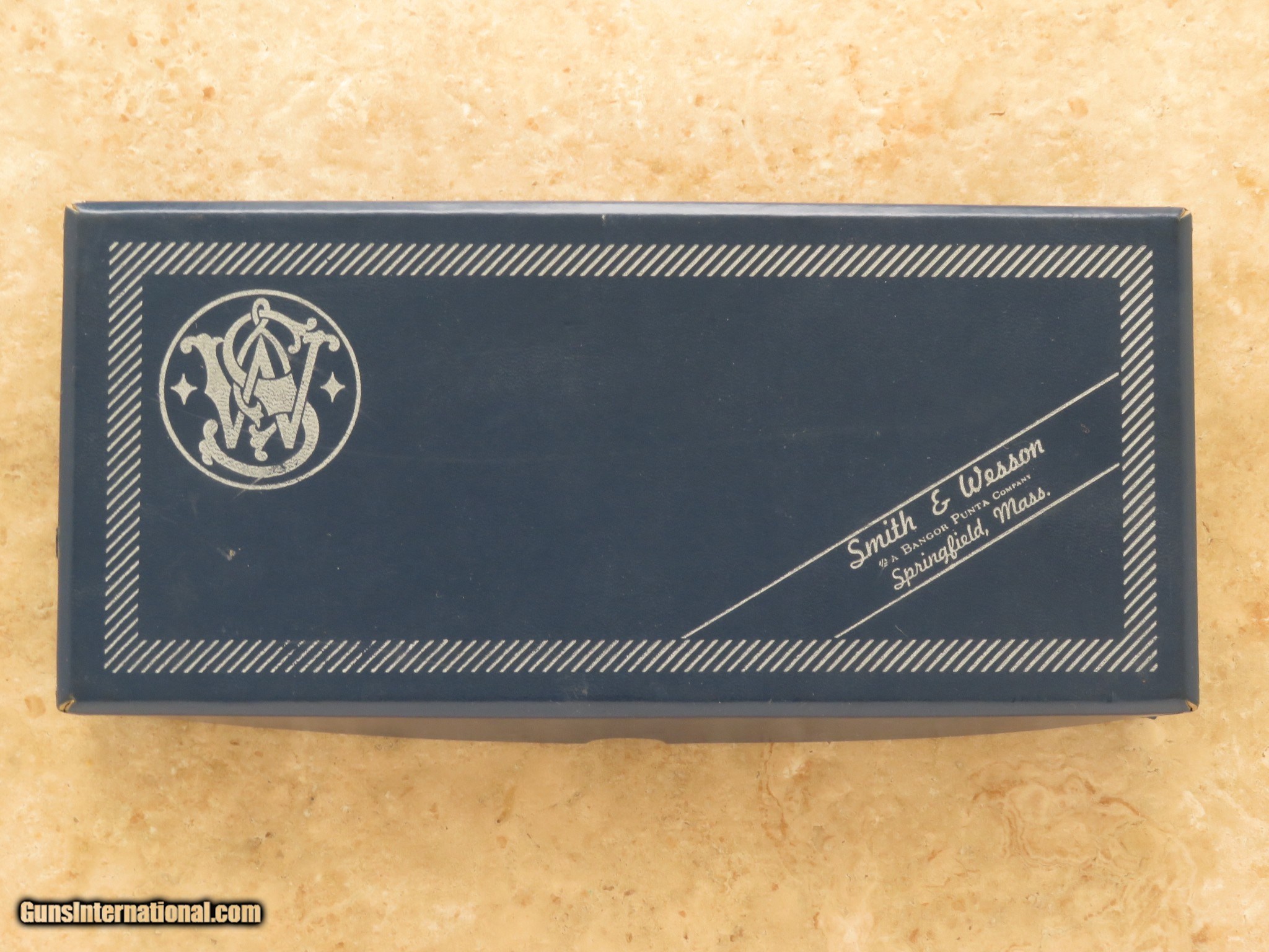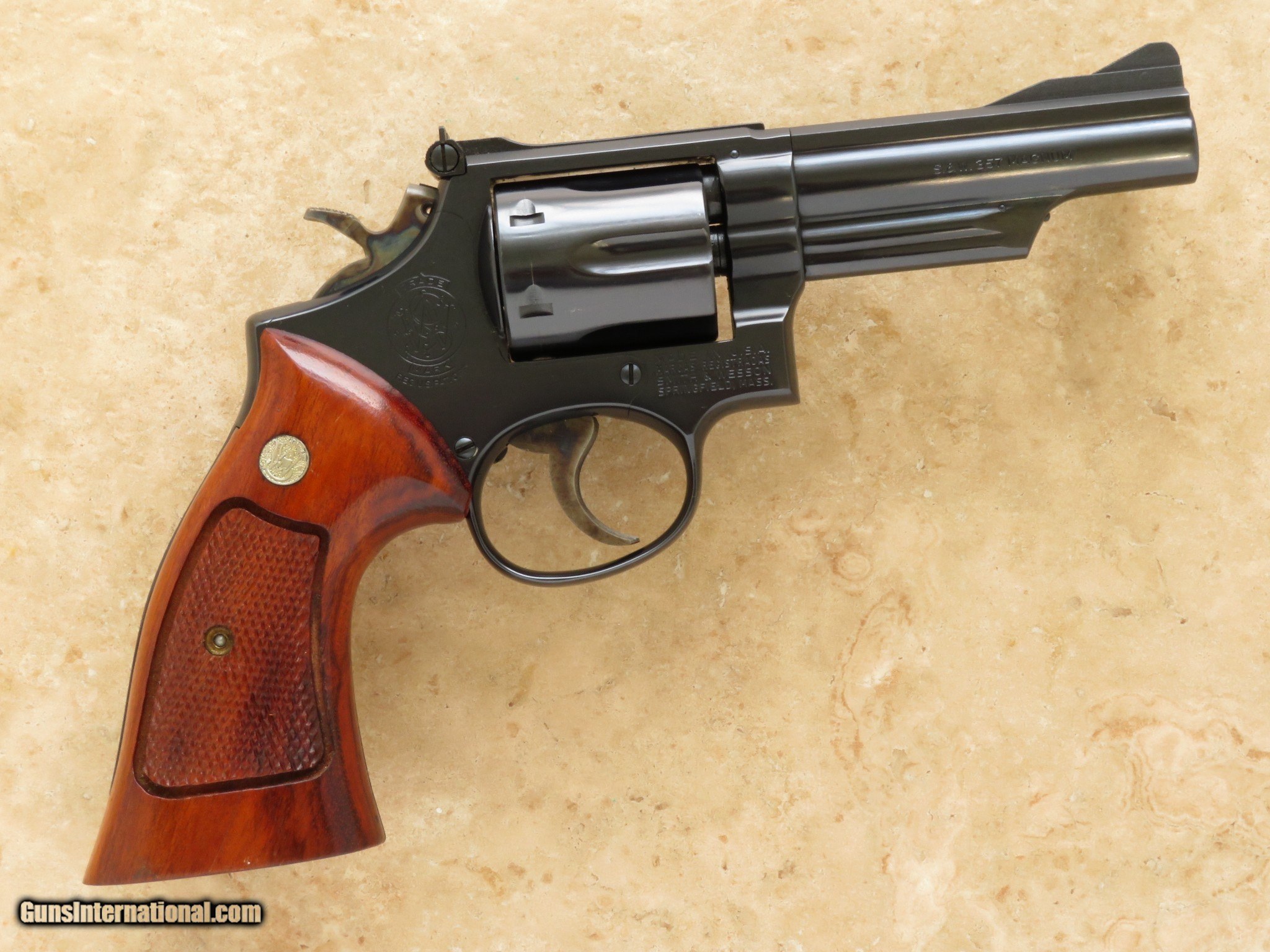 Description: S&W Model 19-3 Combat Magnum fitted with a 4 inch pinned barrel, serrated ramped front sight, adjustable rear sight, checkered Cocobolo target grips with S&W medallions, is blue finished, and chambered in .357 Magnum. This 1970's 6-shot double action S&W revolver is in like new condition, retaining 99%+ of its original blue finish, with only a drag line on a cylinder and a few very minor handling marks, mostly on the cylinder. The bore looks as new and the action functions the same, with a tight lock-up on all 6 chambers. The grips are also in very fine condition, with only a small chip at the top of the left grip and some minor handling marks. Comes with its original numbered to the gun box, all paper-work, and factory provided screw driver, cleaning rod, bore brush, and bore mop. A very nice example of its type. Most agree, the 4 inch Model 19 is the nicest handling double action .357 Magnum ever produced. PRICE: $950 We are Antique & Modern Firearms in Lexington, KY, dealer of fine firearms since 1974. PH. 859-276-1419 We Buy, Sell and Trade Firearms & Knives. Have a Individual Firearm, Firearms Collection, or Firearms Estate to sell, let us know, we can buy or consignment sell it for you. NOTE: No additional fee for a Credit Card payment. SOLD Handgun Caliber: .357 Magnum Manufacturer: Smith & Wesson Model: 19-3 |