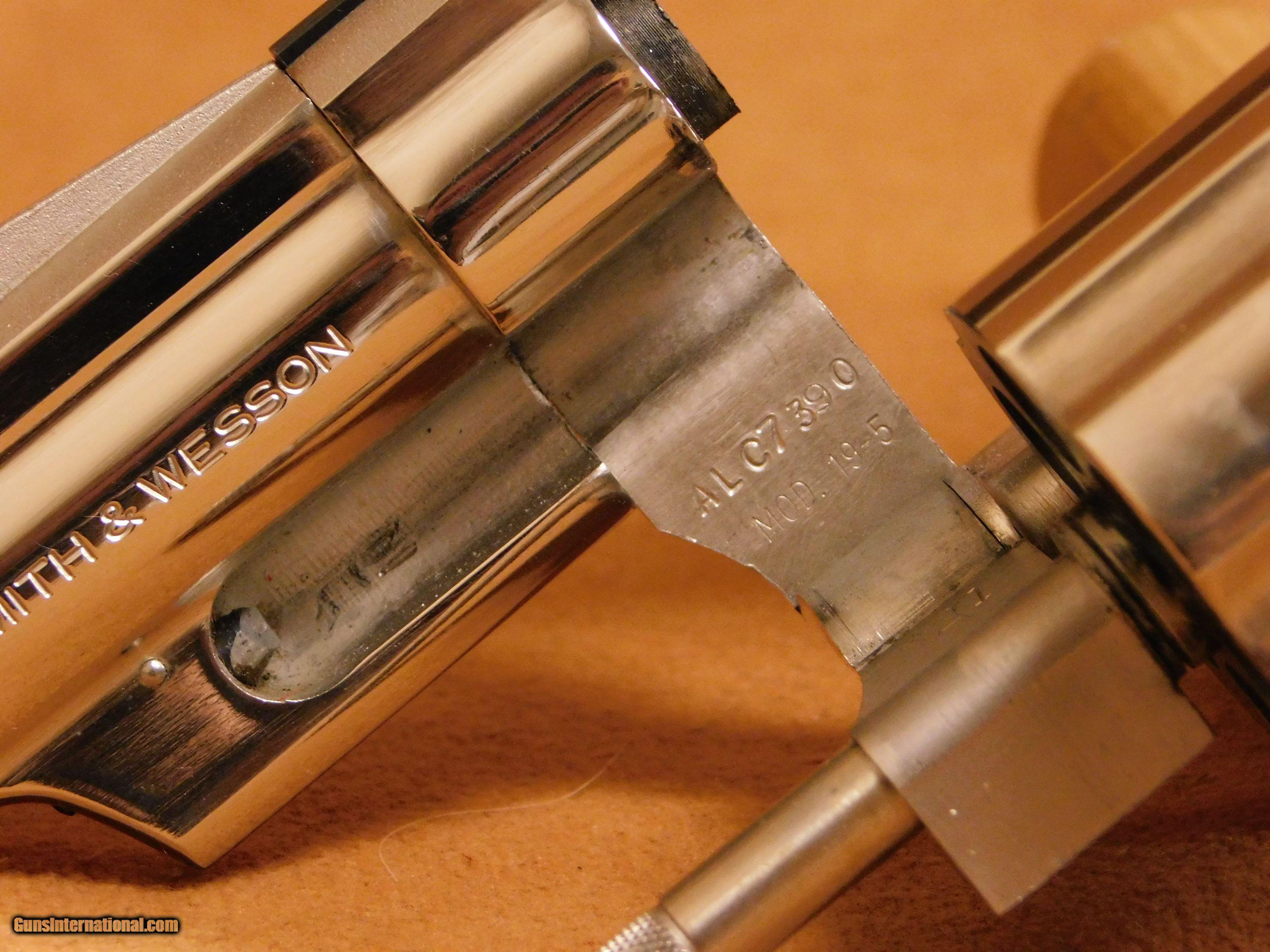 Description: This is a gently-used pre-lock Smith & Wesson model 19-5. It features a shiny nickel finish and a 2.5" barrel chambered in .357 Magnum. The gun has adjustable sights, a round butt, and S&W medallion wood grips. This revolver is easily in 97% condition. There is a very light drag line on the cylinder. The bore is excellent and the gun is mechanically sound. All items are also available for sale in our brick & mortar store and are subject to prior sale. Think long, think wrong. We are always buying unique and collectible single firearms and collections. Please give us a call at 859-278-8370 to discuss what you have available. We also offer free appraisals and guarantee TOP DOLLAR PAID for your unique and collectible firearms. Payment On firearms, we typically only accept credit cards or money orders/cashier's checks.