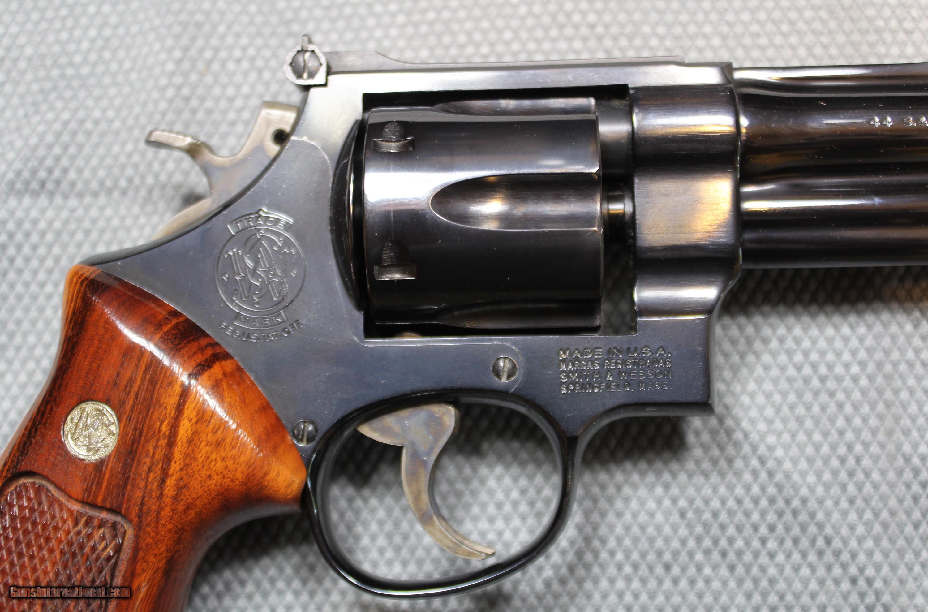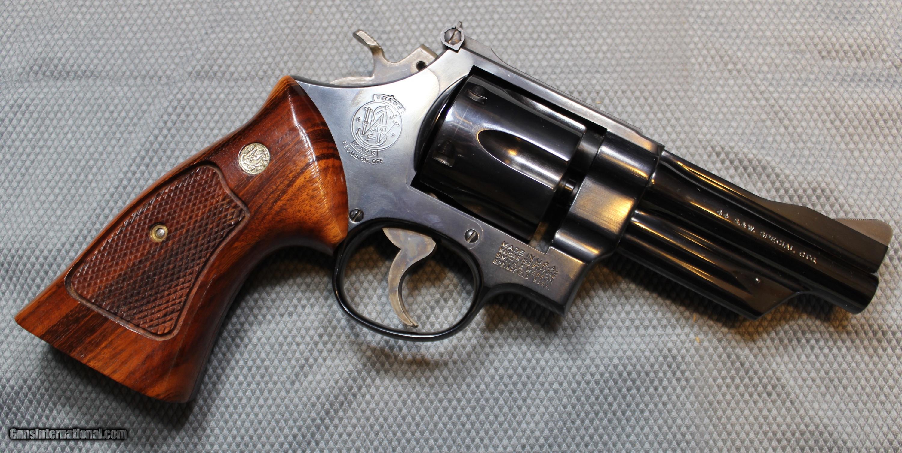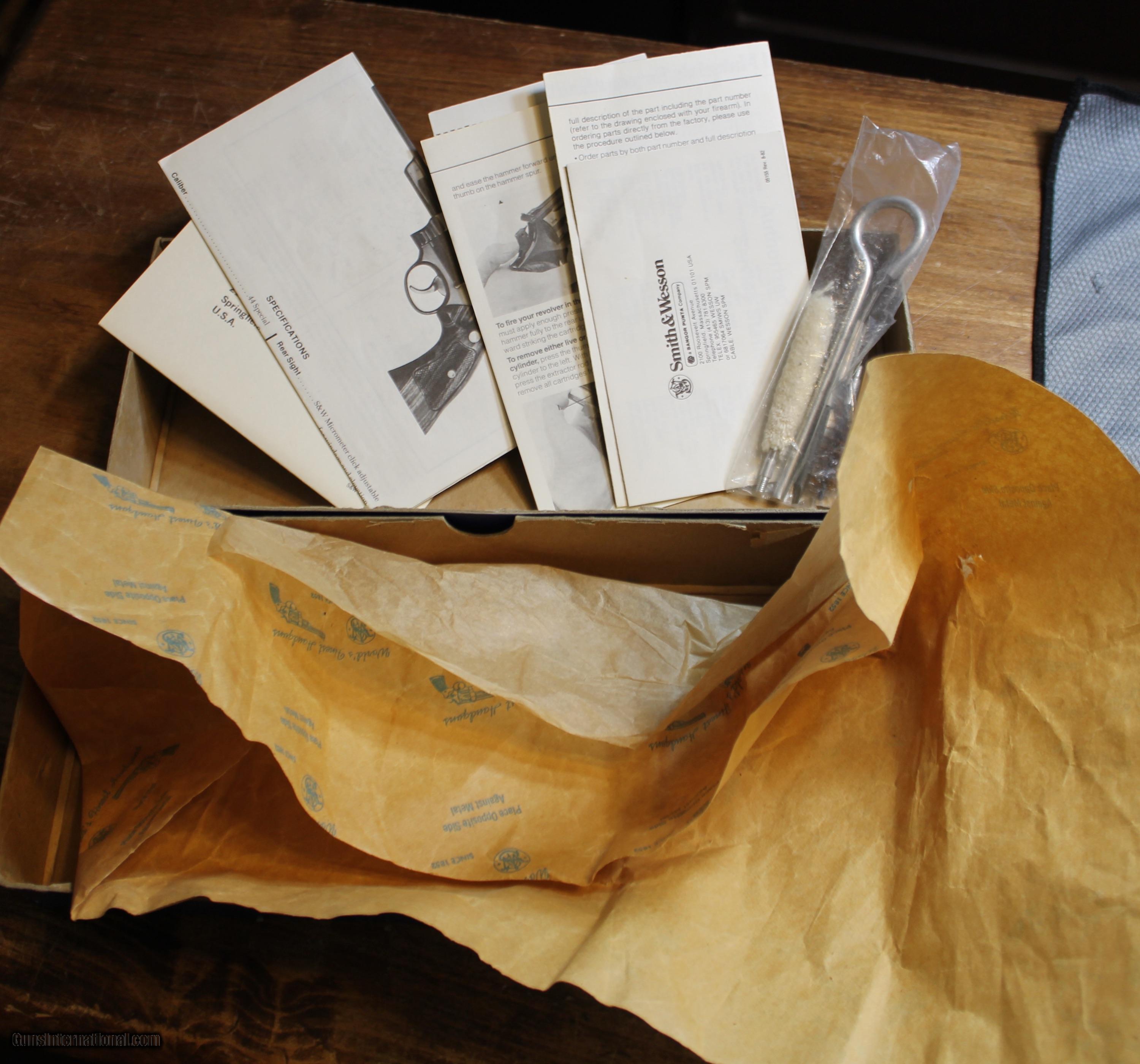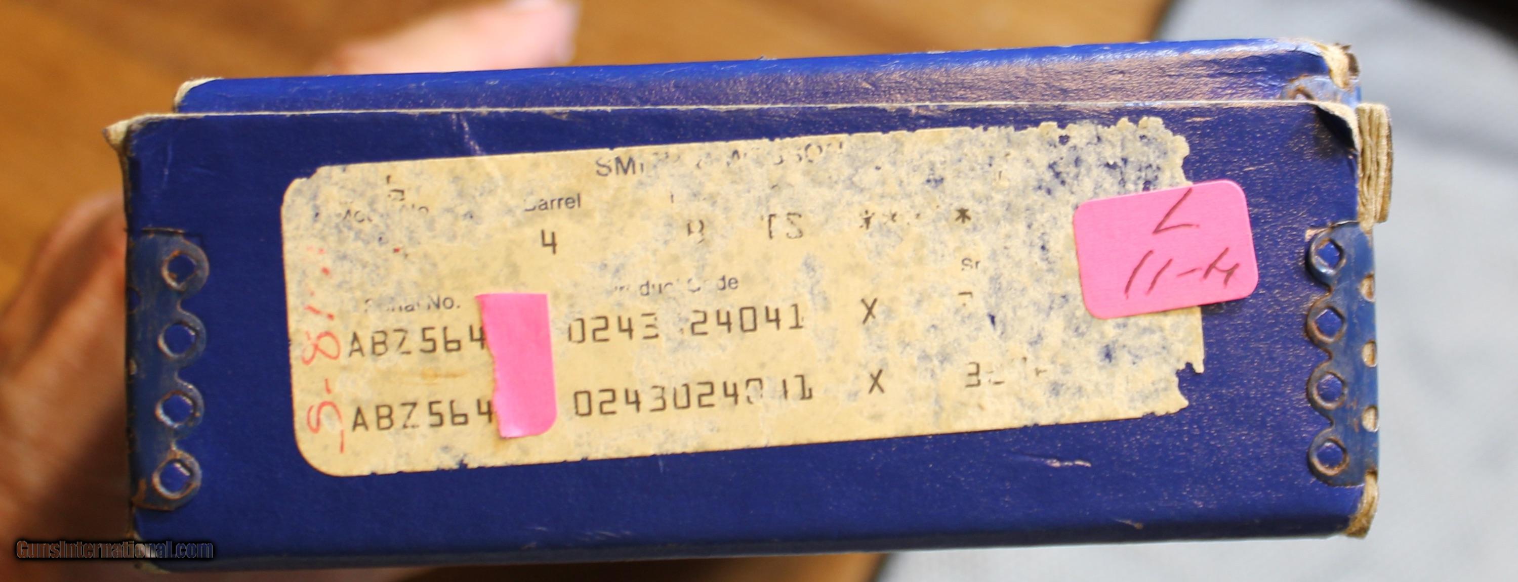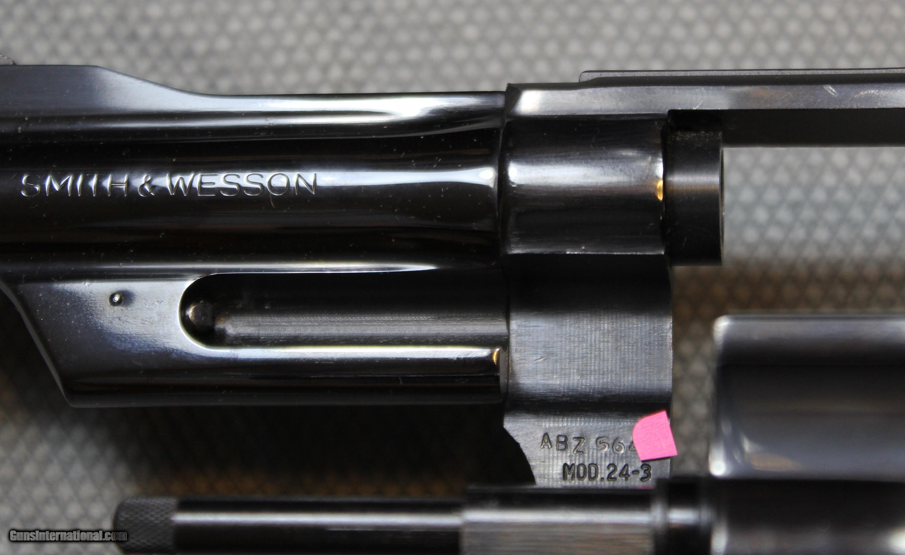 Smith & Wesson 24-3 44 Special 4" Blue Steel Revolver w box and paperwork  Description: Got a Smith & Wesson Model 24-3 4" 6 Shot 44 Special Blue Steel Revolver for sale. There is everything you see in the pictures with the gun. Meaning just the gun, box with serial number matching, paperwork, wrapping paper, and even the screw driver and bore brush and swab. Nothing more and nothing less. The Last number of the Serial Number is covered. The grips are factory and look original to the gun. This is a N-Frame Square Butt revolver. Look closely at the pictures as what you see in what you get. A close look at the condition this could be considered New Old Stock. This is as USED as this came from the estate of the an FFL/SOT Gun Smith, Gun Store that is out of business and is or was inventory. This is NOT a liquidation in any form, shape or manner. Just listing for the estate. There will be hundreds of other inventory and items listed over the next 5 to 7 years. Please check the pictures to check condition. You are welcome to ask questions and ask for additional pictures Please check our other listings for the items. NOTE: Look close at the pictures posted As is means AS IS. There is no refund You are welcome to check out our webpage or facebook page at P&T Partners Shipping is NOT included add $25 for USPS Priority mail shipping and full insurance Price is for Certified Funds meaning Certified Check or USPS Money Orders Credit or Plastic in any form, shape or manner add 3% NOTE: Credit by PHONE only I post on many of the firearms forums as PT-Partners. This is an FFL to FFL Transaction, as PT-Partners is a retail/FFL Dealer. For those that are local, there is no Face To Face. On Line means On Line General Information: FFL (Federal Firearms License) is required. Be prepared to obtain a copy of your local FFL holders license. For all in states where the local laws restrict this type of firearms, DO NOT BUY. If your local laws restrict the magazine capacity, again do not buy. I have no idea if this is a California Qualified Handgun, but I do ship to CA if you check other listings and something fits CA DOJ. If you are CA and you can PROVE, and your RECEIVING FFL contacts me, I will ship this to CA SOLD Manufacturer: Smith & Wesson S&W Model: 24-3 Serial Number: ABZ564X Caliber Info: 44 Special Condition: Used Finish: Blue Steel |