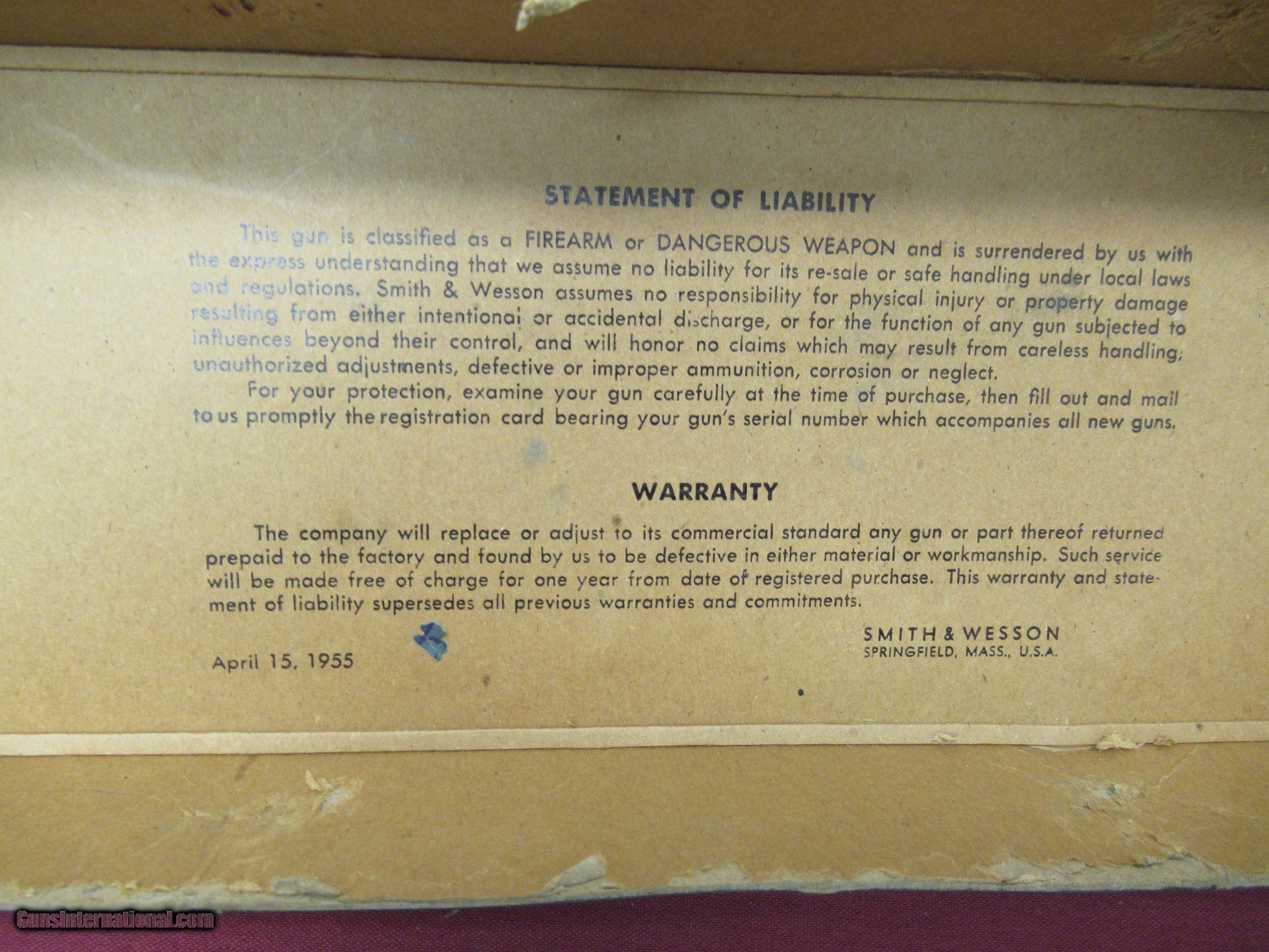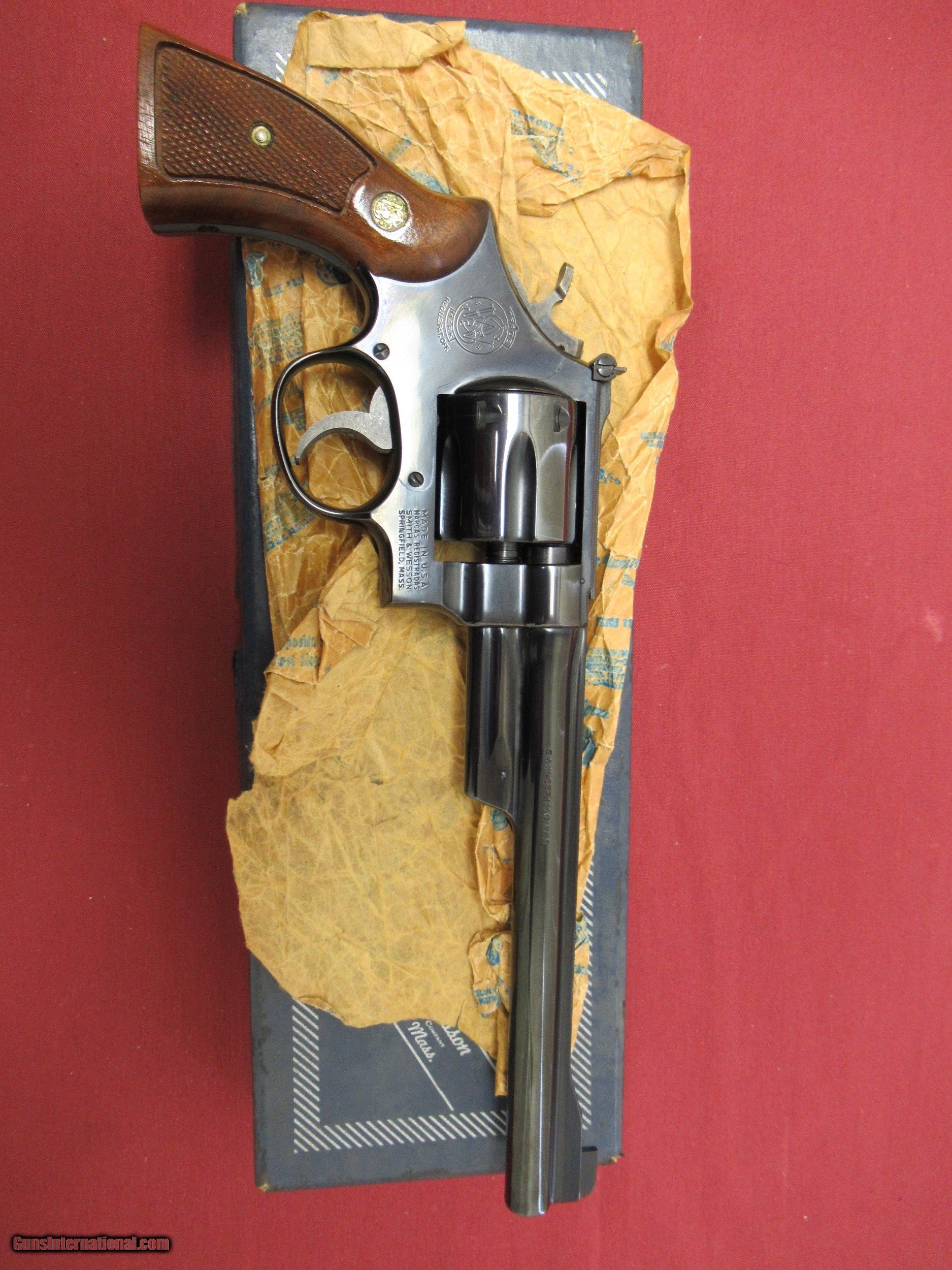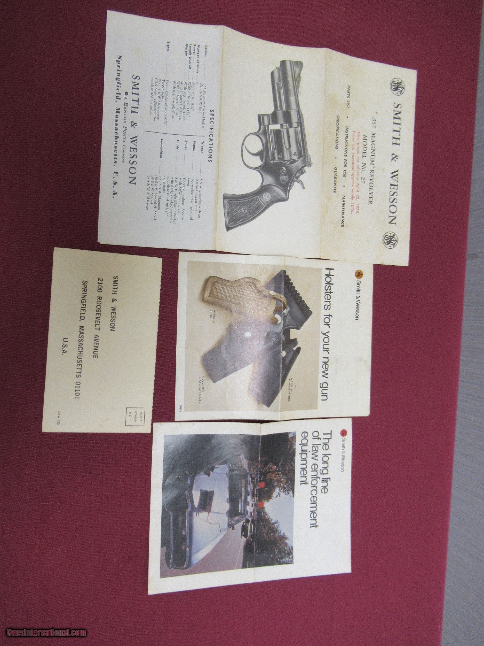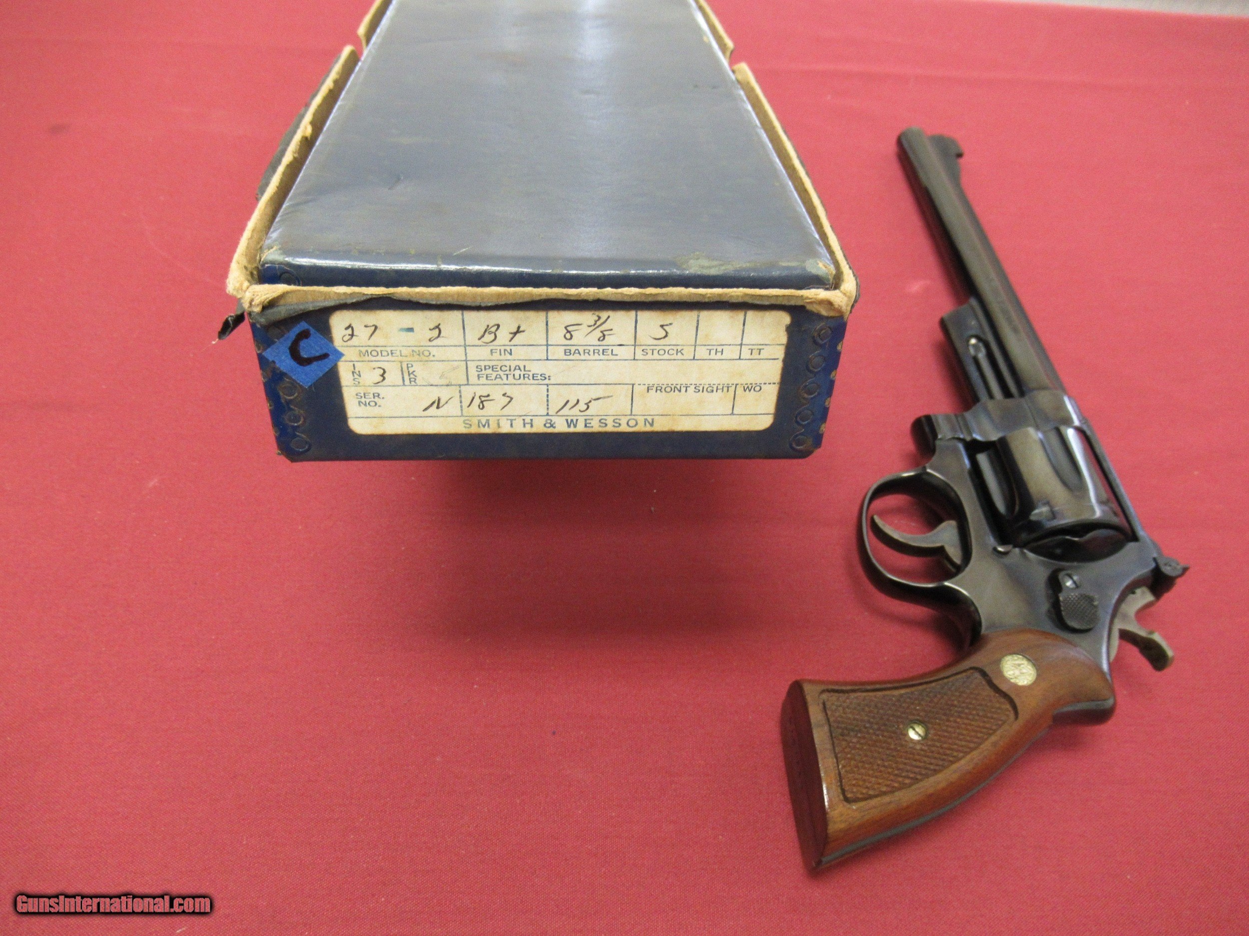 Description: Smith & Wesson Model 27-2 with 8&3/8" Barrel. Unfired in Original Box with all the papers. I believe this is a 1964 Issue. Two very minor marks on the left side of frame just below the Cylinder Latch (pictured if you can see them). Not through the blue. Box is a little dog-eared but still the Original. A Nice Find for the Smith Collector. Priced to sell. SOLD Curio/Relic: Yes |