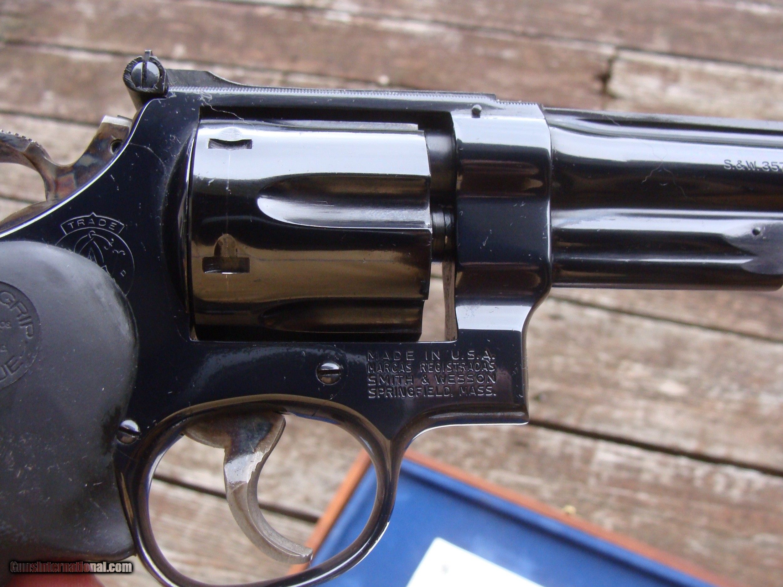 Description: Pinned and Recessed. Beautifully case colored target trigger and hammer, thhis fine gun is in exceptional conditon. From the late 60's or early 70's (dash 2) It comes in the correct mahagony presentation case, with manual and tools. The blue felt in the box needs some repair but otherwise cond. of gun and box are excellent or better. Faint drag mark on cyl but blue is approx perfect with no handling marks worth mention and no holster wear. Comes with Hogue grips. Originals are avail on ebay and other sources. Shpping is $ 35.00 PLEASE READ EVERYTHING BELOW IN BOLD: IF IT DOES NOT SAY NEXT TO THE PRICE..."SALE PENDING OR UNDER DEPOSIT"...IT IS AVAILABLE. WE DO NOT REPLY TO INQUIRIES THAT SAY "INTERESTED IN THIS GUN" OR "IS IT AVAILABLE" IF YOU WOULD LIKE TO BUY THIS OR ANY OF OUR GUNS WE SUGGEST YOU PHONE US; WE ARE OFTEN AVAIALABLE LONG HOURS. IF YOU ARE INTERSTED IN A GUN THAT IS UNDER DEPOSIT AND WOULD LIKE TO BE NOTIFIED IF A SIMILAR GUN COMES IN DROP US A LINE AND WE WILL MAKE EFFORTS TO CONTACT YOU WHEN ONE DOES COME IN. WE HAVE OVER 2000 SALES ON ALL SITES WITH AN A+ RATING ON ALL WE ALSO KEEP AN INVENTORY OF OLDER PERIOD CORRECT SCOPES; CALL WITH NEEDS WE MOSTLY PICK VERY CLEAN AND LIGHLTY USED GUNS. WE ARE HAPPY TO TAKE CONSIGNMENT GUNS AND COLLECTIONS OR WILL BUY YOURS OUTRIGHT. WE SOMETIMES ARE EMPLOYED FOR ESTATE PURPOSES AND VALUATIONS. CT RESIDENTS MUST CONTACT US TO UNDERSTAND OUR IN STATE TRANSFER POLICIES. PAYMENT USPS MONEY ORDER ONLY AT THIS TIME. ( WE CAN TAKE A DEPOSIT WITH A CARD BUT THE GUN MUST BE PAID WITH A USPS MONEY ORDER) IT IS THE BUYERS RESPONSIBILITY TO GET US A COPY OF YOUR RECEIVING FFL'S LIC AND A COPY OF YOUR PHOTO ID BEFORE THE GUN SHIPS YOU MUST CALL YOUR FFL.WE DO NOT CALL FOR YOU. LAYAWAY PURCHASES NOT COMPLETED OR ANY RETURNED ITEM UNLESS NOT AS DESCRIBED OR DAMAGED ARE SUBJECT TO A 10% RELISTING/RESTOCKING FEE AND MUST BE RETURNED WITH NO NEW MARKS OR SCRATCHES, SENT BACK INSURED, PRIORITY SIGNATURE REQUIRED. ALL INFORMATION CONTAINED HEREIN IS BELIEVED TO BE ACCURATE BUT IS NOT GUARANTEED. ANY OLDER OR USED GUN SHOULD BE EXAMINED BY A GUNSMITH OR COMPETENT EXPERT PRIOR TO USE) SOLD |