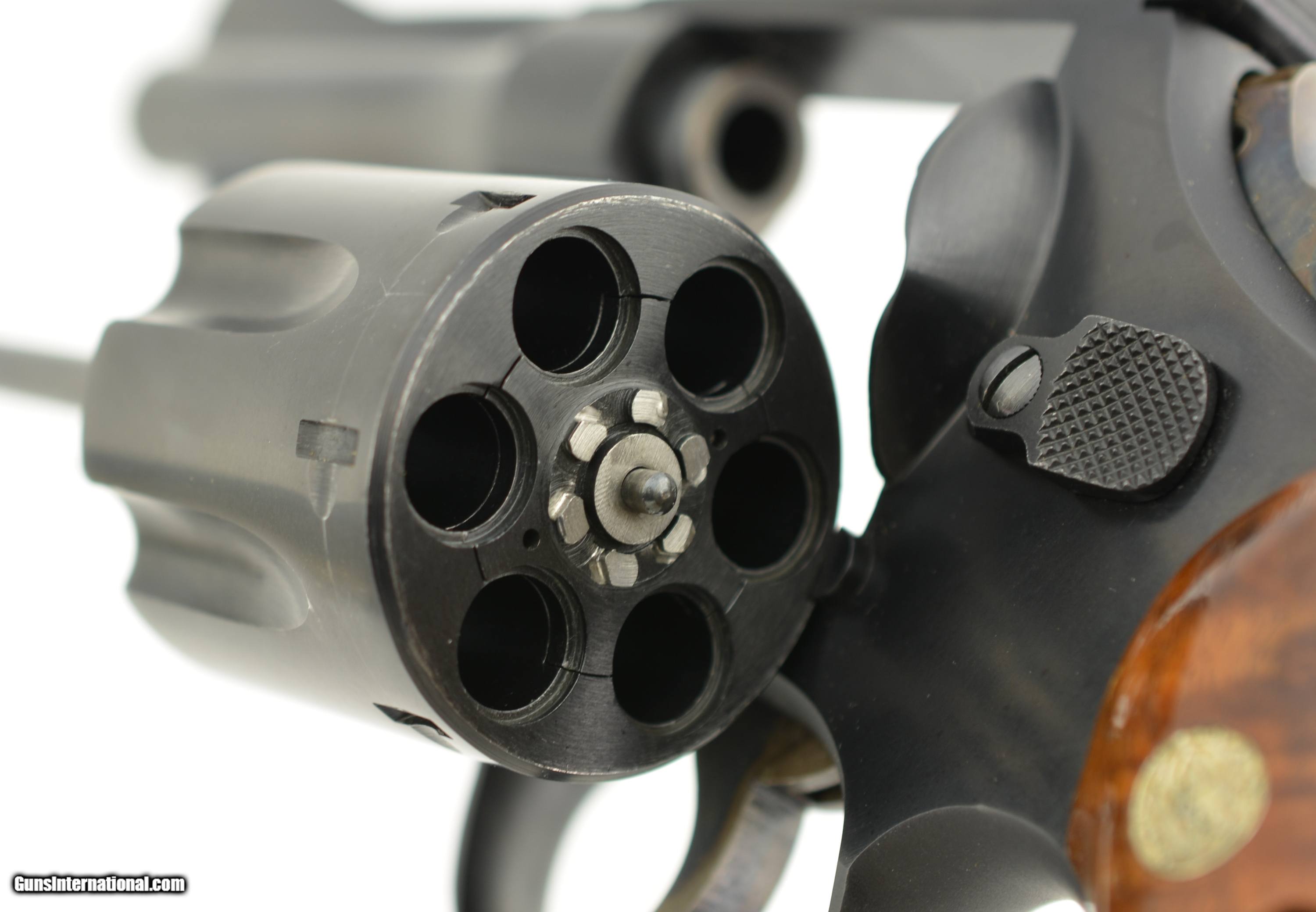 Description: Serial #N156771, .357 Magnum, 4" barrel with an excellent, bright bore. This is a handsome 1970s N-Frame revolver that retains 98-99% of the original blue, with just a small spot of silvering and faint turn-ring on the cylinder. The hammer and trigger retain a commensurate amount of the original color case-hardening, and the checkered S&W medallion grips are likewise in excellent shape with only traces of flattening to the points. The revolver is housed in its original blue, two-piece Bangor Punta box with cleaning rod, brush, bore mop, and screwdriver. This is a splendid pinned and recessed S&W, and is in excellent condition overall. FFL SOLD Manufacturer: S&W Model: 28 Serial Number: N156771 Caliber Info: .357 Mag Gauge Info: .357 Mag |