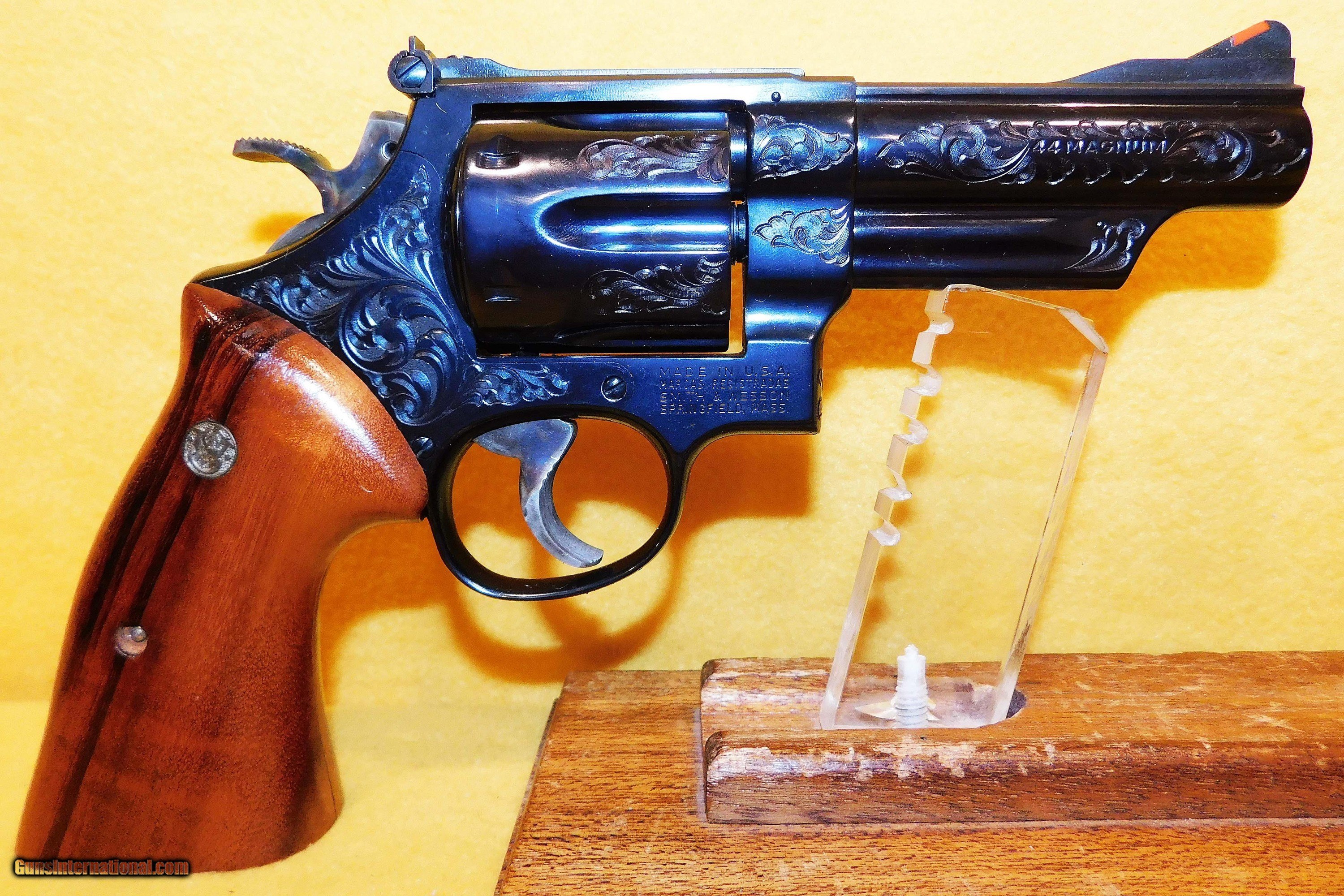Description: S&W 29-2 IN .44 MAGNUM CAL., WITH 4" BARREL. COLOR BLUE. CONDITION 100% LIKE NEW UNFIRED. SERIAL NUMBER N723881. S&W MODEL 29-2 IN .44 MAGNUM CALIBER, S&W FACTORY ENGRAVED, COMES WITH WOOD DISPLAY CASE WITH DEGENERATING BLUE FLOCKING ON THE INSIDE OF CASE, 100% LIKE NEW UNFIRED OVERALL CONDITION, OUR STOCK # D2385 SOLD |