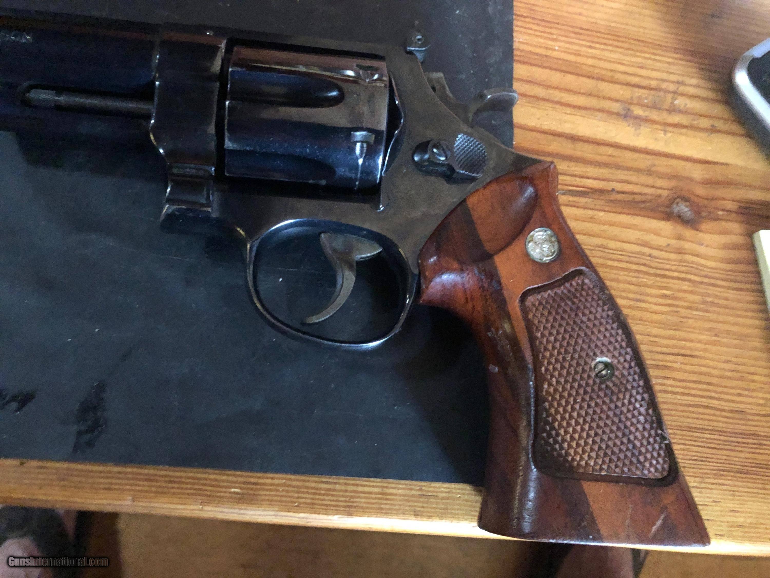 Description: Blue S&W model 29 -2 ,trigger job. Pinned barrel. All accoutrements that came with the gun. no sales to CA,OR,WA.NY,NJ,ILL SOLD Handgun Caliber: .44 Remington Magnum Manufacturer: S&W Model: 29 Serial Number: N42971x Condition: Exc Metal Condition: Exc Wood Condition: Exc Bore Condition: Exc Sights: Adjustable Manufacture Date: 70’s Case: Original box with accessories Item Location: StPete |
