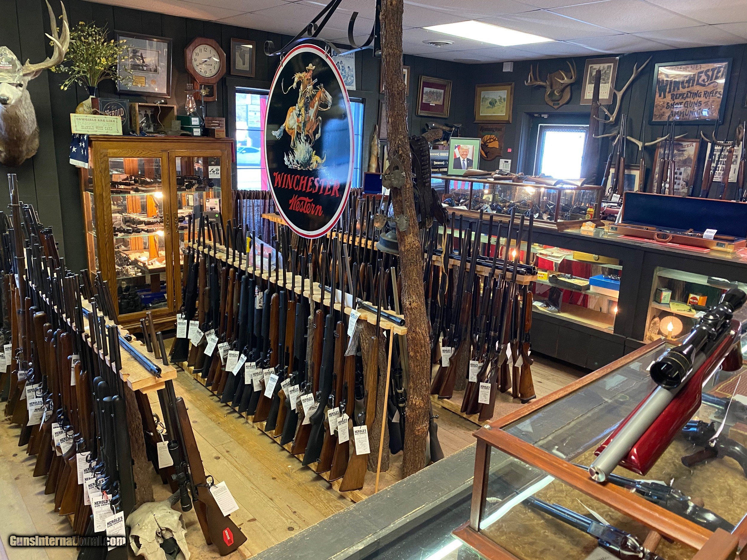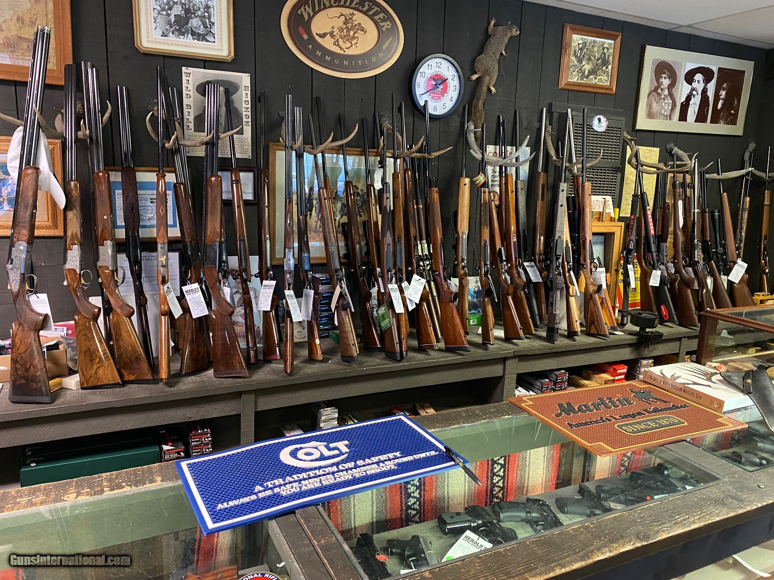 About Us: We are an “Old School” gun store with a vintage Western style. We do carry various modern pistols, revolvers and long guns. However, our specialty is vintage firearms including bolt action, lever action and semi automatic rifles. For example, we usually have at least two or three M-1 Garand rifles at any given moment. Other times we may have one or two Springfield 1903 rifles. Also in stock are a few dozen lever action rifles available in different calibers & barrel lengths. Lastly, we have a wide variety of Colt Single Action Army revolvers in different calibers and barrel lengths. (NOTE: we try & remove items from Guns International ASAP if they are sold through our retail location, but there may be a slight delay in doing so)