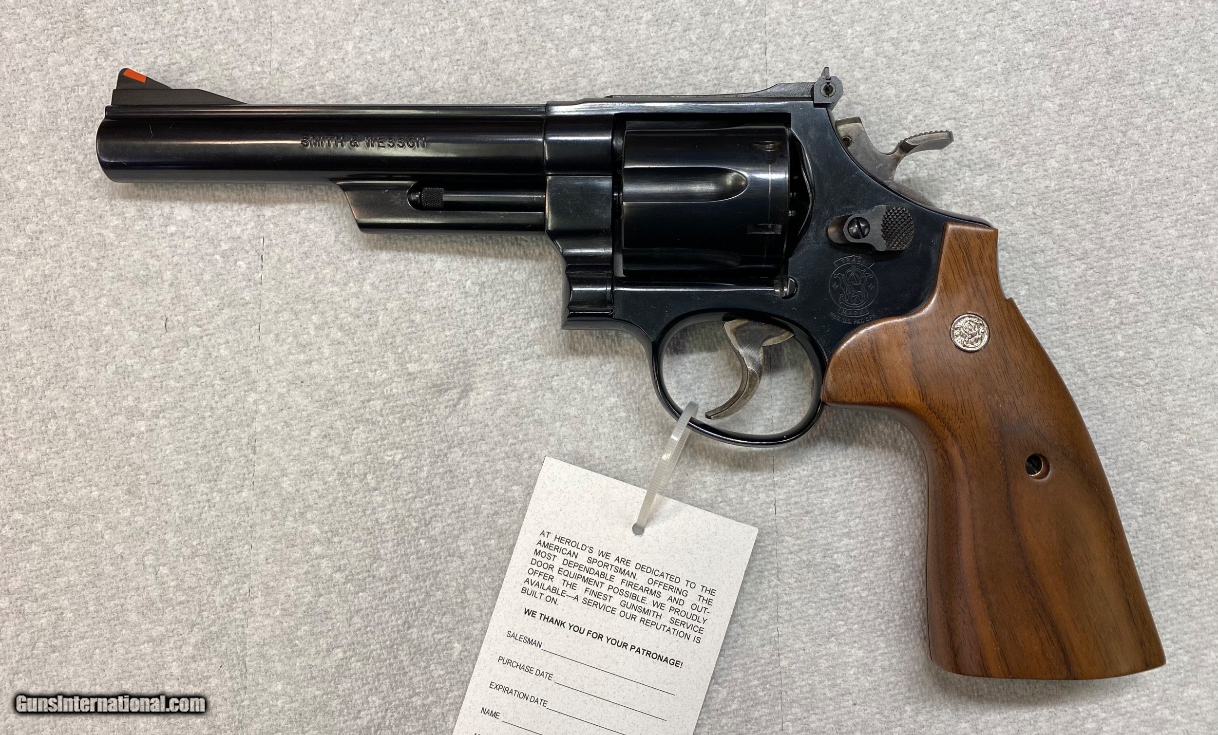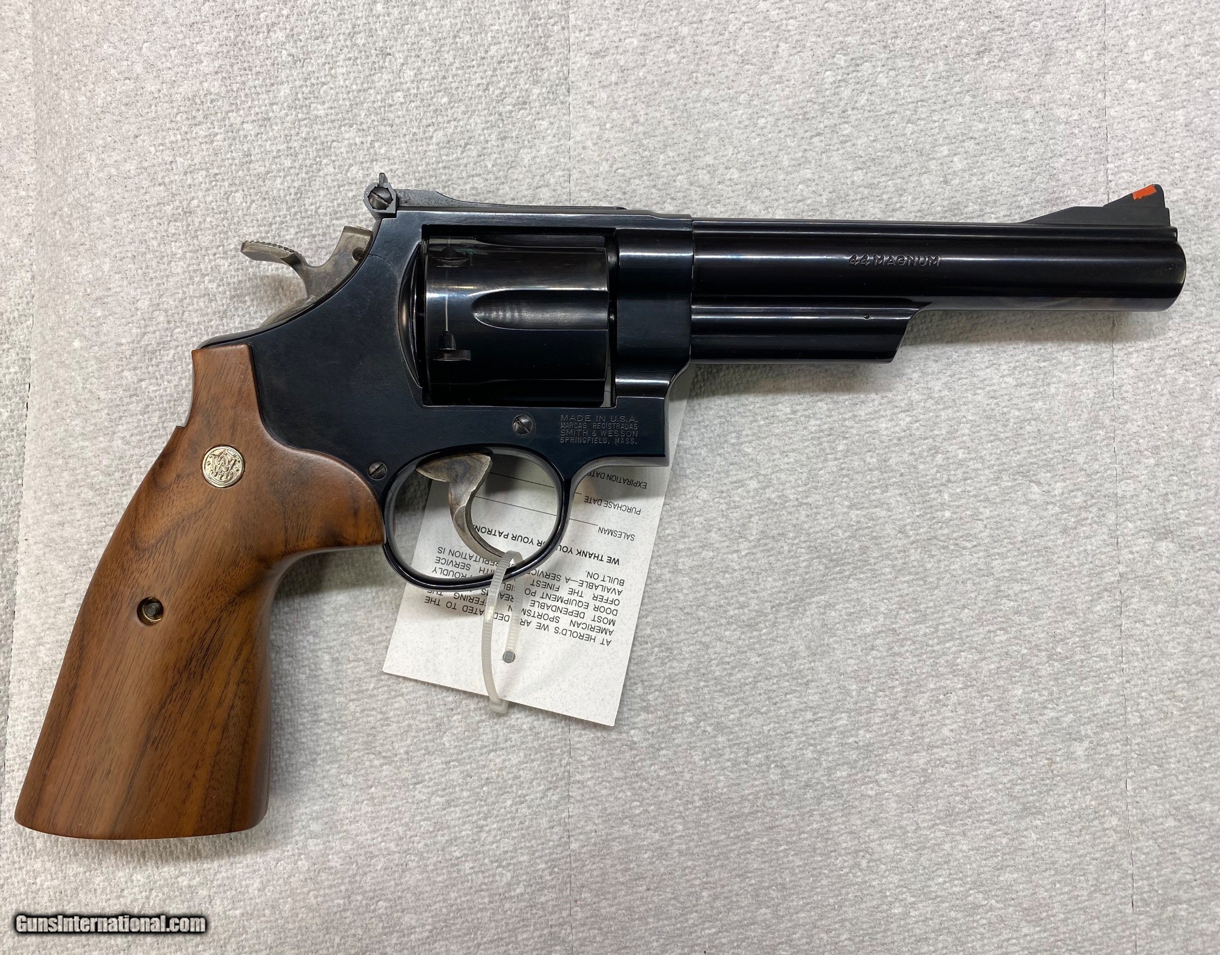 Description: Today we are offering this Smith & Wesson Model 29 in .44 Magnum with a 6 inch barrel & a square butt. VG/EXC condition, please see pics for more details. (We got an email with a request to photograph this item with the grips off, that will be posted in the next day or two) We reserve the right to sell this item at our retail location until an offer is placed on Guns International. (Price is $1095 + $30 shipping) We accept major credit cards with a 4% surcharge. Our business hours are Tuesday through Saturday, 9 AM to 5 PM. Closed on Sunday and Monday. We are a brick and mortar store in business at the same location for over two decades. If you're in the Waynesboro, Pa. area, stop on by and see our wide selection of classic and modern firearms at George Herold's Gun Shoppe. We look forward to seeing you! SOLD Handgun Caliber: .44 Remington Magnum Manufacturer: Smith & Wesson Model: 29 Serial Number: BRB5814 Barrel Length: 6” Condition: VG/EXC |