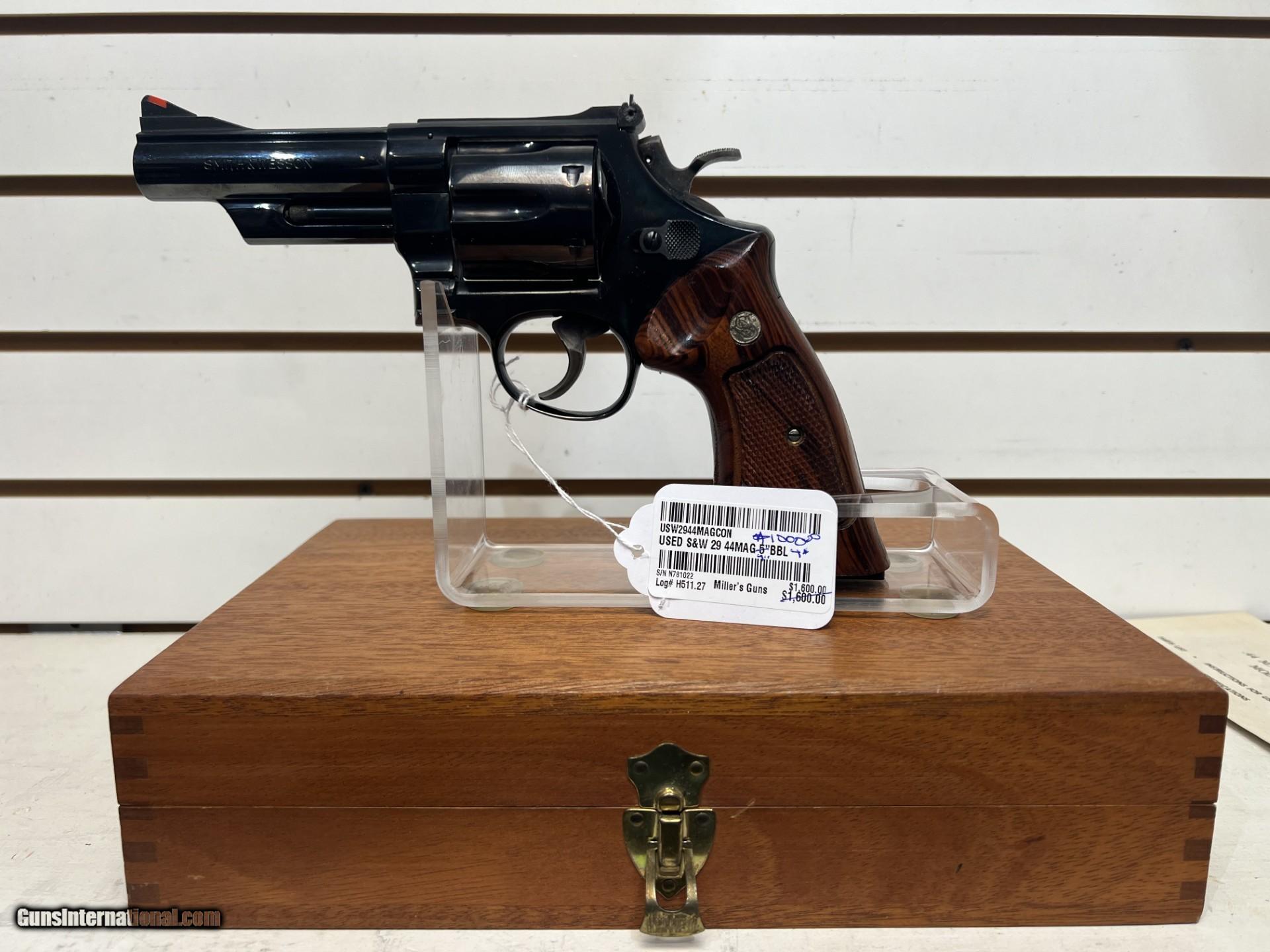 Description: Pre Owned Model 29 Caliber 44 mag Wood Presentation box w/ factory cleaning Kit SOLD Handgun Caliber: .44 Remington Magnum Manufacturer: Smith & Wesson Model: 29 Serial Number: N781022 Barrel Length: 5": Condition: VERY GOOD Metal Condition: VERY GOOD Wood Condition: VERY GOOD Bore Condition: VERY GOOD |