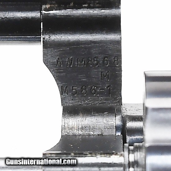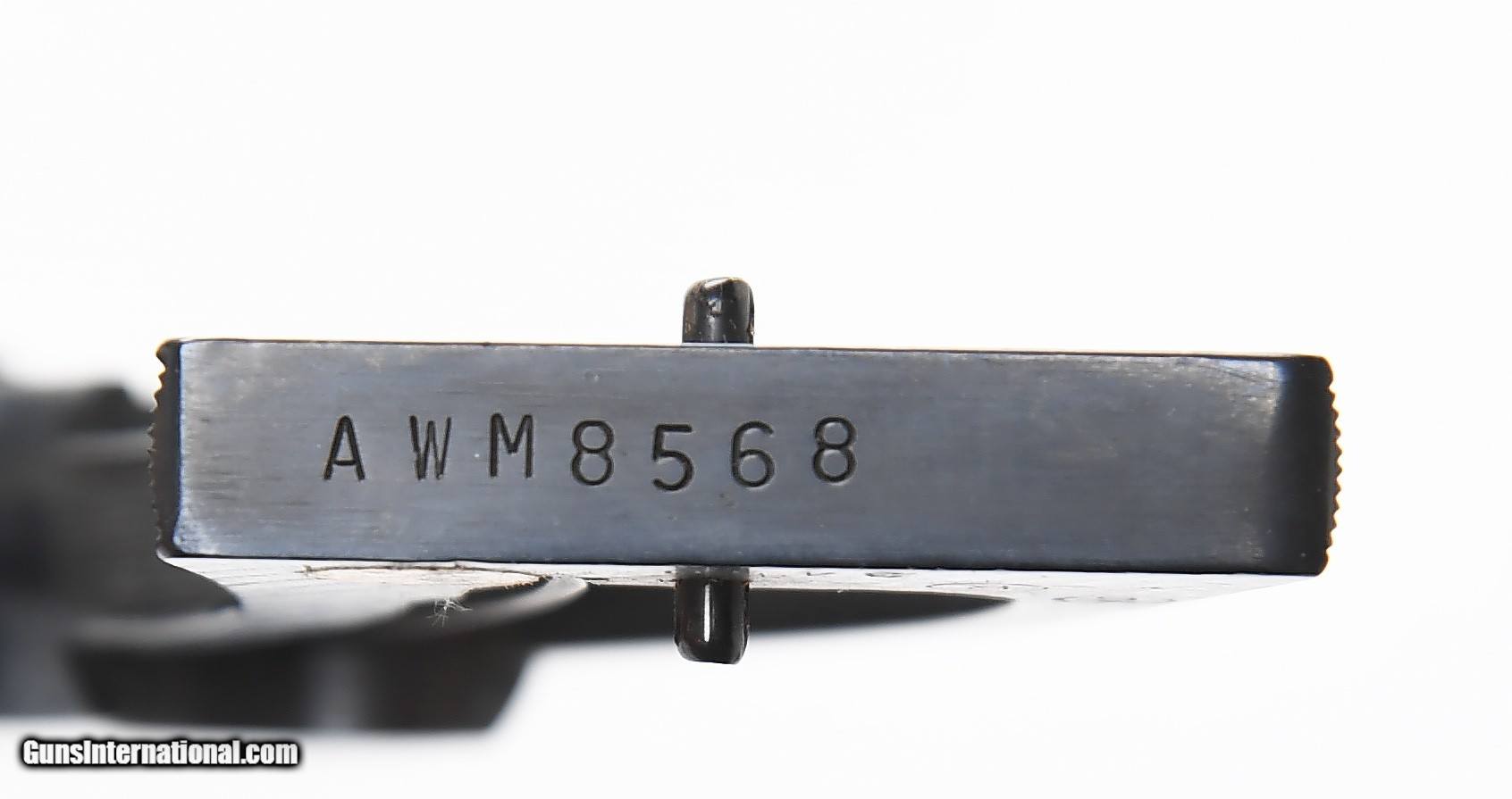 Description: SALE PENDING S&W model 586-1 .357 magnum revolver. Made in 1987 this 4” blue model remains in 98%+ original condition with a very small spot of wear on both the right and left side of the muzzle. It has a white outline/red ramp front target sight and smooth combat trigger with square butt combat grips. Very fine and desirable 586-1. $750.00 SN: AWM8568 SOLD |