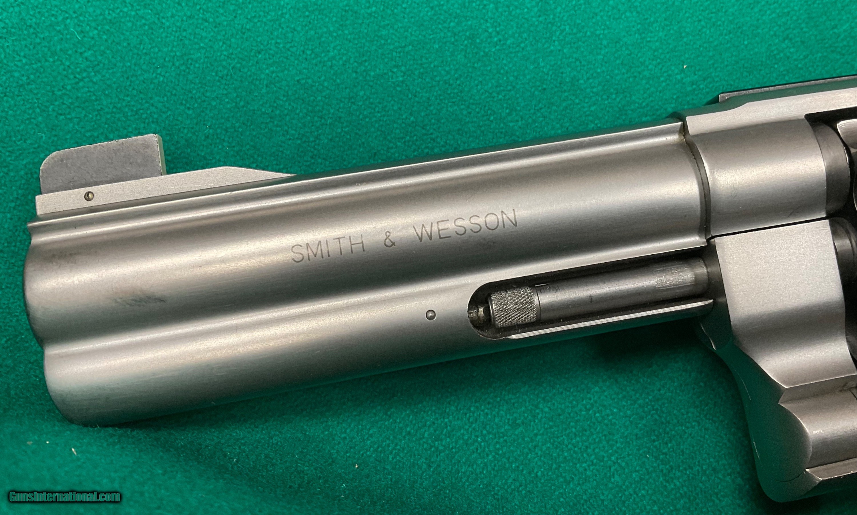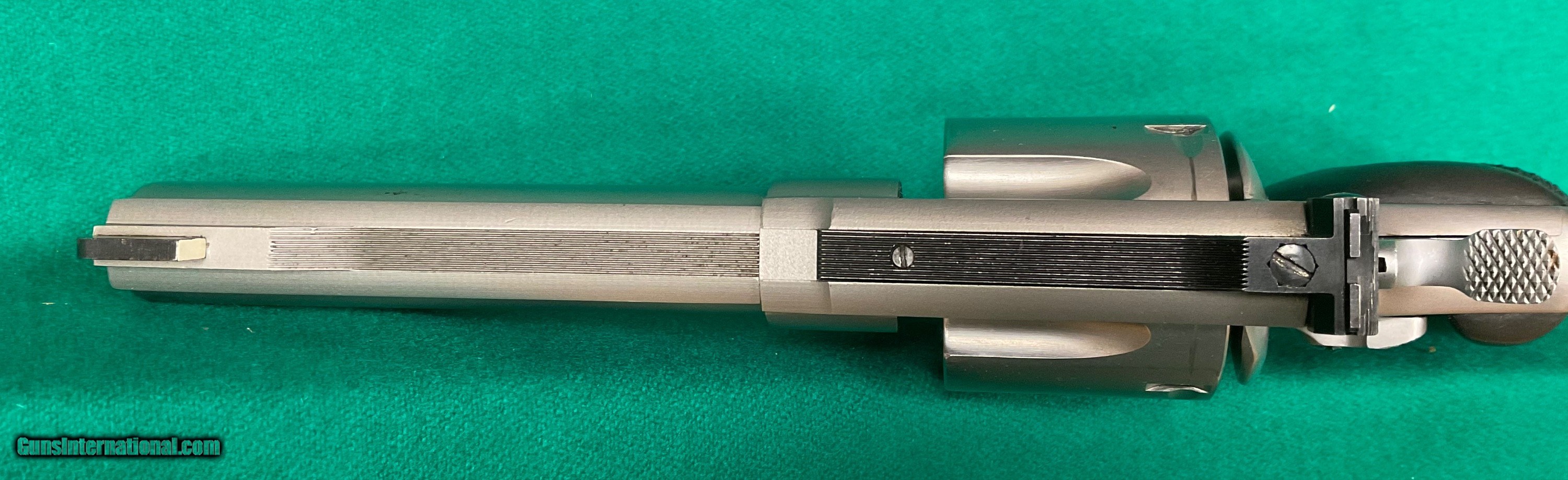 Description: Smith & Wesson 625-3, stainless 45 ACP revolver in excellent condition with 5 inch barrel. In unmatched box with full moon clips. $1198 plus $35 insured shipping. No credit cards and no trades. 5 month layaway available. SOLD |