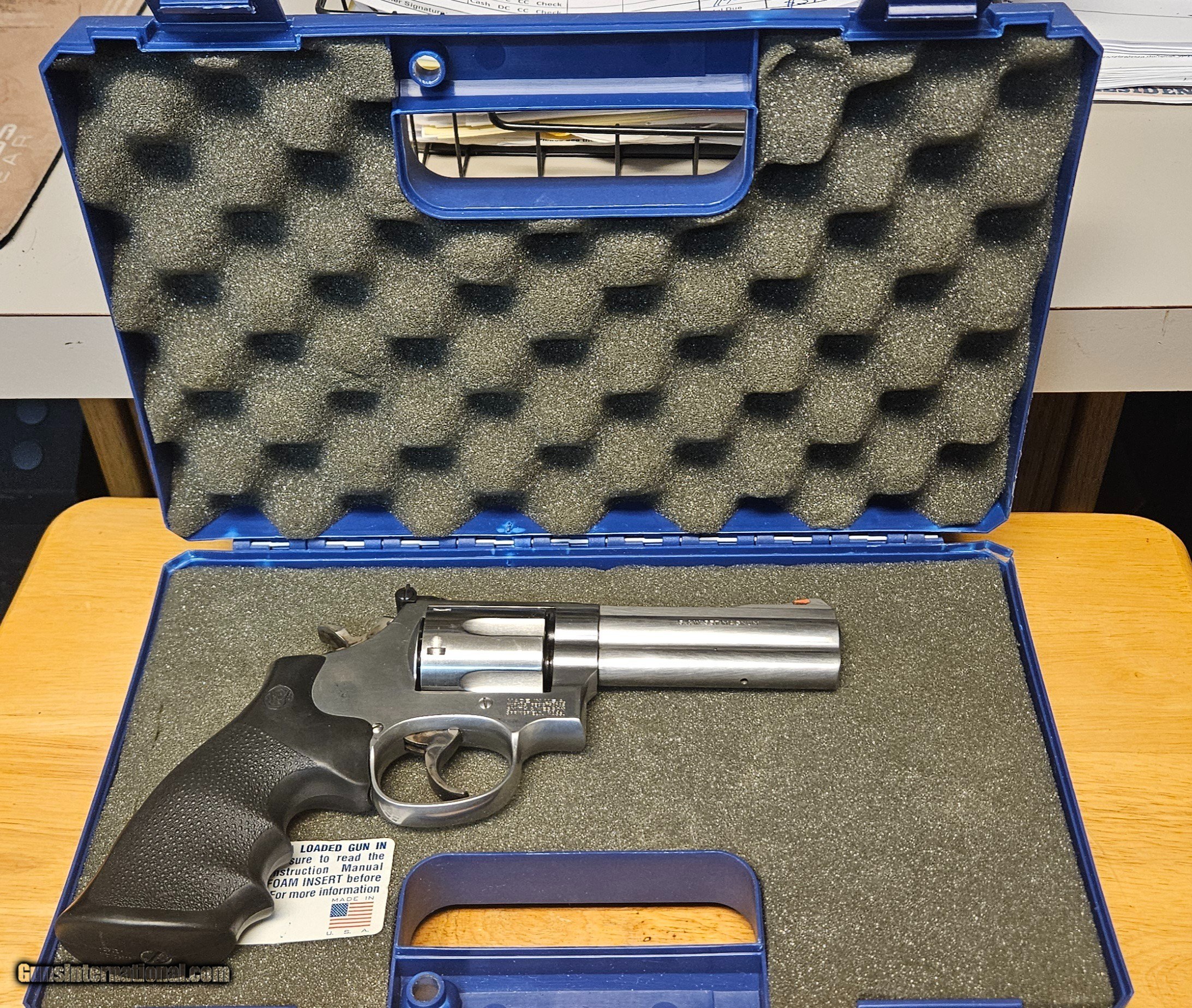 Description: Smith & Wesson, Model: 686-4, Cal: 357, Action: Rev, BBL: 4" * comes with case* SOLD Handgun Caliber: .357 Magnum Manufacturer: Smith & Wesson Model: 686-4 Serial Number: CBT0624 Barrel Length: 4 Condition: Excellent Metal Condition: Excellent |