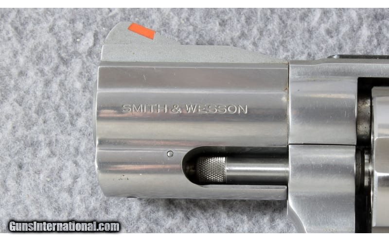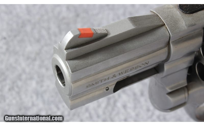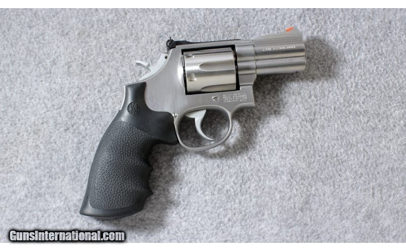 Description: The Smith & Wesson Model 686-4 .357 Stainless Distinguished Combat Magnum is built on the S&W L target frame. The 686 provides the strength of a stainless steel frame and cylinder in an intermediate sized and weighted revolver that fires both .357 Mag and .38 S&W Special +P cartridges. It the stainless version of the blued Model 586. This revolver features a 2.5" barrel and Hogue rubber round butt grips. Manufactured 1994. .357 Magnum SOLD Metal Condition: Very good with fine scratches and a turn line on the cylinder sharp edges Bore Condition: Excellent with signs of use Barrels: 2 1/2 inch full lug barrel Triggers: Smooth combat trigger Weight: 36 oz. Item Location: Lehi, UT |