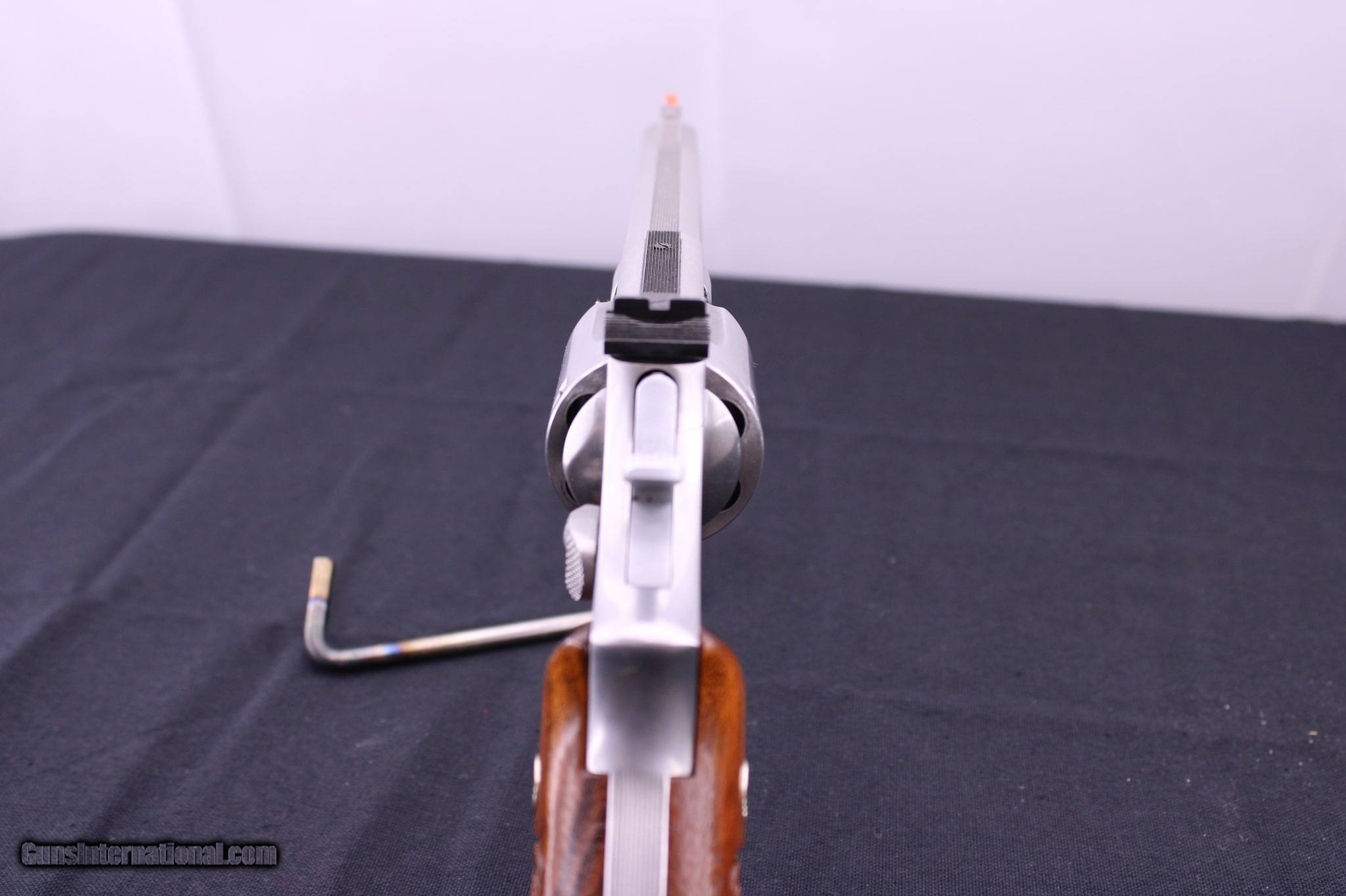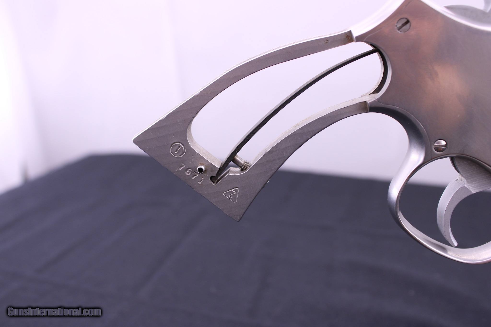 Description: Guns Listing ID: 891256 Introducing the Smith & Wesson Model 686 (M) Distinguished Combat Magnum Stainless Revolver! Are you ready to experience the thrill of a .357 Magnum/.38 Special revolver like no other? Look no further, because this remarkable piece is here to blow your mind! This stainless steel beauty is the epitome of excellence. With its 6-inch barrel length and full under lug barrel weight, you‚‚ll feel the perfect balance and stability in your hands. The sleek stainless steel finish not only adds a touch of sophistication but also ensures the durability you need for long-lasting performance. Step into a world of extraordinary shooting with the Smith & Wesson Model 686 (M). Its L-frame square butt design provides a comfortable grip, allowing you to maintain control and accuracy even during intense combat situations. The adjustable rear sight enables precise targeting, while the smooth-faced trigger guarantees a seamless shooting experience. But that‚‚s not all! This exceptional revolver features a checkered hammer spur for enhanced grip, and it proudly showcases the pre-Hilary hole, symbolizing its vintage authenticity. What sets it apart from the rest? Factory upgrades indicated by the (M) prefix, ensuring you have the latest advancements for an unparalleled shooting experience. In excellent condition, this Smith & Wesson Model 686 (M) Distinguished Combat Magnum Stainless Revolver is a true gem waiting to be yours. Whether you‚‚re a seasoned revolver enthusiast or a novice looking to embark on an exciting shooting journey, this revolver will exceed your expectations. Don‚‚t miss out on this incredible opportunity to own a legendary piece of firearms history. Serial number AJF2549 can be yours! So, what are you waiting for? Embrace the power, precision, and prestige of the Smith & Wesson Model 686 (M) to SOLD Manufacturer: SMITH & WESSON Model: 1941 686 (M) DISTINGUISHED COMBAT MAGNUM Caliber Info: .357 MAG Condition: Used - Non-Certified Barrels: 6 BARREL Finish: WOOD AND STAINLESS |