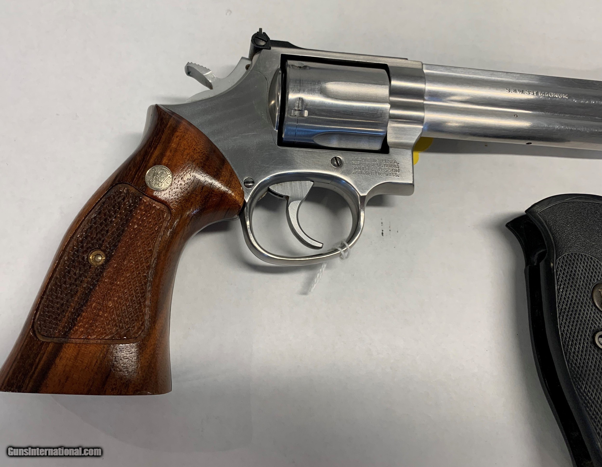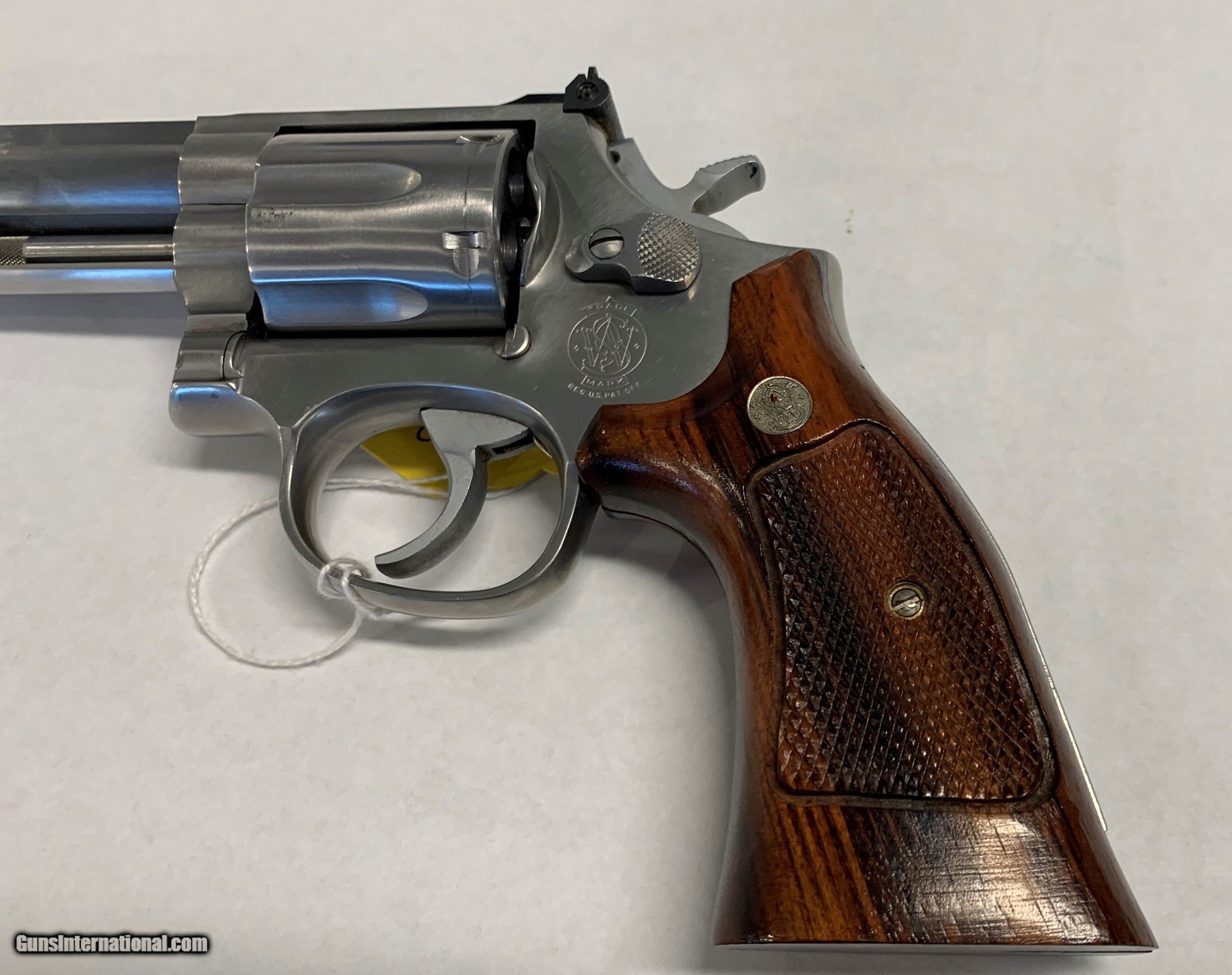 Description: Smith and Wesson model 686-1 .357 revolver with six inch barrel. Has original wood grips and comes with extra set of Pachmayr grips. $829.00 plus shipping. No CA sales. SOLD |