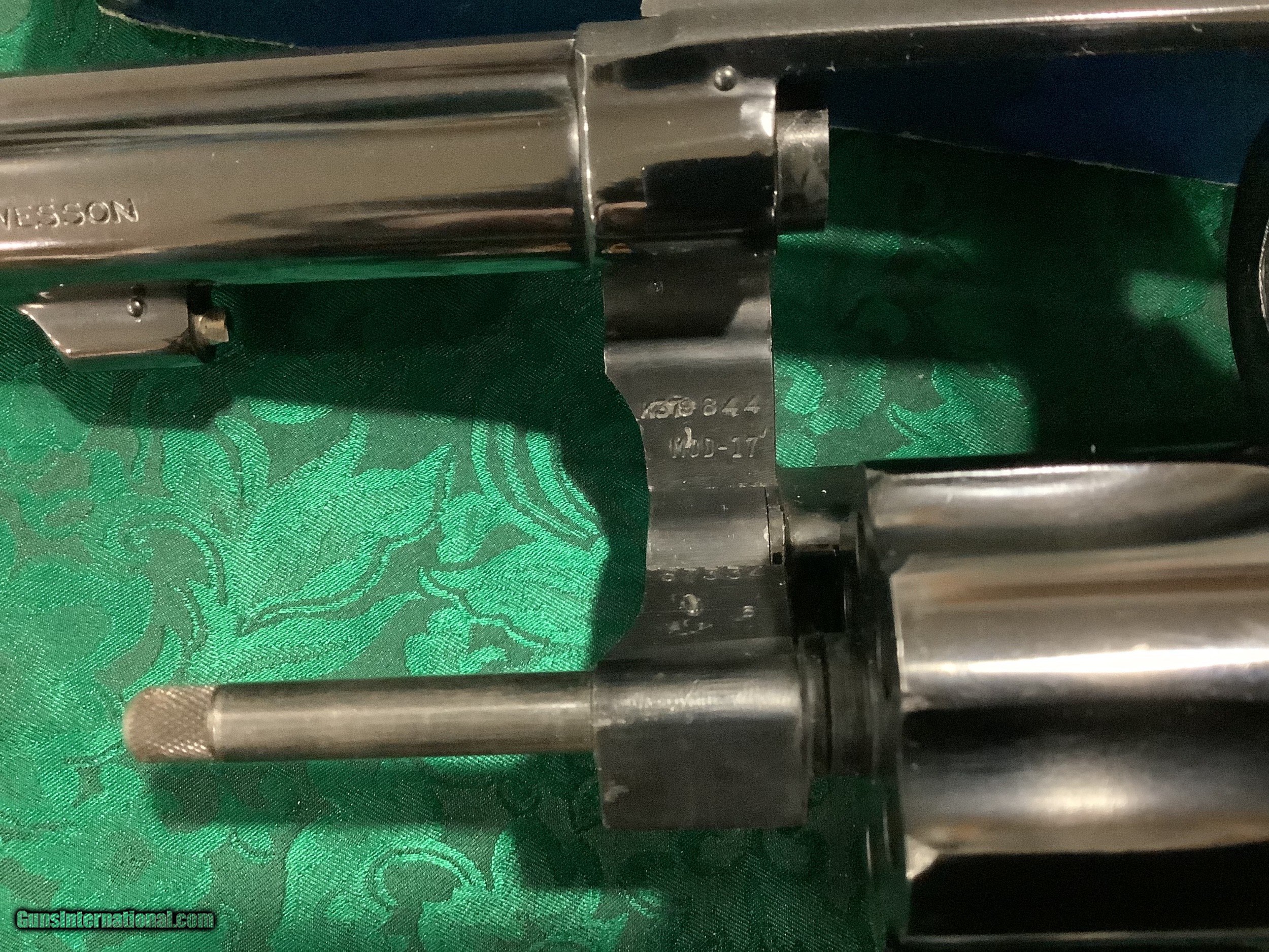 Description: SALE PENDING Smith & Wesson Model 17 K-22, .22 LR, 4 screw model, made between 1957 and 1961, 6" barrel, Diamond Walnut grips numbered to the gun. Small amount of holster wear on muzzle, case colored hammer and trigger. Comes with original box and some paperwork and a layaway receipt showing the gun was sold in 1960. Shipping will be $35.00, which includes insurance, from our FFL to your FFL dealer. SOLD Manufacturer: Smith & Wesson Model: 17 Serial Number: K379844 Barrel Length: 6” Condition: Very good+ Action: Double Finish: Bright Blue Sights: Adjustable rear Manufacture Date: 1957 to 1961 Extras: Box and some paperwork |