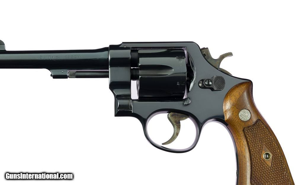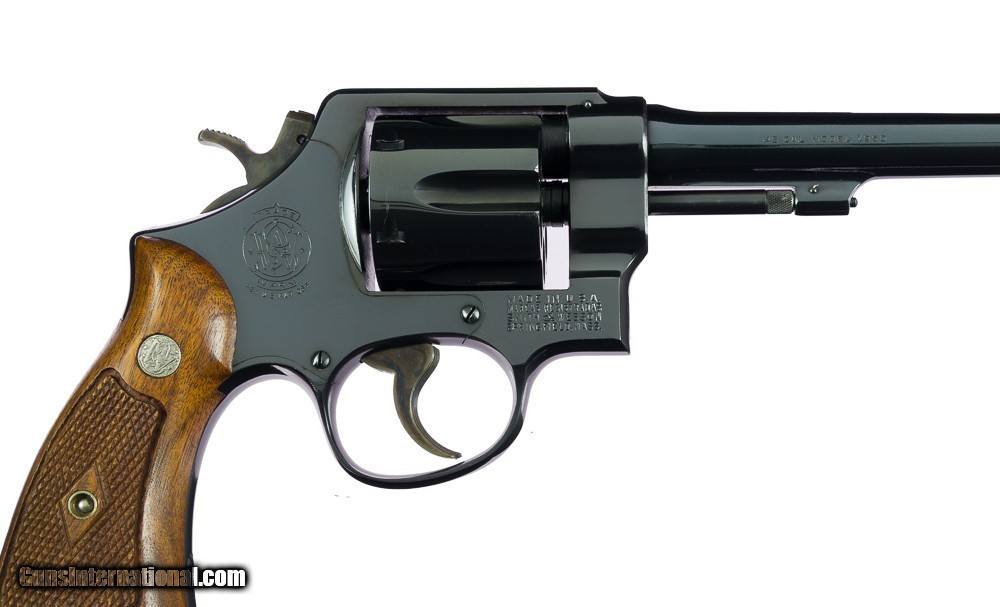 Description: This ultra rare model-marked Smith & Wesson Model 22 is one of less than two hundred examples built, with far fewer having ever surfaced. The gun is complete in the original numbers matching box and is virtually AS-NEW! The original bright blue finish rates 99%+ on any scale and the gun does not appear to have been fired outside of the factory. An extremely rare N-frame that will fill a hole in virtually any serious collection. A must own! Be sure to check out our other listings as we are in the process of selling a large, extensive and high-grade collection. Many more items are to be listed in the next few weeks so keep a close eye out! We take great pride in our packing and shipping! Postage and insurance is $40. SOLD Curio/Relic: Yes |