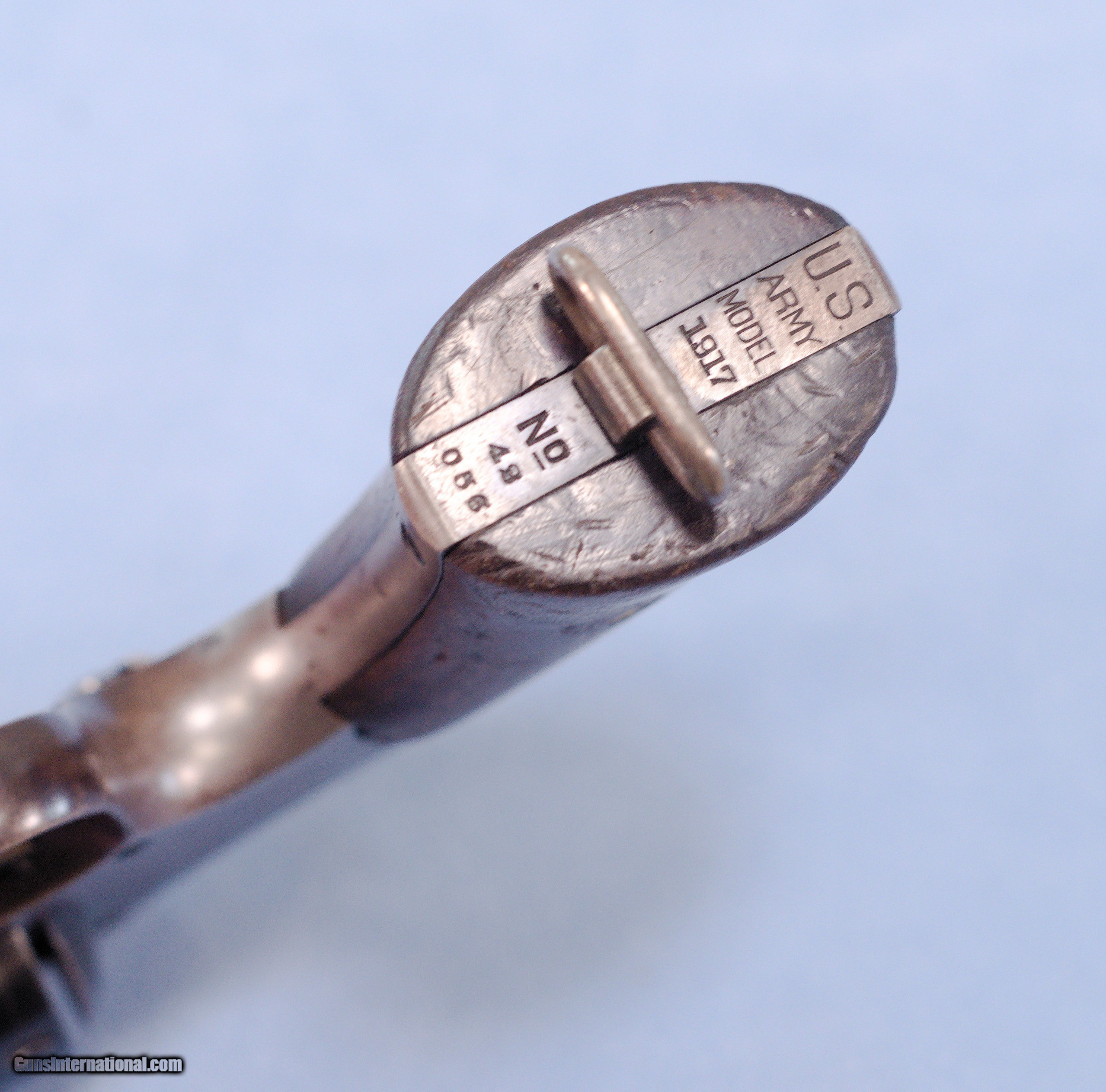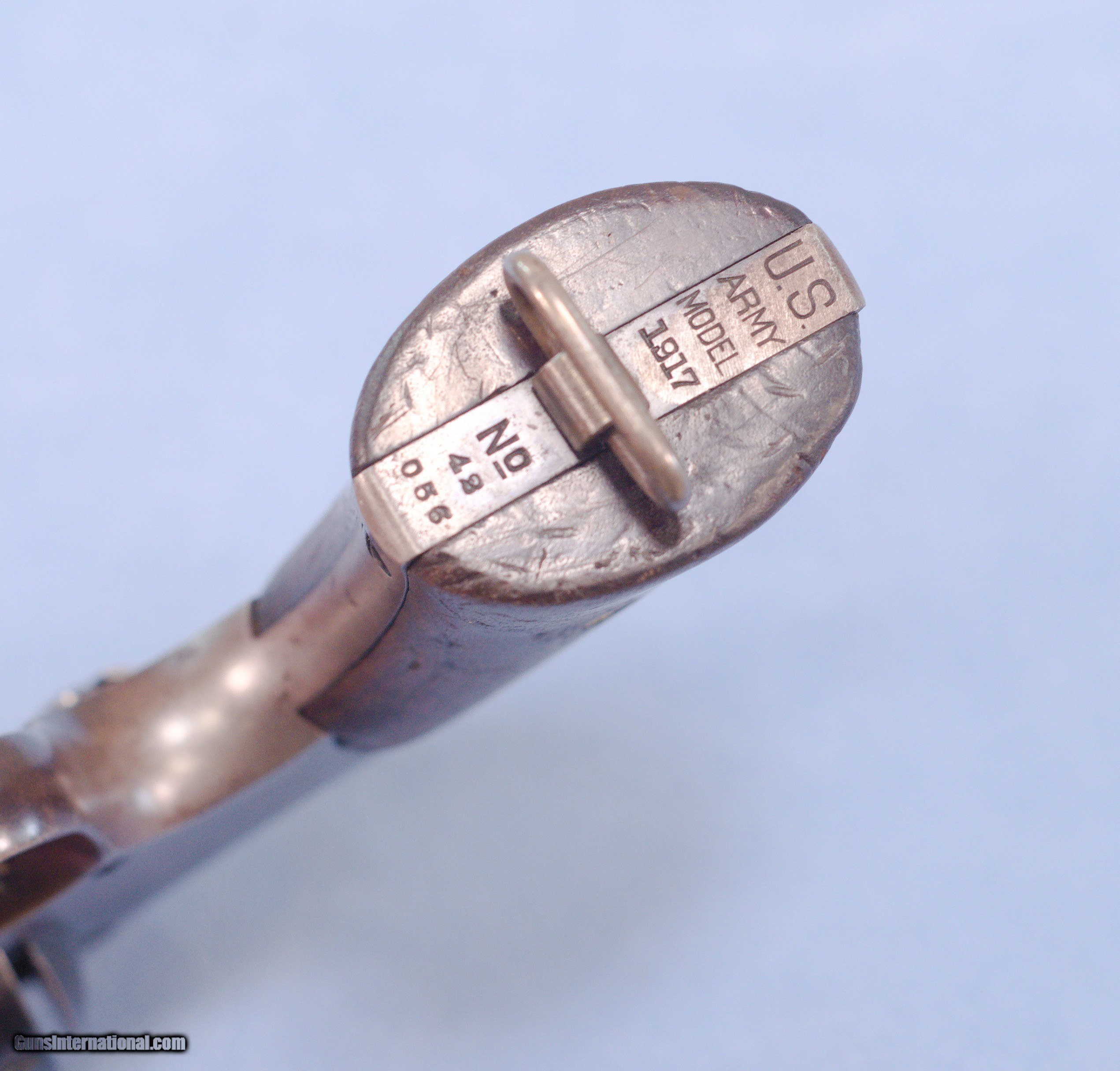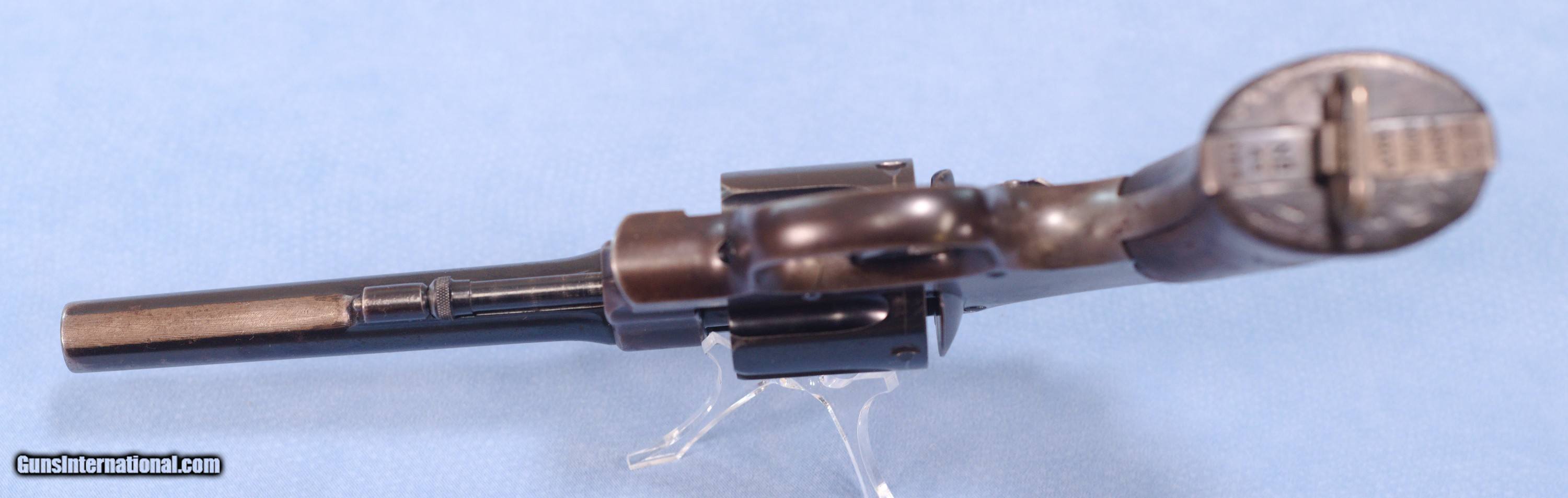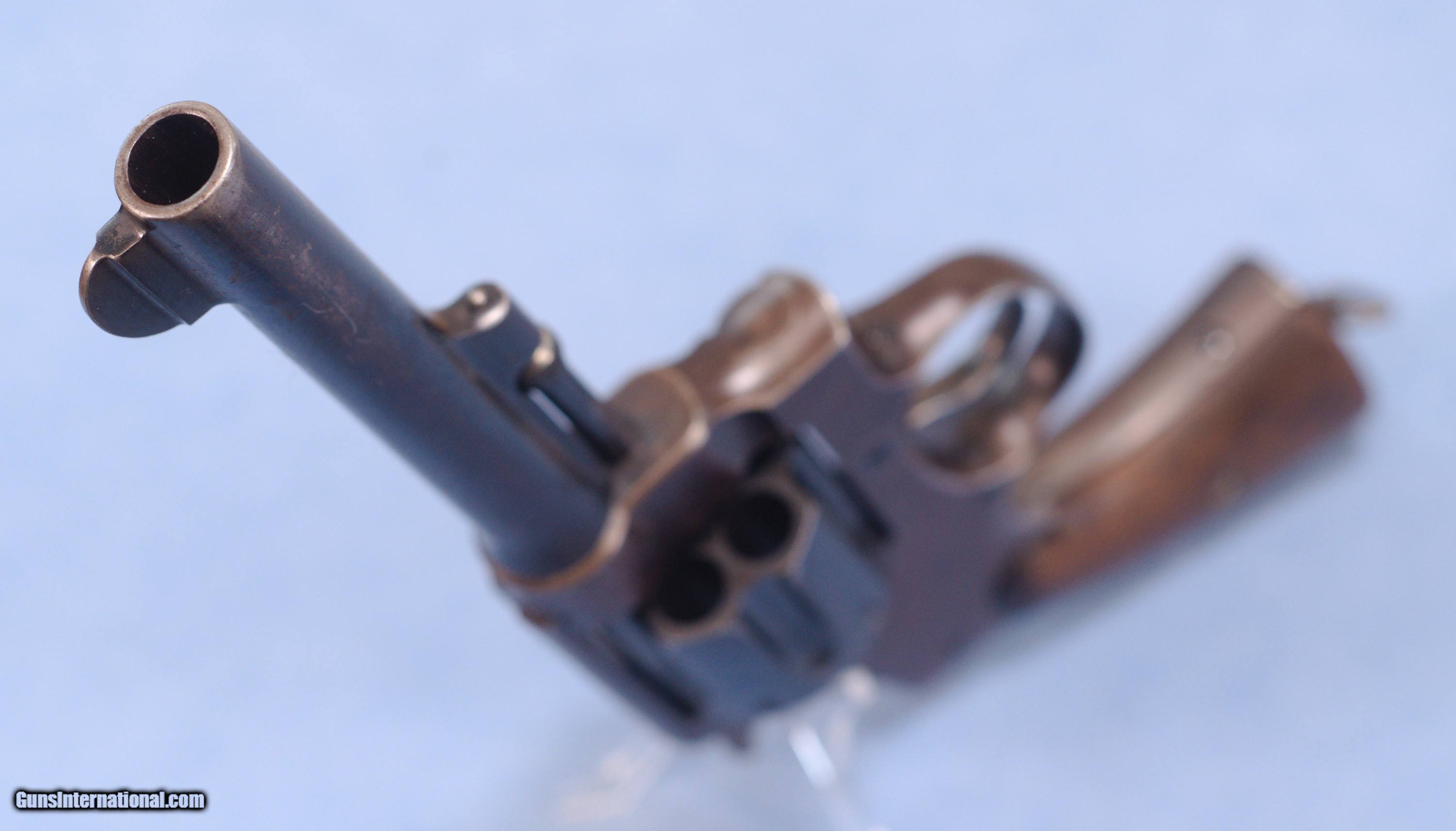 Description: This is a WW1 production Smith & Wesson U.S. Model 1917 revolver in .45ACP. The Model 1917 revolver was put into production during WW1 in 1917 as a supplement to the U.S. Military's standard issue Model 1911 .45 ACP automatic pistol. There simply were not enough 1911's in inventory or in production to arm the rapidly expanding A.E.F. forces. The Model 1917 revolver was manufactured by both Smith and Wesson and the Colt firm during WW1. This 1917 is in very good overall condition with about 60% of the original bluing remaining, the balance being an even patina. The U.S. Property marking on the bottom of the barrel has been removed which is common on on U.S. sidearms that made their way into the civilian world. The action is still tight on this gun and in perfect time, and the barrel has a nice bore with only very light frosting in the grooves. The smooth walnut grips show wear typical of a service revolver of this era. This is a cool shooter grade 1917 revolver that likely saw combat in WW1, and possibly World War 2 as well. PRICE: $750.00 We are Antique & Modern Firearms in Lexington, KY, a dealer of fine firearms since 1974. PH. 859-276-1419 We Buy, Sell, and Trade Firearms & Knives. Have an Individual Firearm, Firearms Collection, or Firearms Estate to sell, let us know, and we can buy or consignment sell it for you. NOTE: No additional fee for a Credit Card payment. SOLD Curio/Relic: Yes Handgun Caliber: .45 ACP (.45 Auto) Manufacturer: Smith & Wesson Model: 1917 Serial Number: 42056 Barrel Length: 5.5 Condition: Good Metal Condition: Good Wood Condition: Good Bore Condition: Very Good strong rifling Action: Double Action |