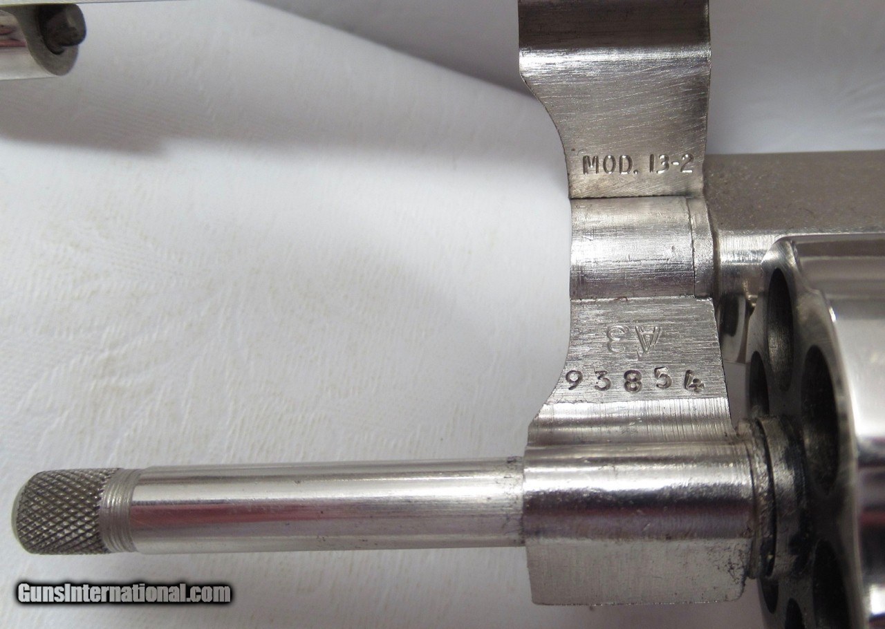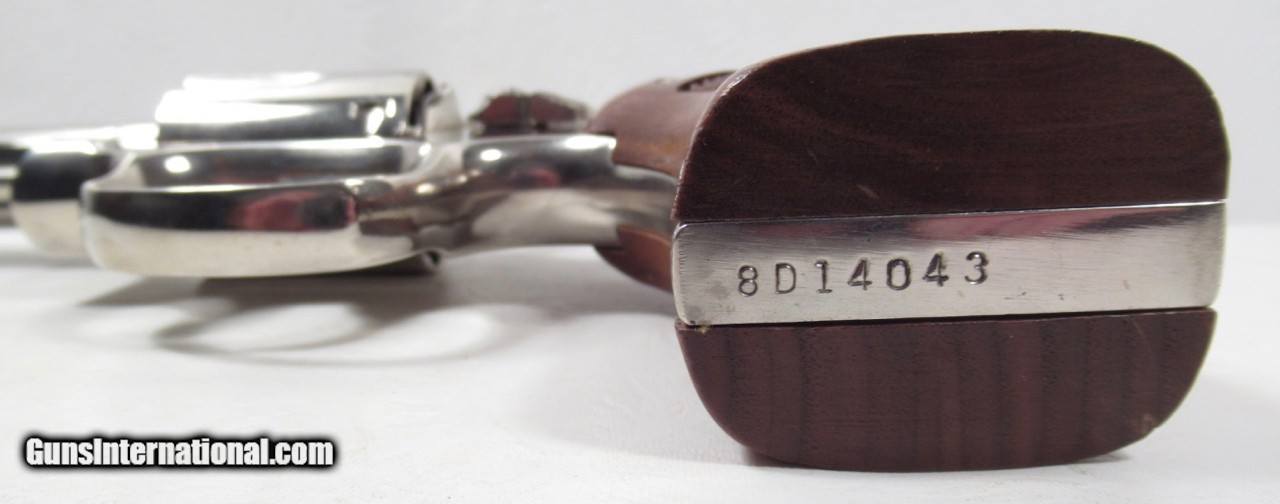 Description: Sale pending PERSONAL COLLECTION; Smith & Wesson Model 13-2 AKA FBI Model; Serial No. 8D14043; 4” Barrel; 357 Mag; Pinned Barrel & Recessed Cylinder; Made about 1981; Scarce Factory Nickel Finish; Revolver has been fired but has All Original Nickel Finish; Perfect Action & Bore; Price: $1,300 Shipped; Price includes insured shipping; return policy: three days inspection from the date the items received; full refund of shipping both ways ONLY IF THE ITEM IS MISREPRESENTED. SOLD Manufacturer: Smith & Wesson Model: 13-2 Serial Number: 8D14043 |