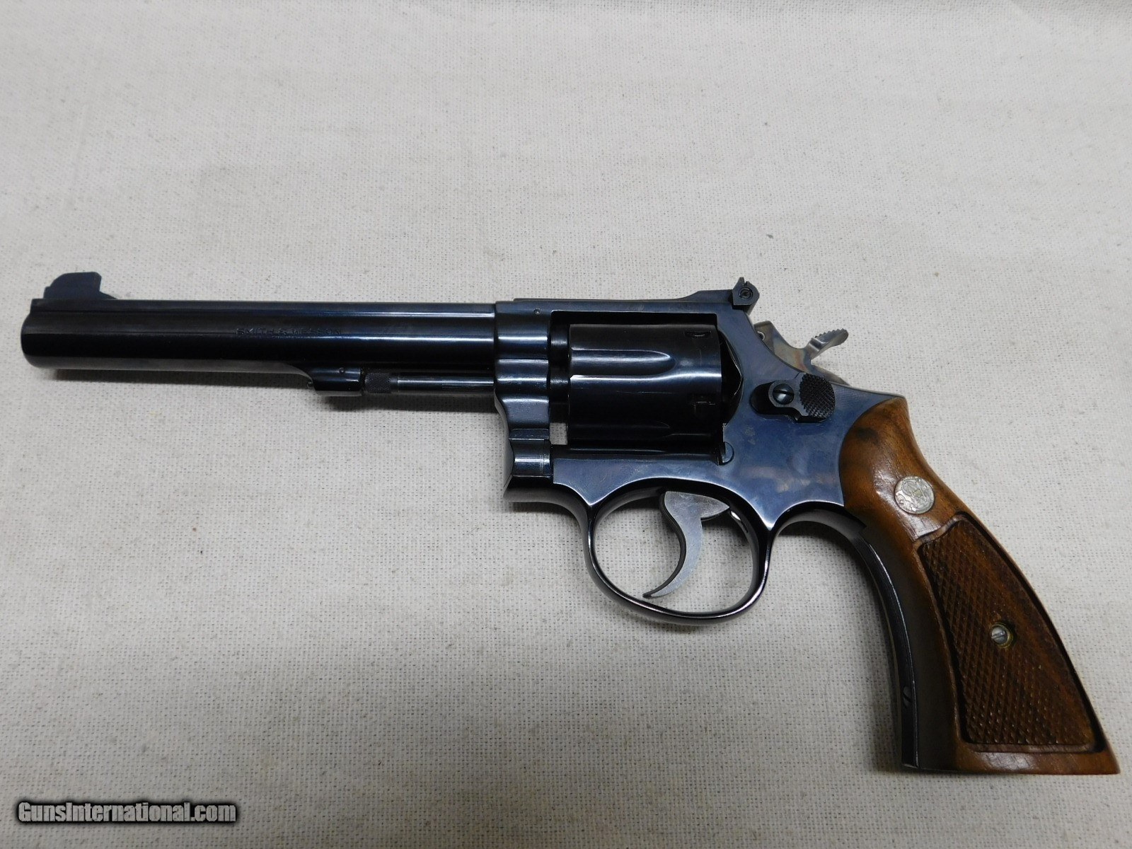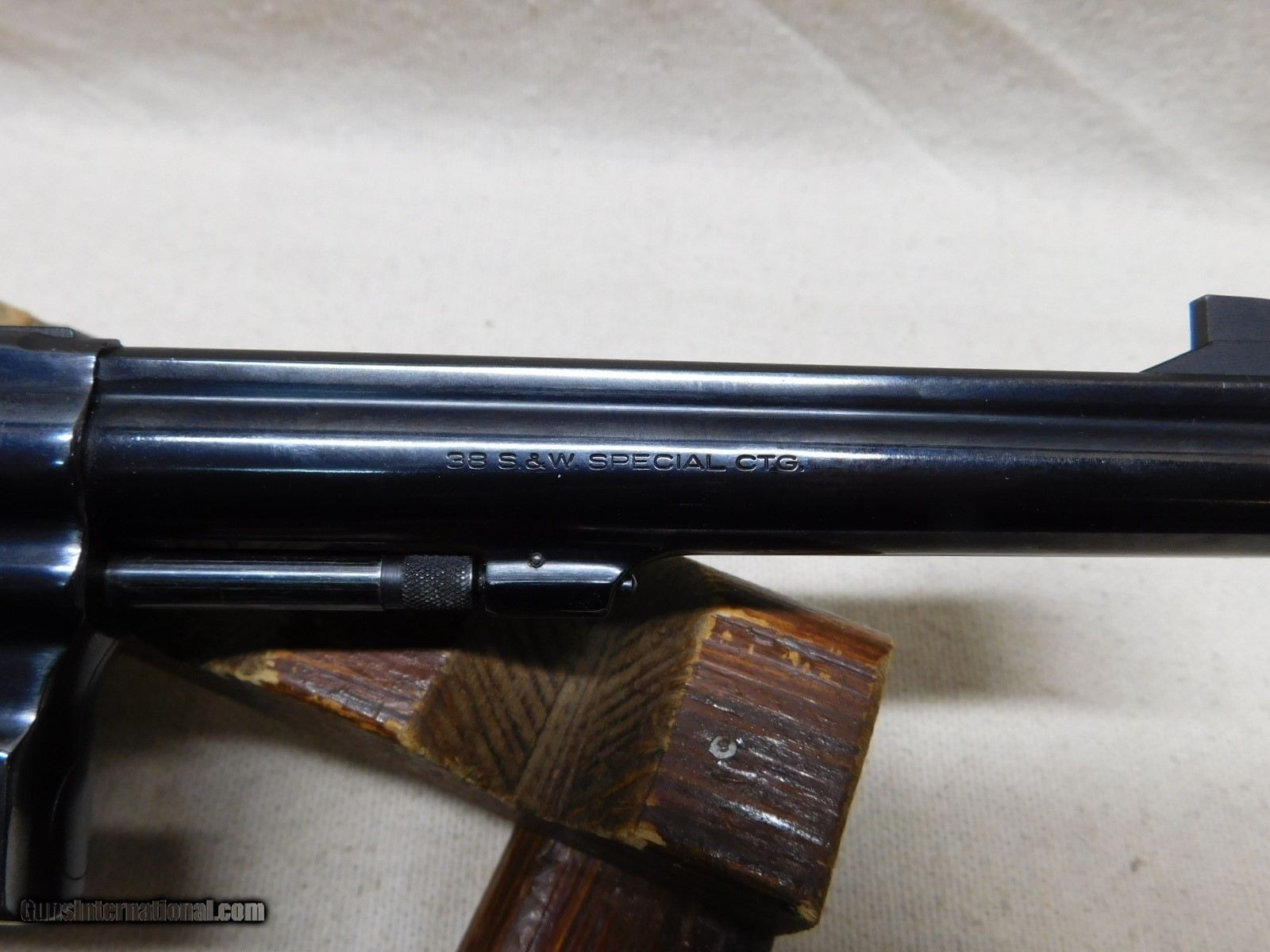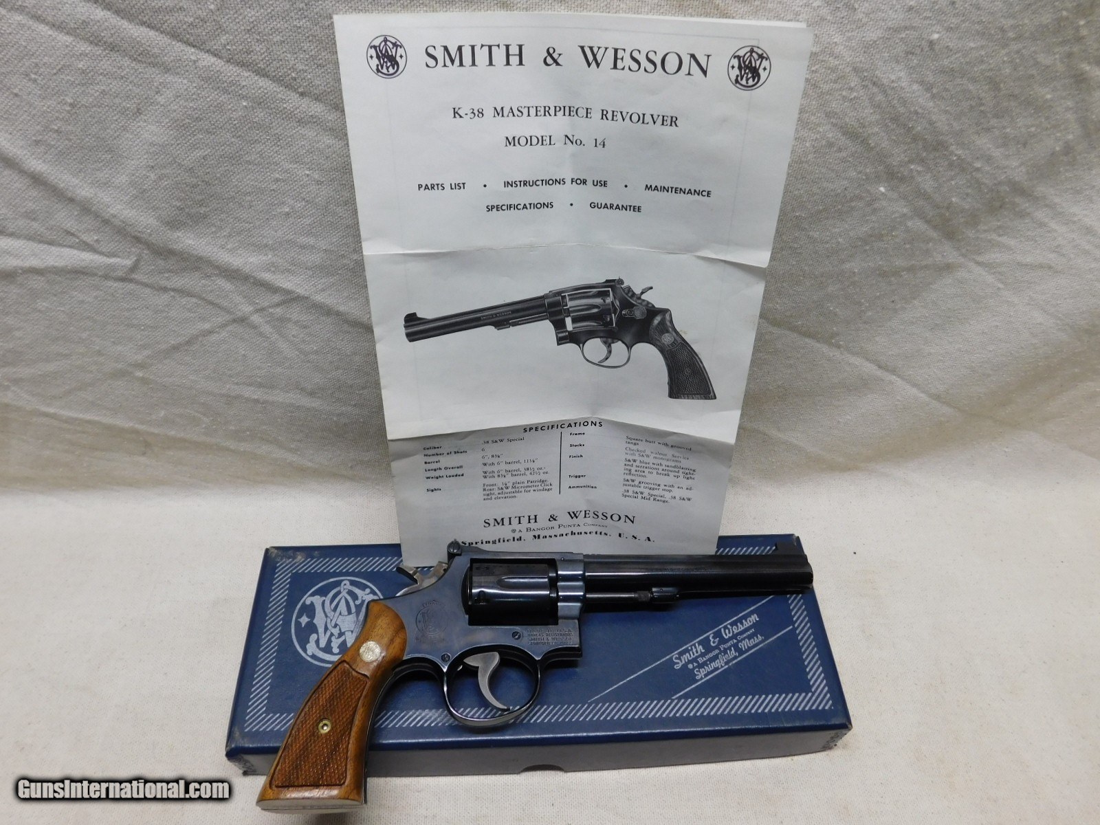 Description: Smith & Wesson Model 14-3, 38 Special,6" Barrel,Pinned Barrel,Near Mint,98% Condition, Excellent Grips,Tight Action, Proper Timing, Unturned Screws,Correct Box and Papers,No Tools!! Store hours Thurs-Fri-10AM-8PM Sat-9AM-12PM All Other times please leave a message,Thank You! No California Sales Lower 48 State Sales only Pa. Residents 6% Sales Tax applicable Shipping $ 35.00 SOLD Manufacturer: Smith & Wesson Model: 14-3 Serial Number: 8K8983 Barrel Length: 6 Caliber Info: 38 Special |
