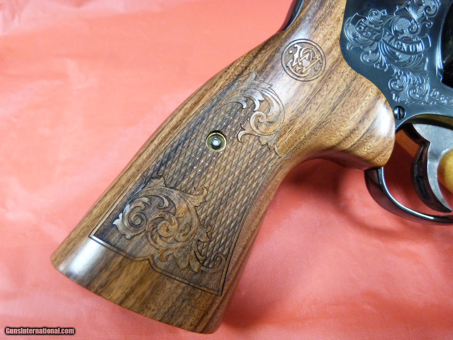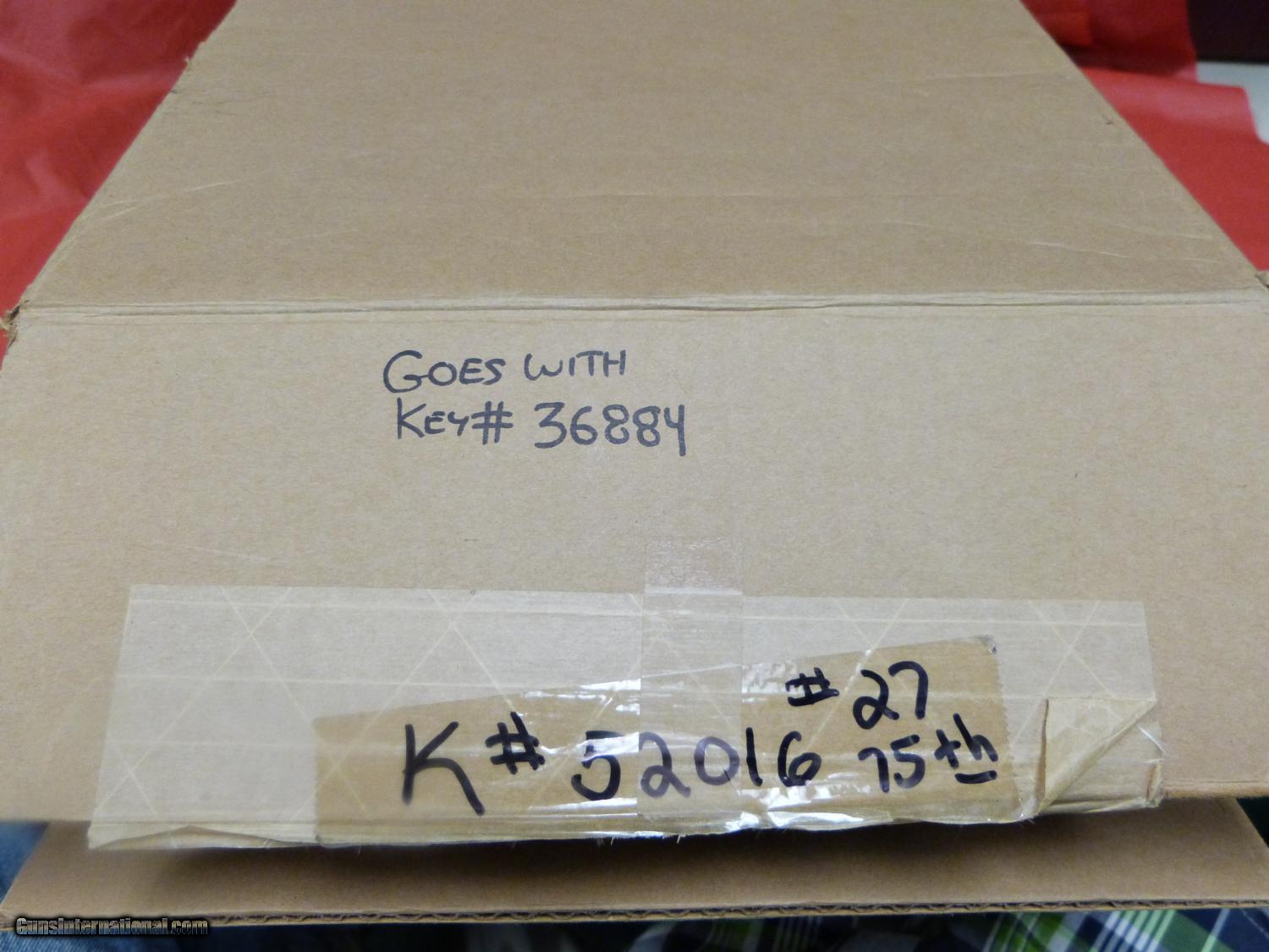 Description: S&W M-27 commemorating the 75th Anniversary of the .357. Blue finish, 6 1/2" Bbl.,The gun is heavily engraved and comes complete with the Original Blue box, a Glass and Wood Display Case and the original card board box for the display case. New! Only 500 ever made! $1099.00 (CC+3%) shipping $30.00 SOLD |