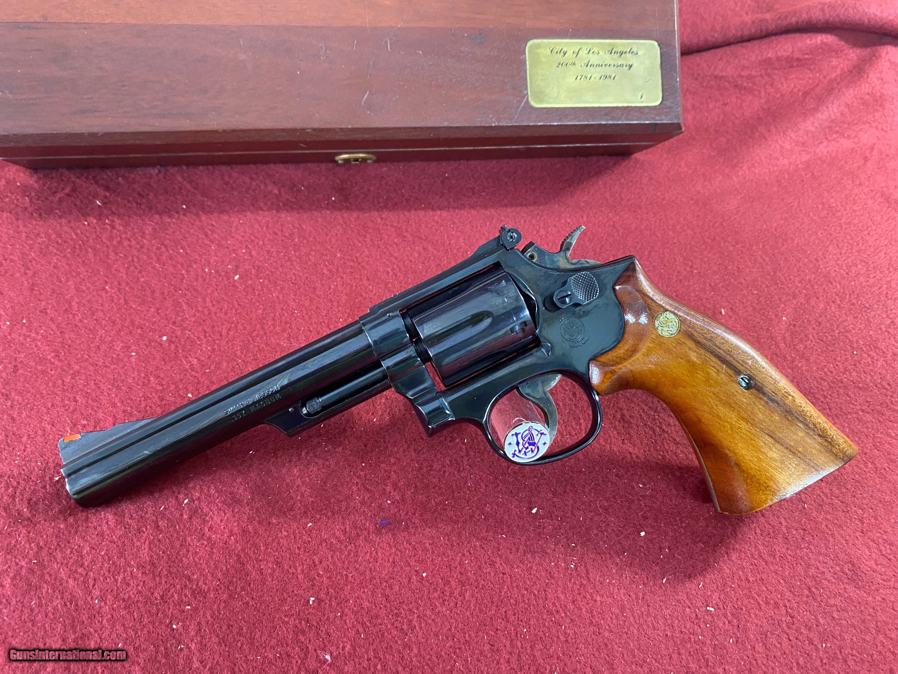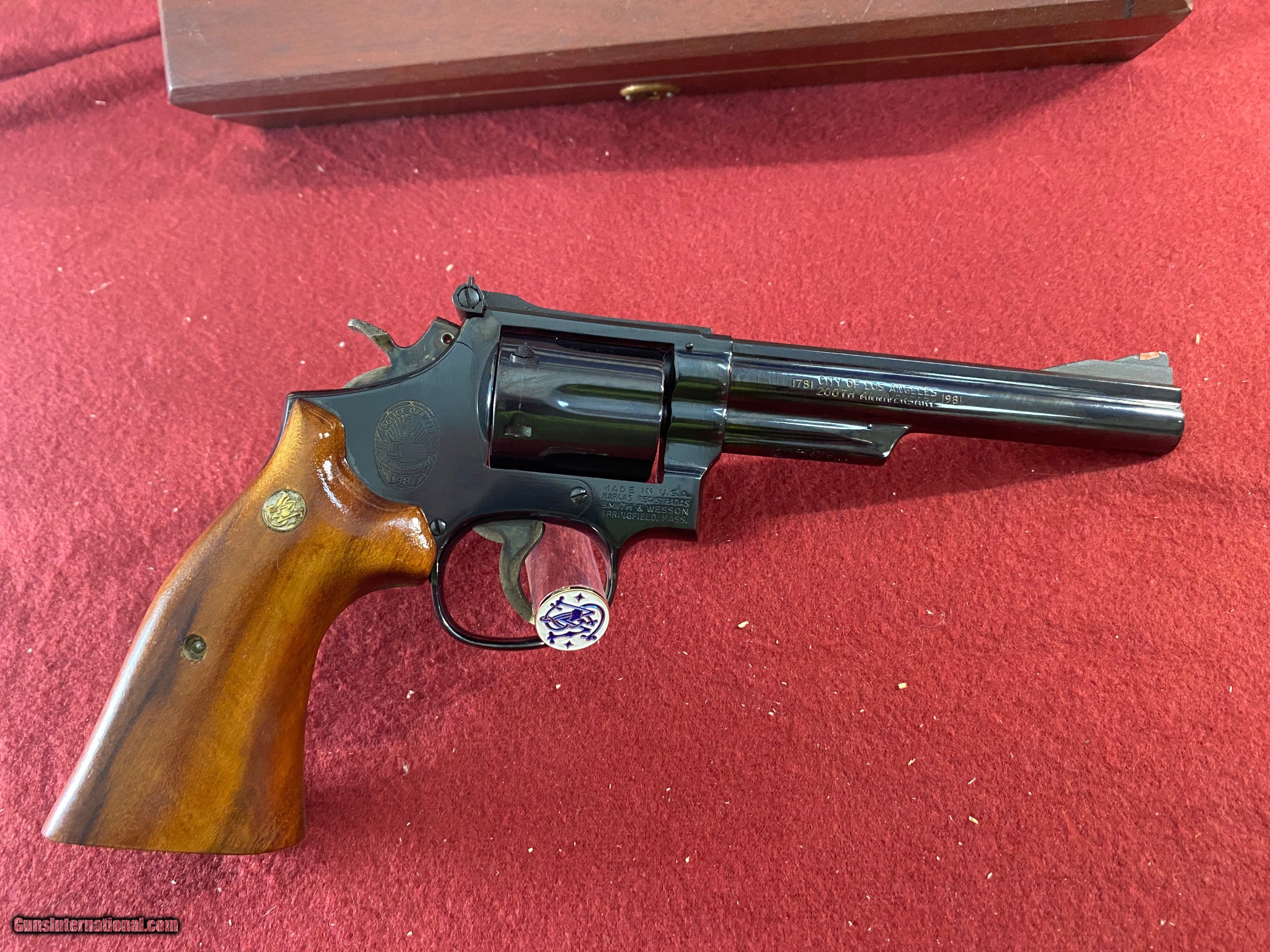 Description: Up for your viewing Smith & Wesson model 19–4 pinned barrel 6 inch all original 200 year anniversary Los Angeles Police Department great condition comes with the 200th year coin key And presentation box in great condition buyer pays shipping Any questions please don't hesitate to give me a call or email me if I do not answer. We'll get back to you as soon as possible. SOLD Handgun Caliber: .357 Magnum Manufacturer: Smith & Wesson Model: 19-4 Barrel Length: 6” Chambers: 6 Condition: Great Metal Condition: Great Wood Condition: Great Bore Condition: Shiny |