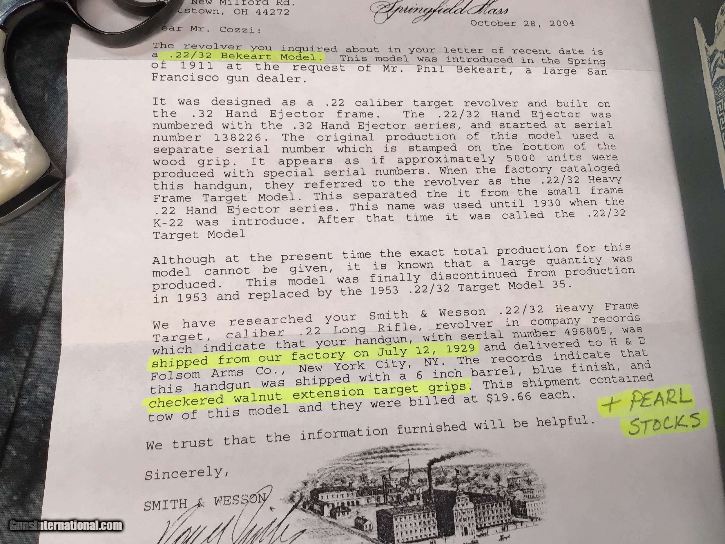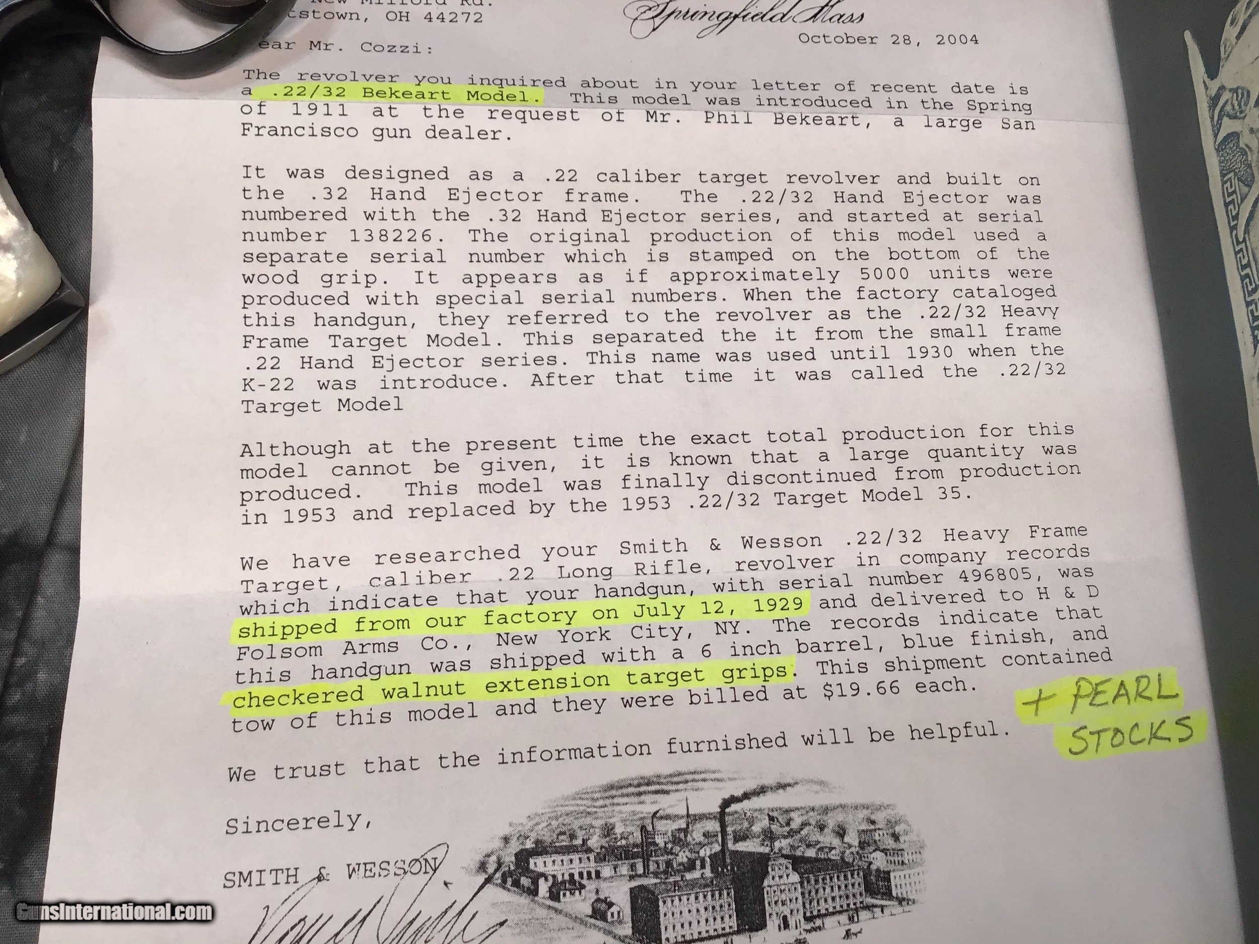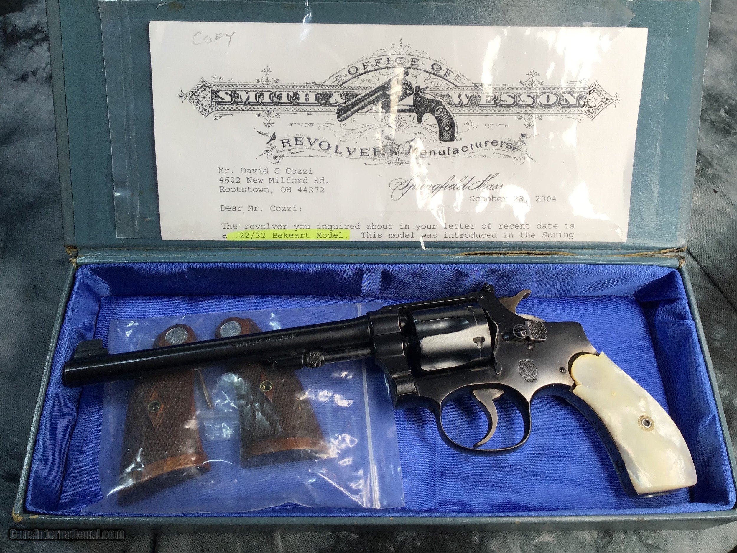 1929 Mfg. Smith & Wesson .22/32 Bekeart Target Model, .22 LR, S&W Jinks Letter, MOP & Factory Grips, Cased