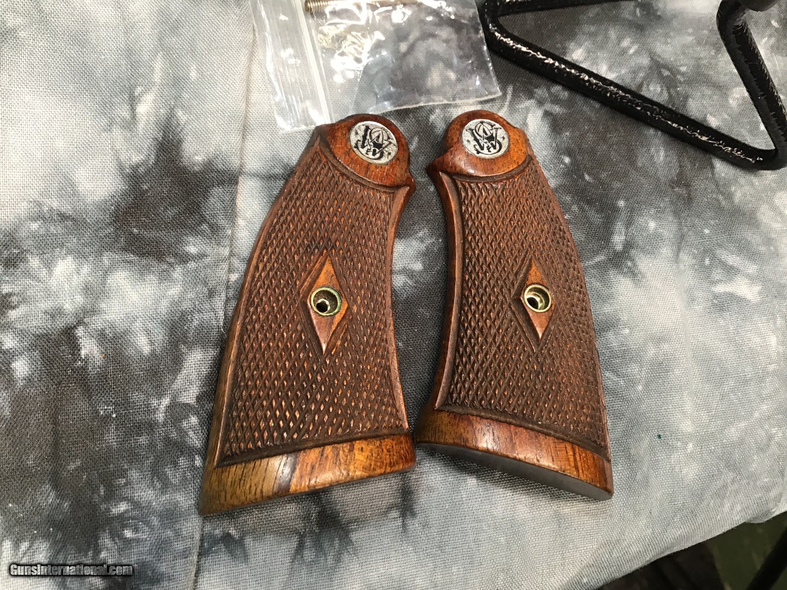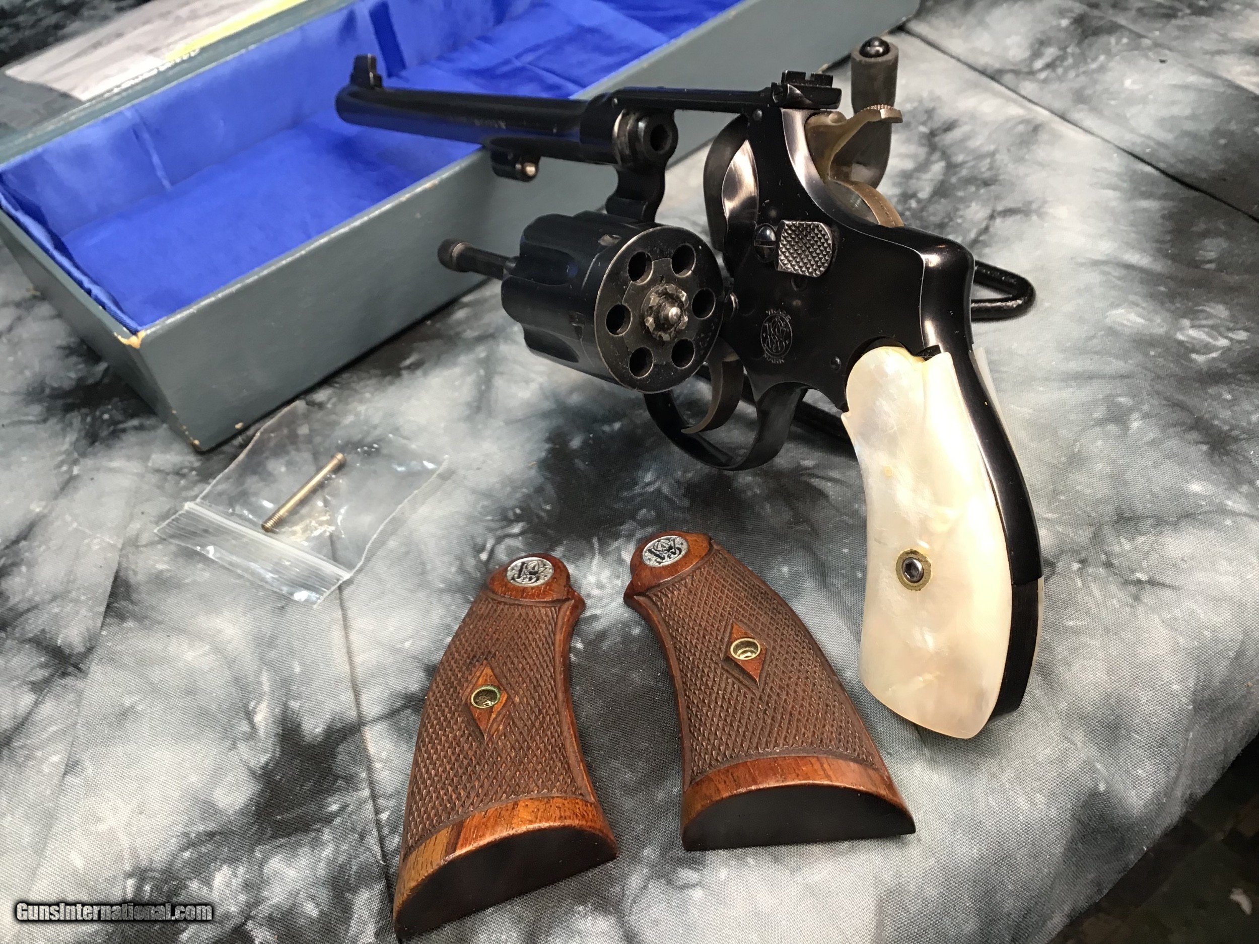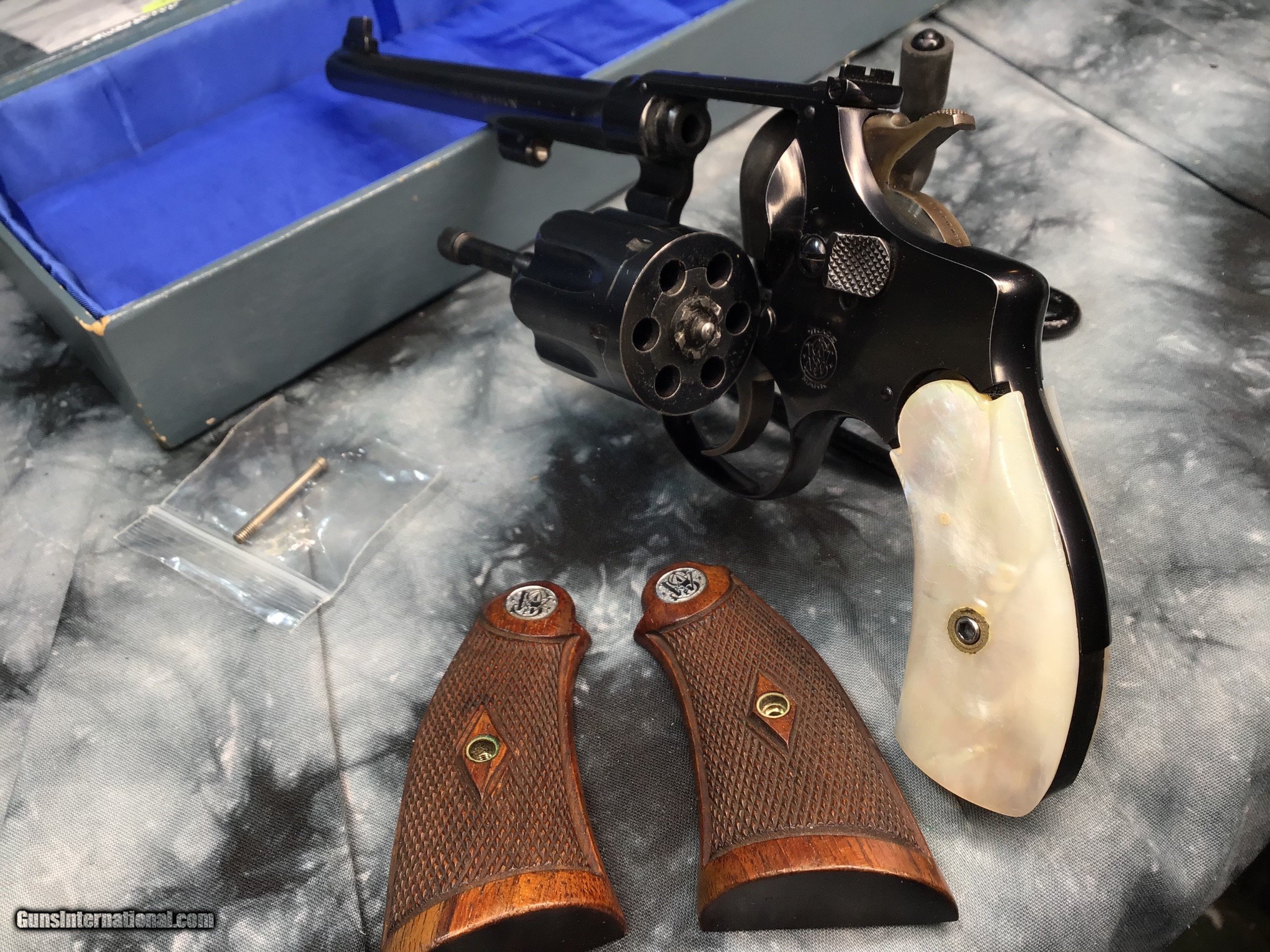 Description: 1929 Mfg. Smith & Wesson .22/.32 Bekeart Target Model .22 LR. Wearing a six inch Blued barrel w/front elevation adjustable Patridge sight and rear drift adjustable sight with tools. Mother of Pearl grips with pristine condition Optional Special Order Diamond Target grips. The Smith & Wesson Roy Jinks letter well describes this model and it's features as shown in photos. Rare model that most gun folks have never heard of from S&W. Excellent overall condition in case with sight adjustment tool and Letter from S&W. Add 3% if paying with credit card. Free shipping for all US Veterans. God Bless America from a proud American, and a Viet Nam Vet , thankful for our freedoms.. paid for by the Blood ,Sweat and Tears of our brave men and women in uniform. Ten Below Firearms is a Veteran owned and operated business. We specialize in out of production models of high quality firearms. We love to ship! We ship to all states where legal, just give us a call! Handguns normally ship for $35 and Long guns for $50 and up for extra length long guns. That's 2-3 day USPS Priority shipping, Delivery conformation and with tracking number. Optional Postal insurance is additional $1.75 per $100 and highly recommended. We are OPEN BY APPOINTMENT ONLY FOR IN PERSON VISITS, We trade, sometimes. Layaway:If needed we offer a 60 day layaway program. Terms, 1/3 of purchase price down, 1/3 due in 30 days, and the final third to include card fees and shipping due at 60 days. Funds are non transferable and non refundable .Layaway is not available on negotiated prices. SOLD Curio/Relic: Yes Handgun Caliber: .22 Long Rifle Manufacturer: Smith & Wesson Model: .22/.32 Bekeart Target Model Serial Number: 496805 Barrel Length: 6 inch Chambers: 6 Condition: Excellent Metal Condition: Excellent Wood Condition: Excellent Bore Condition: Excellent Barrel Type: Round Action: DA/SA Triggers: Target Finish: Blued Sights: Target adjustable Manufacture Date: 1929 Extras: Tools & Roy Jinks letter Case: Yes Item Location: Mn |